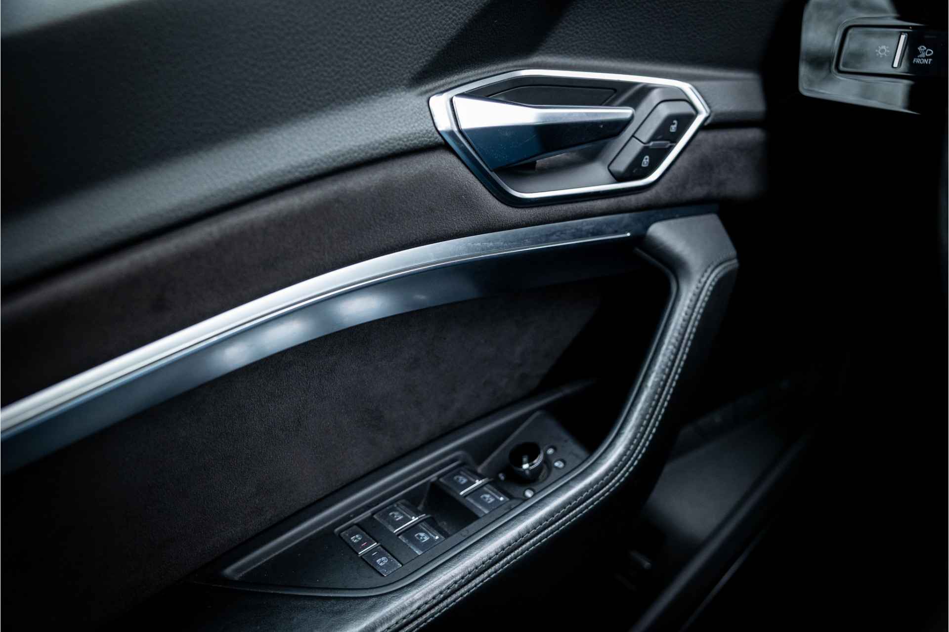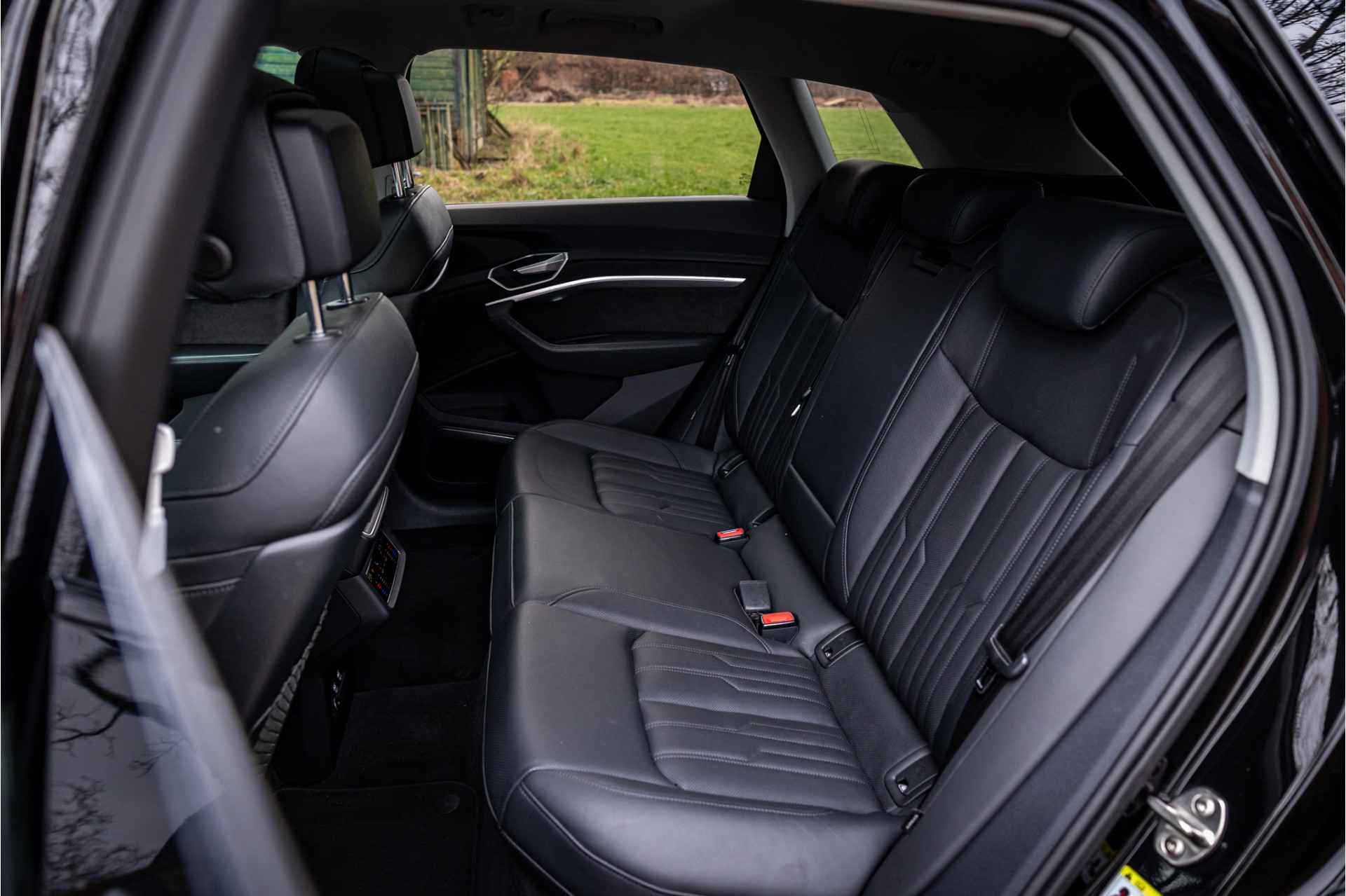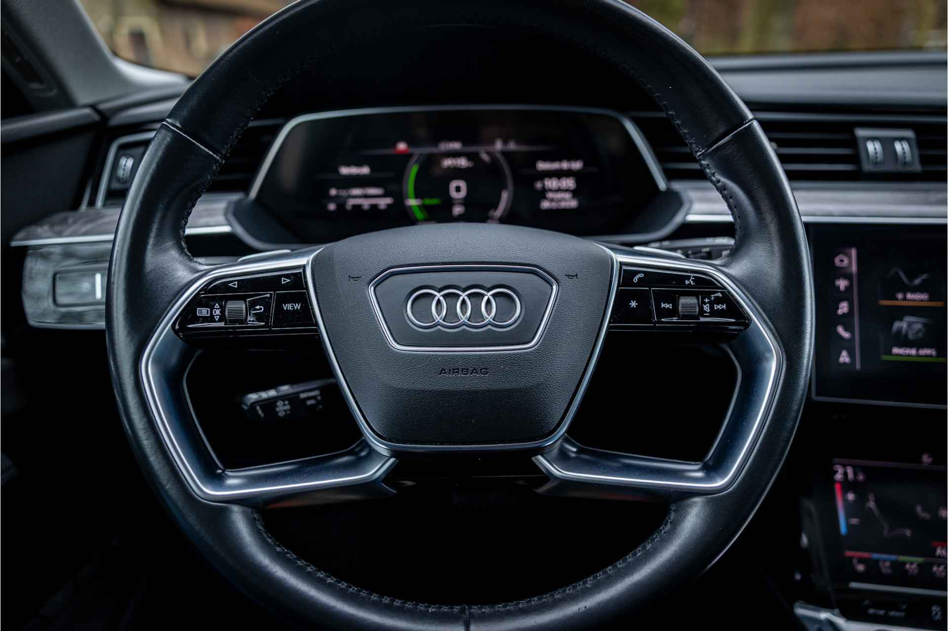 Fraaie en compleet uitgevoerde Audi E-Tron 55 Quattro S Pro Line Plus. Deze auto is in keurige staat en ruim voorzien van opties. Lakkleur is Mythosschwarz Metallic en het interieur is voorzien van individuele contourstoelen bekleed met zwart Valcona leder. De hemelbekleding is uitgevoerd in donker antraciet. Het dashboard en de middenconsole zijn voorzien van een lederovertrek.
