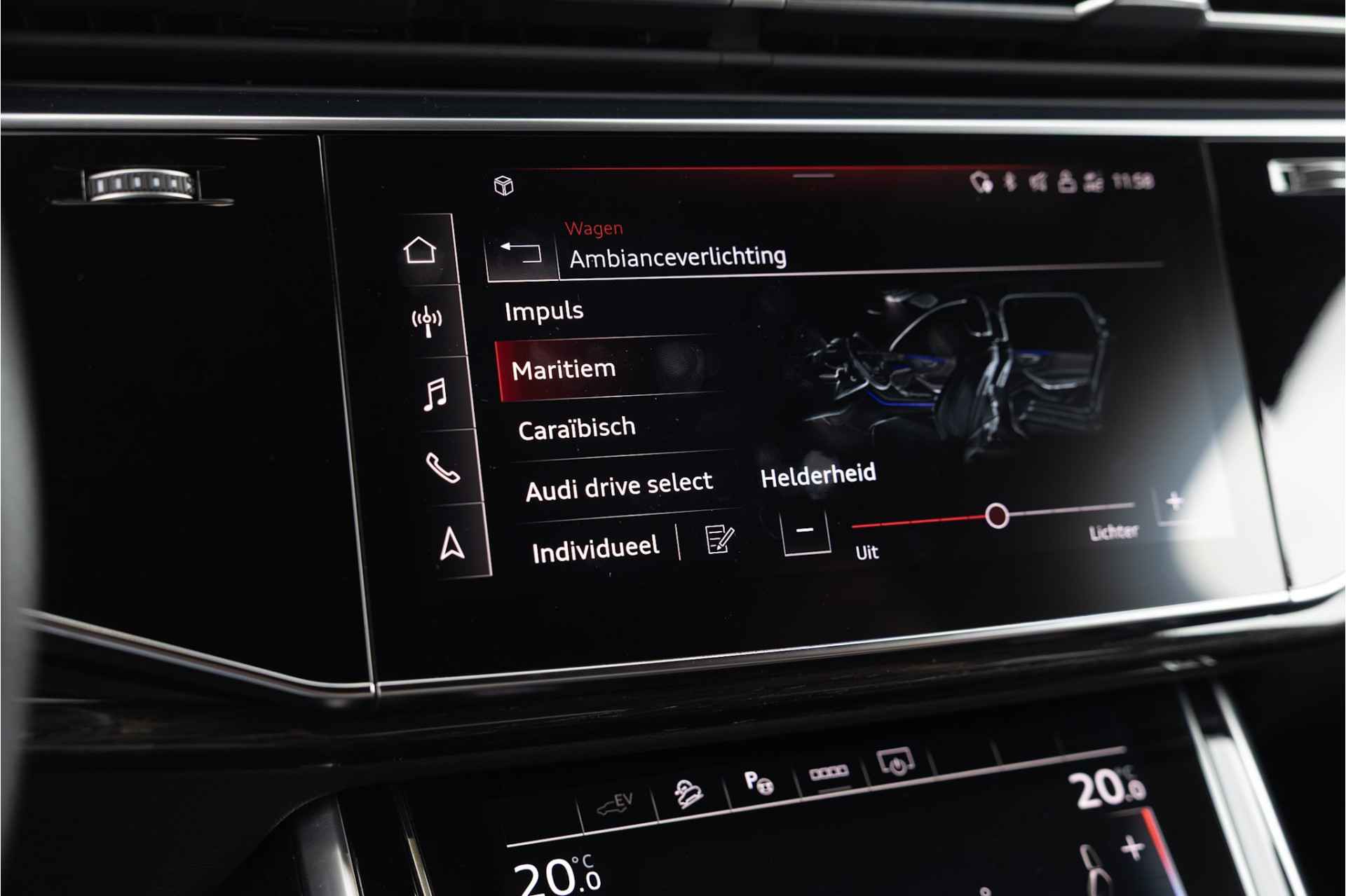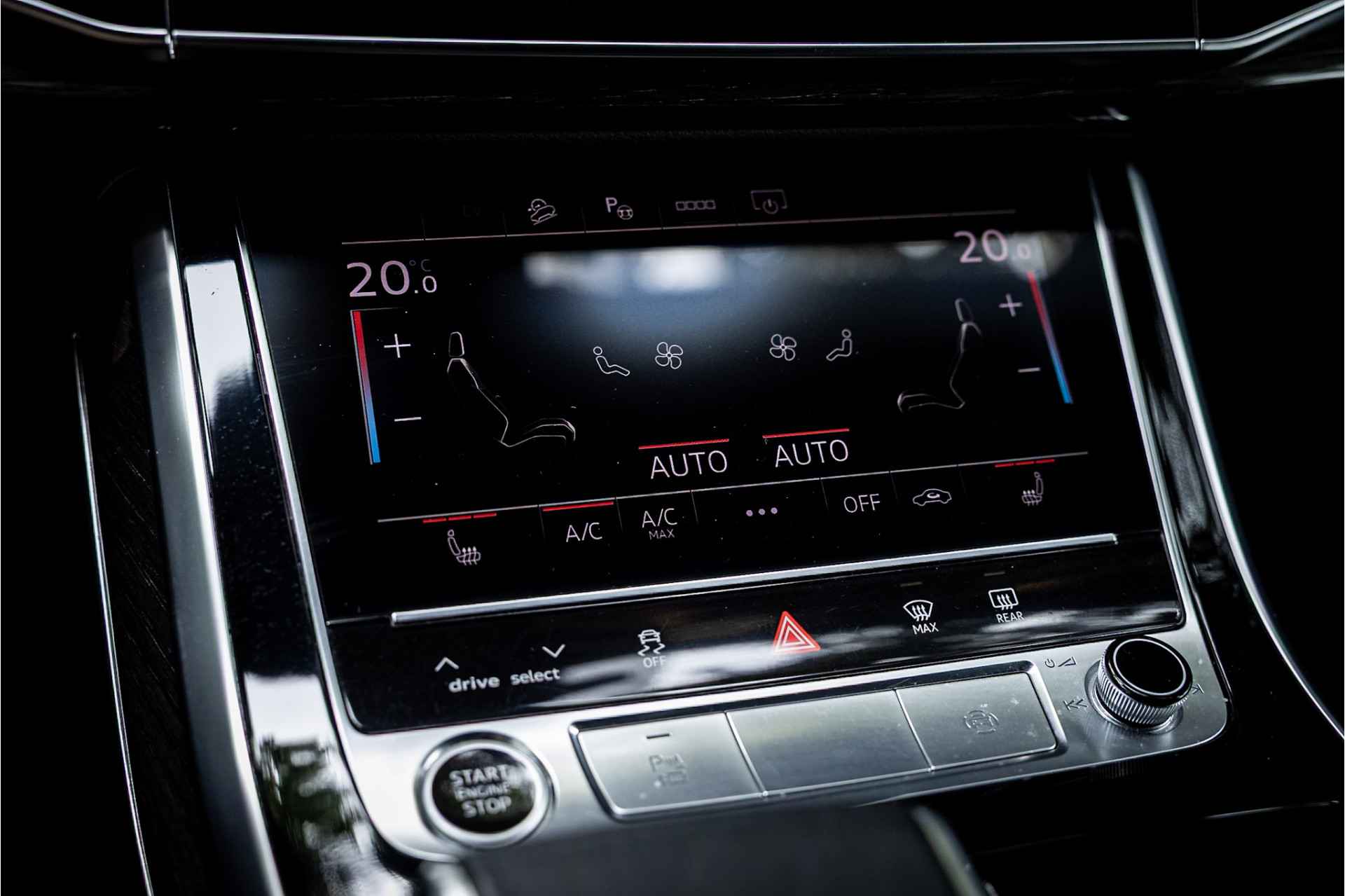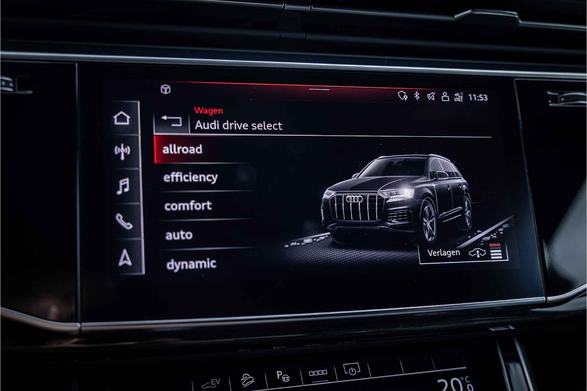 Tot de uitrusting behoort adaptive air suspension (luchtvering), adaptieve cruise control met automatische afstandsregeling, elektrisch wegdraaibare trekhaak, elektrisch verstelbare S Sportstoelen met memory functie voor bestuurder, 20" 10-spaaks velgen, Matrix LED koplampen met grootlichtassistent, LED achterlichten met dynamisch knipperlicht, ambienteverlichtingspakket, Advanced Key keyless entry en start, MMI Navigation plus met MMI Touch en verkeerstekenherkenning, extra getint glas achter, achteruitrijcamera, adaptive rij assistent, verkeerstekenherkenning, buitenspiegels elektrisch inklapbaar, virtual cockpit, DAB tuner, dakrails, verschuifbare achterbank, metallic lak, bluetooth connectiviteit en verwarmbare voorstoelen.