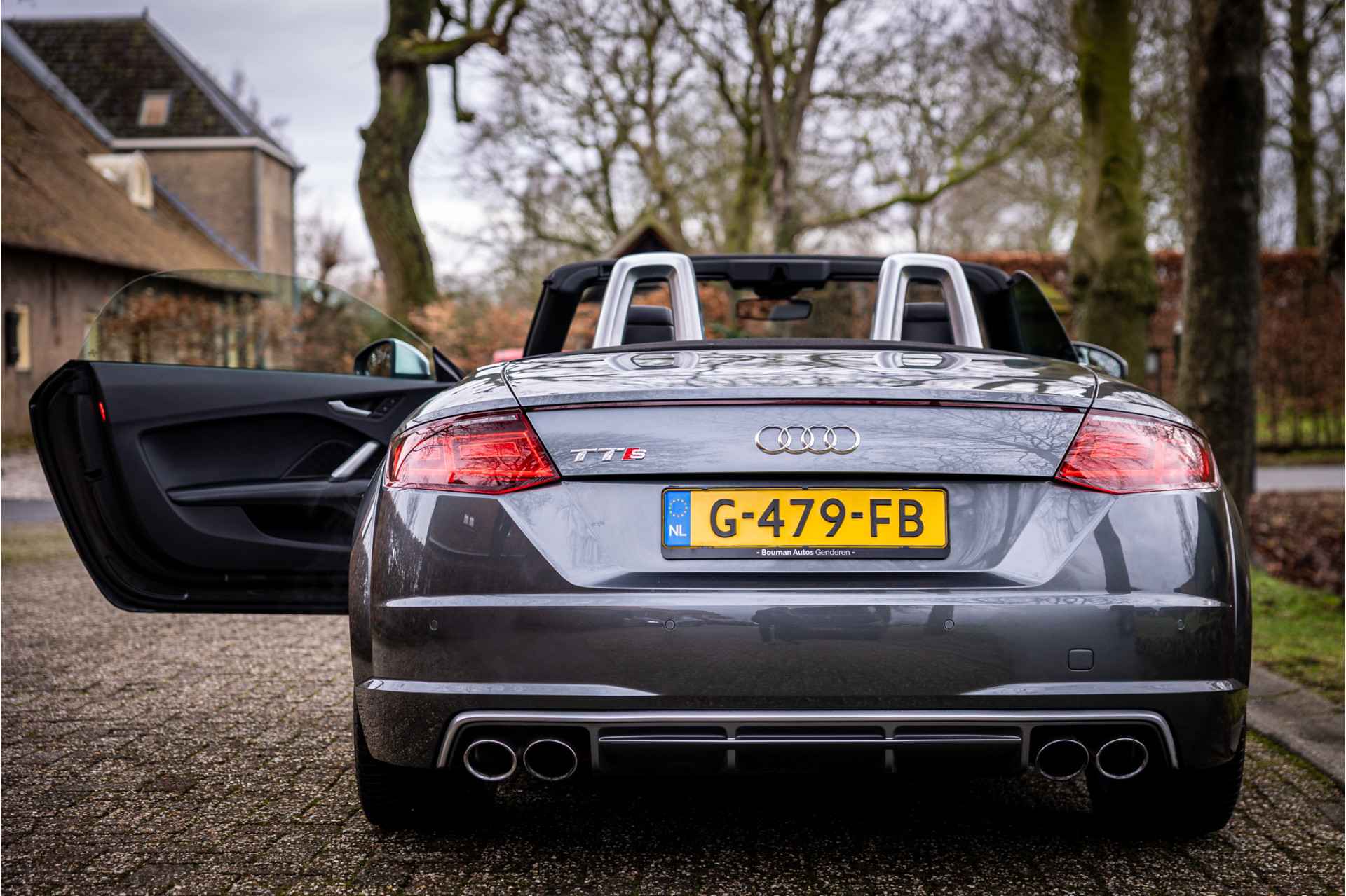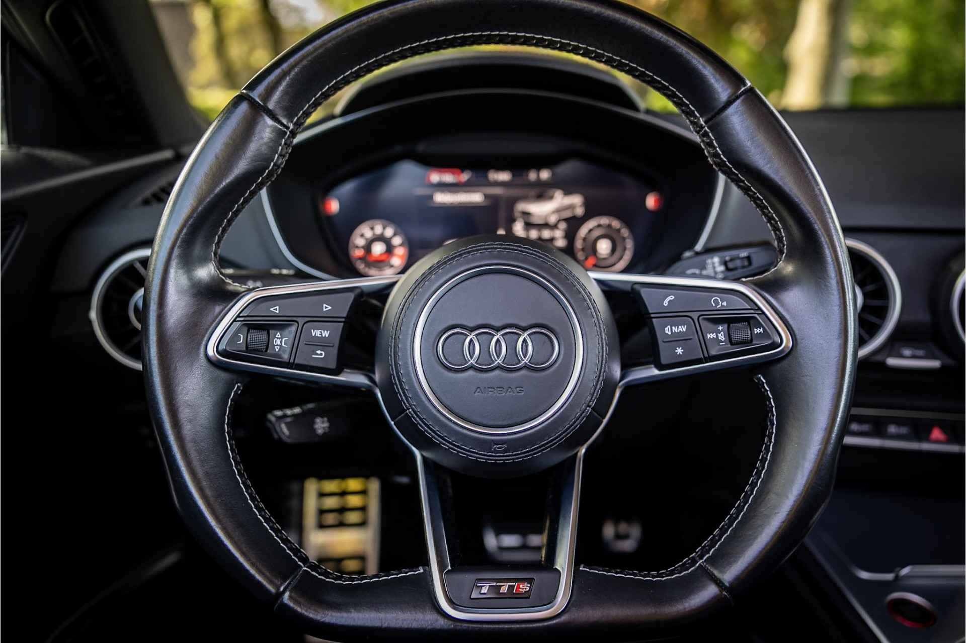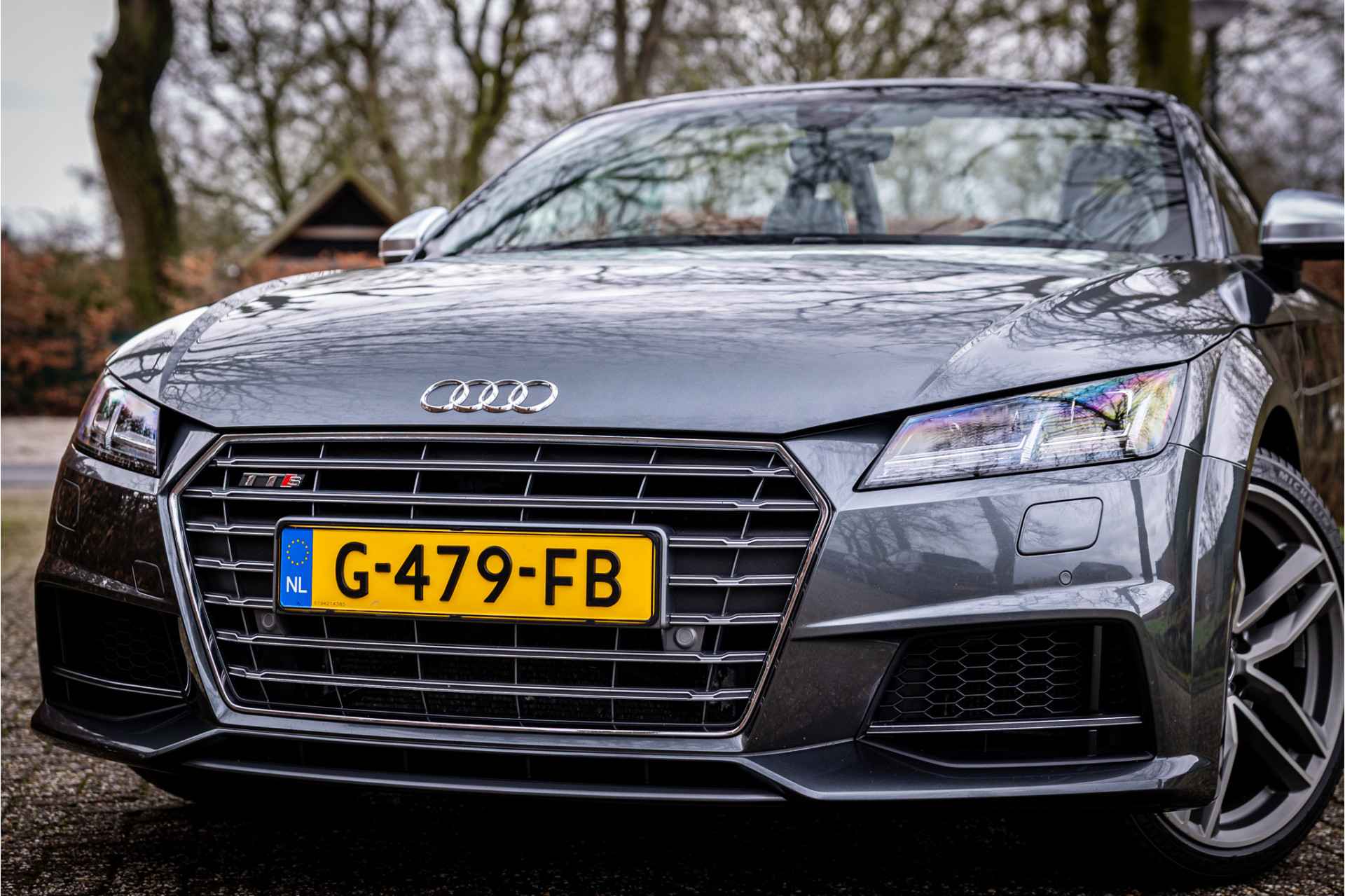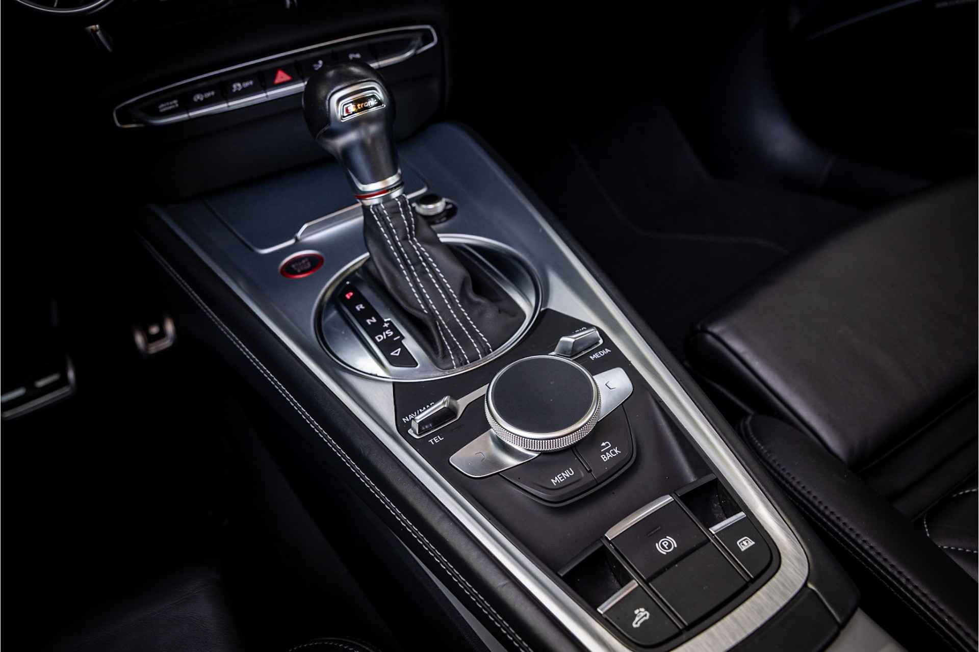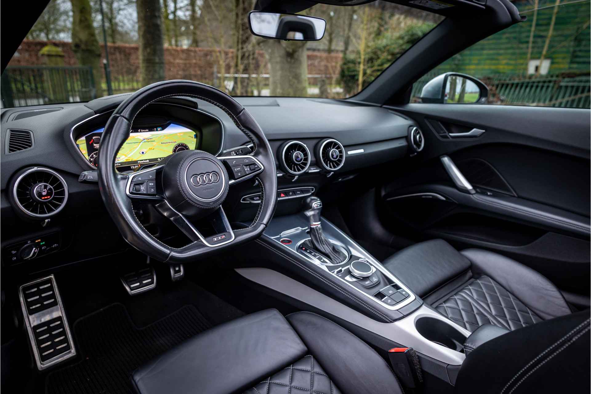 Fraaie Audi TTS Roadster Quattro in keurige conditie en rijke uitrusting aan opties. Nieuwwaarde van deze auto is 92.000 euro. Lakkleur van deze TTS is Daytonagrijs Pareleffect, het interieur is voorzien van S sportstoelen bekleed met leder en afgestikt in diamond stitching. De hemelbekleding is uitgevoerd in donker antraciet. Het interieur is voorzien van een uitgebreid lederpakket waarbij ook de middenconsole met leder is afgewerkt.