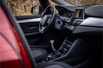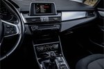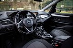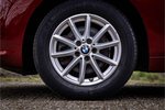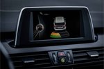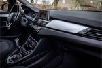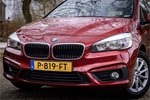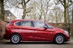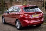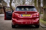 Keurige BMW 218i Active Tourer met zuinige benzinemotor. Lakkleur is Flamencorot Metallic en het interieur is voorzien van zwart stof.