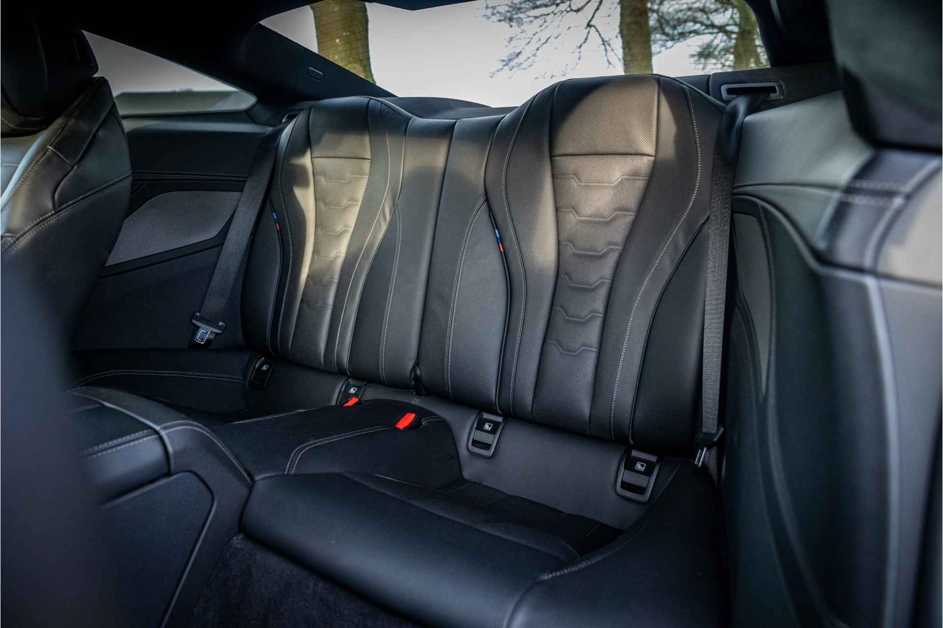 Tot de uitrusting behoort een M carbon dak voor lager zwaartepunt en verbeterde rijdynamiek, adaptief M onderstel Professional met actieve rolstabilisatie voor het hoogste niveau van rijstabiliteit en rijdynamiek, Laser Led koplampen met grootlichtassistent, vierwielbesturing met integrale stuurbekrachtiging voor kleinere draaicirkel op lage snelheid en hoge koersvastheid op hoge snelheid, soft close portieren, Crafted Clarity kristal voor bedieningselementen, actieve stoelventilatie op voorstoelen, 20" Y-spaak 728M velg, head up display, comfort access (keyless entry), 360 graden camera met 3D View, driving assistant professional met adaptieve cruise control en file assistent, M Sportremsysteem met blauwe remklauwen, actieve spoorassistent, draadloze telefoonlader, BMW display key, achteruitrijcamera, comfortstoelen met memory functie, extra warmtewerende voorruit, DAB-tuner, navigatiesysteem Professional, uitgebreide bluetooth telefoonvoorbereiding met audiostreaming, verwarmbare voorstoelen, verwarmbaar stuurwiel, extra getint glas achter, elektrisch bedienbare achterklep, elektrisch inklapbare buitenspiegels, metallic lak en multimedia aansluitingen.