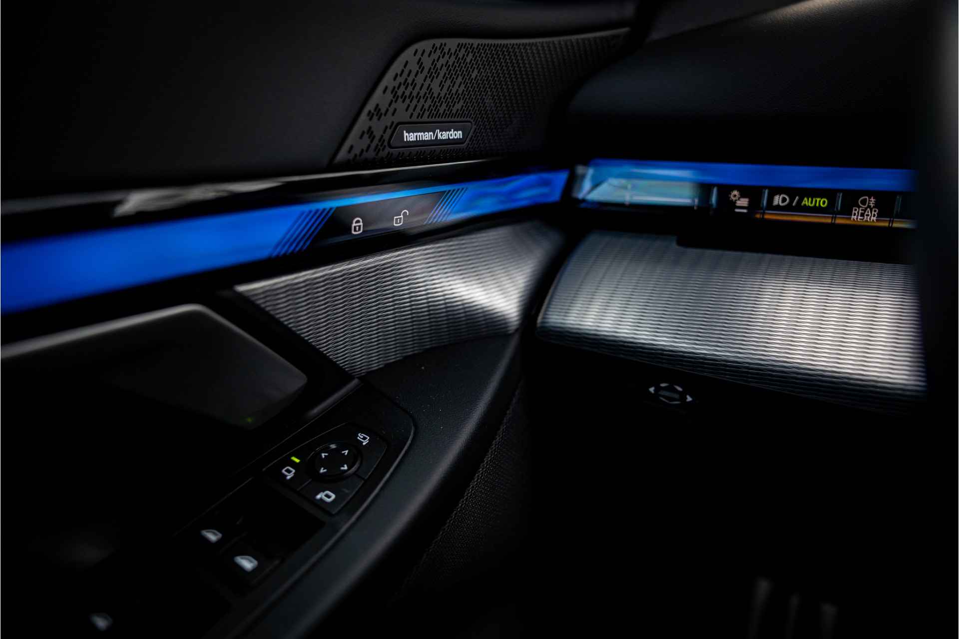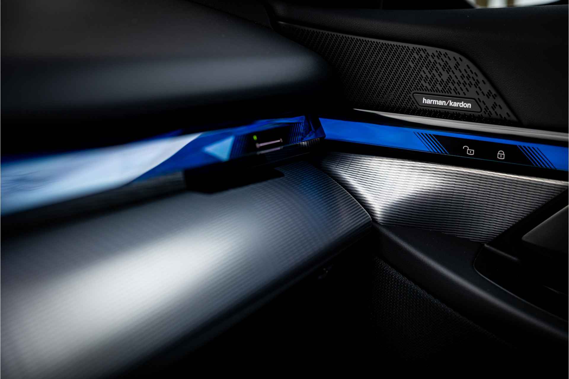 Tot de verdere uitrusting behoort een glazen panoramadak, 20" M sport 939 M Bicolor velgen, LED koplampen met grootlichtassistent, head up display, Harman Kardon surround audio, driving assistant plus met adaptieve cruise control en file assistent, elektrisch wegklapbare trekhaak, remote 3D view camera met 360 graden functie, elektrisch openen en sluiten van achterklep, M sportremsysteem met rode remzadels, ambienteverlichting, comfort access (keyless entry), BMW Live Dashboard Professional, steering en lane control assistant, side collision warning (dode hoek assistent), achteruitrijcamera, elektrische verstelbare stoelen, navigatiesysteem Professional, uitgebreide bluetooth telefoonvoorbereiding met audiostreaming, DAB tuner, draadloze telefoonlader, verwarmbare voorstoelen, verwarmbaar stuurwiel, BMW Iconicsounds generator, automatische klimaatregeling met gescheiden zones, elektrisch inklapbare buitenspiegels, metallic lak en multimedia aansluitingen voor de achterpassagiers.