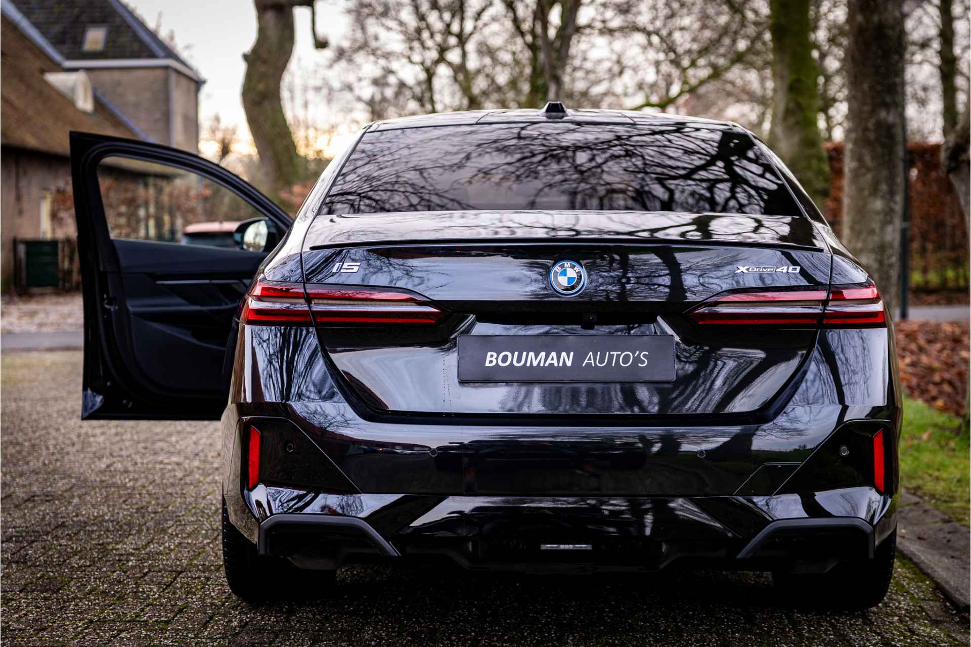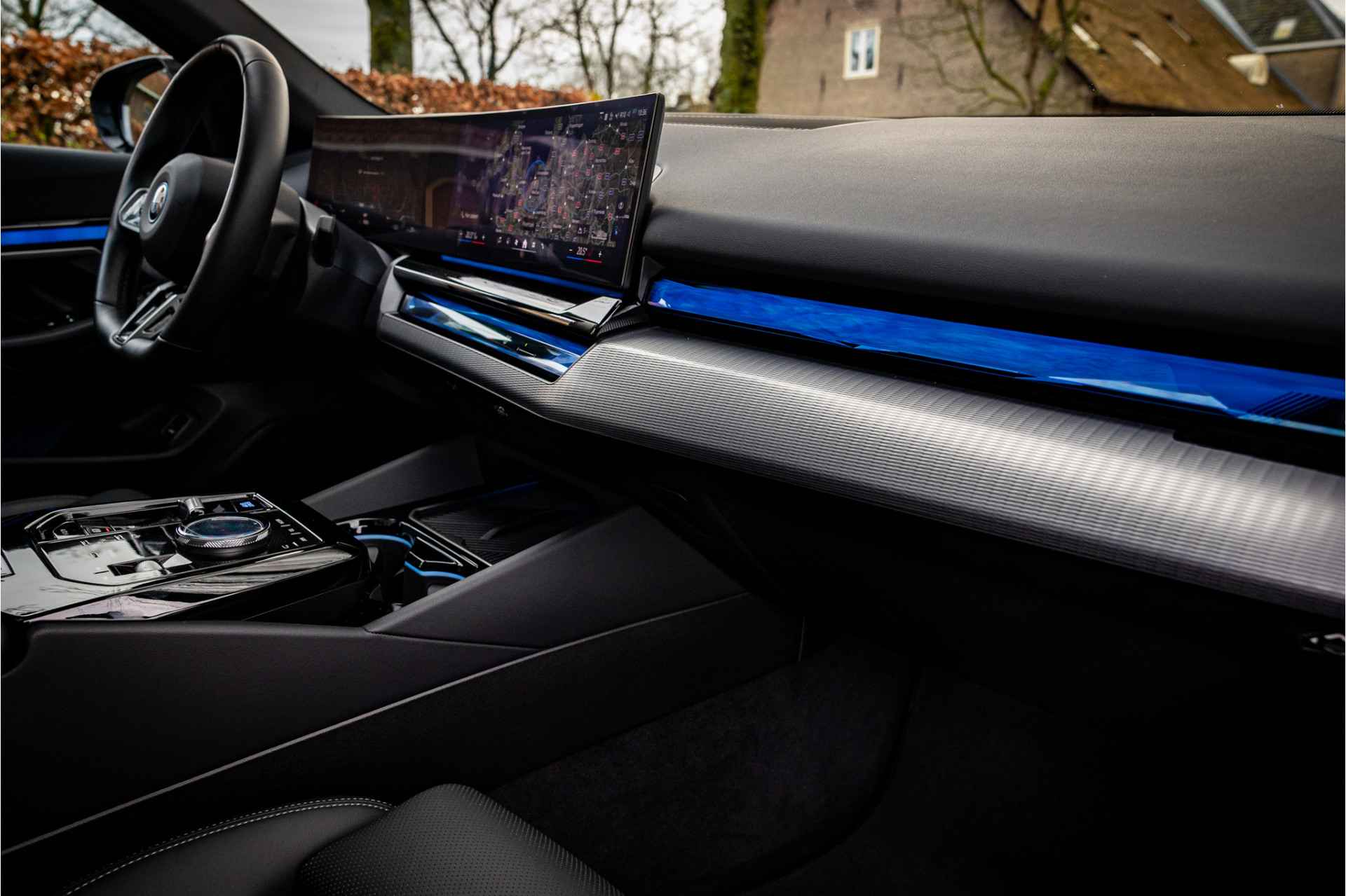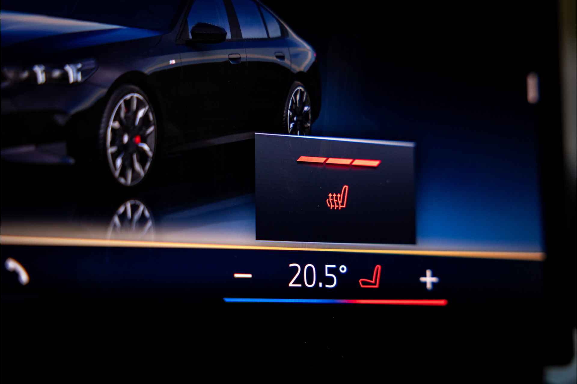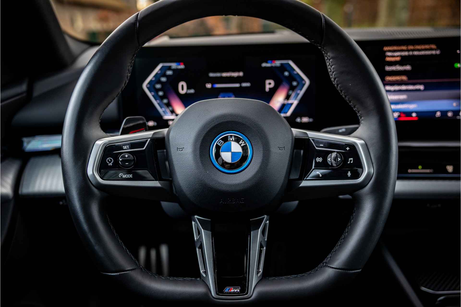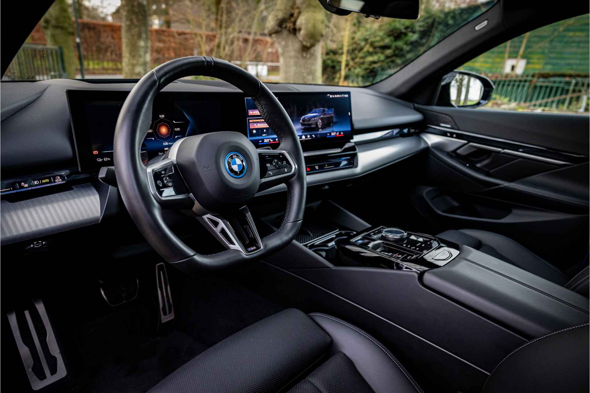 Fraai uitgevoerde BMW I5 eDrive 40 xDrive M Sport Pro met vierwiel aandrijving en een uitgebreide optielijst. Deze auto is nieuw in België geleverd. De lakkleur Black Sapphire Metallic in combinatie met shadowline exterieurpakket en de sportstoelen bekleed met Veganza kunstleder zijn een stijlvolle kleurencombinatie. De hemelbekleding is uitgevoerd in donker antraciet.