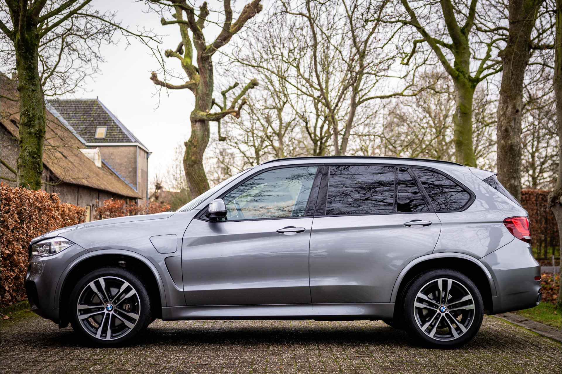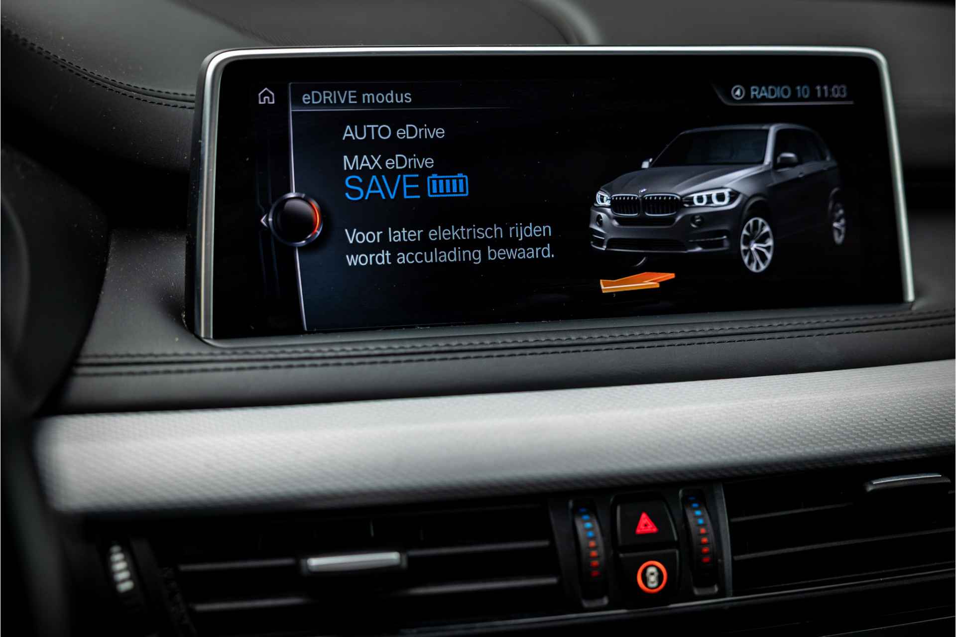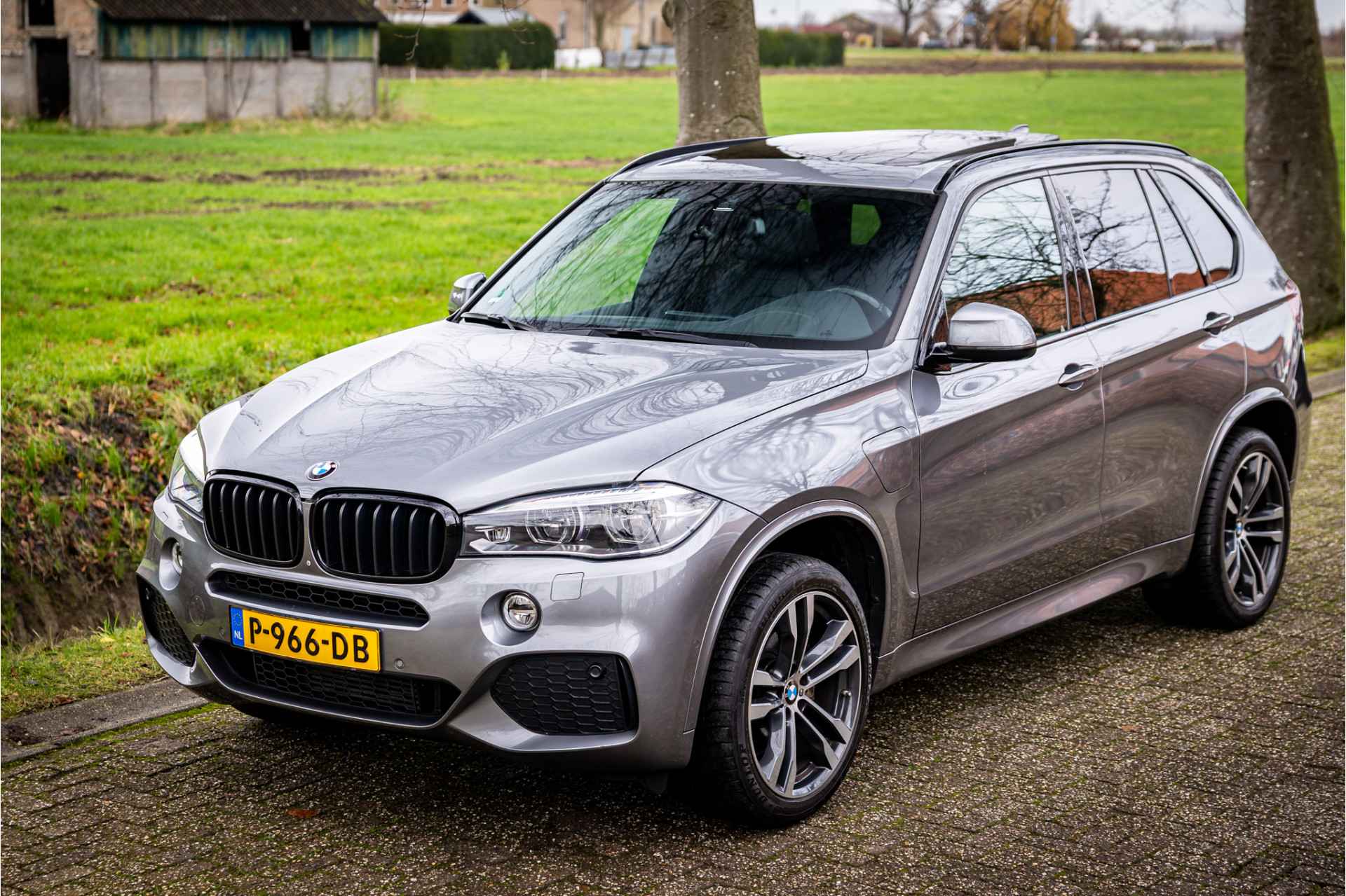 Fraaie en compleet uitgevoerde BMW X5 4.0e iPerformance M-Sport. De lakkleur Space Grau Metallic in combinatie met leder Dakota Schwarz interieur vormt een stijlvolle combinatie. Het lederen dashboard en de lederen deurpanelen geven een luxe beleving aan het interieur. De dynamische uitstraling wordt versterkt door het Shadowline hoogglans exterieurpakket.