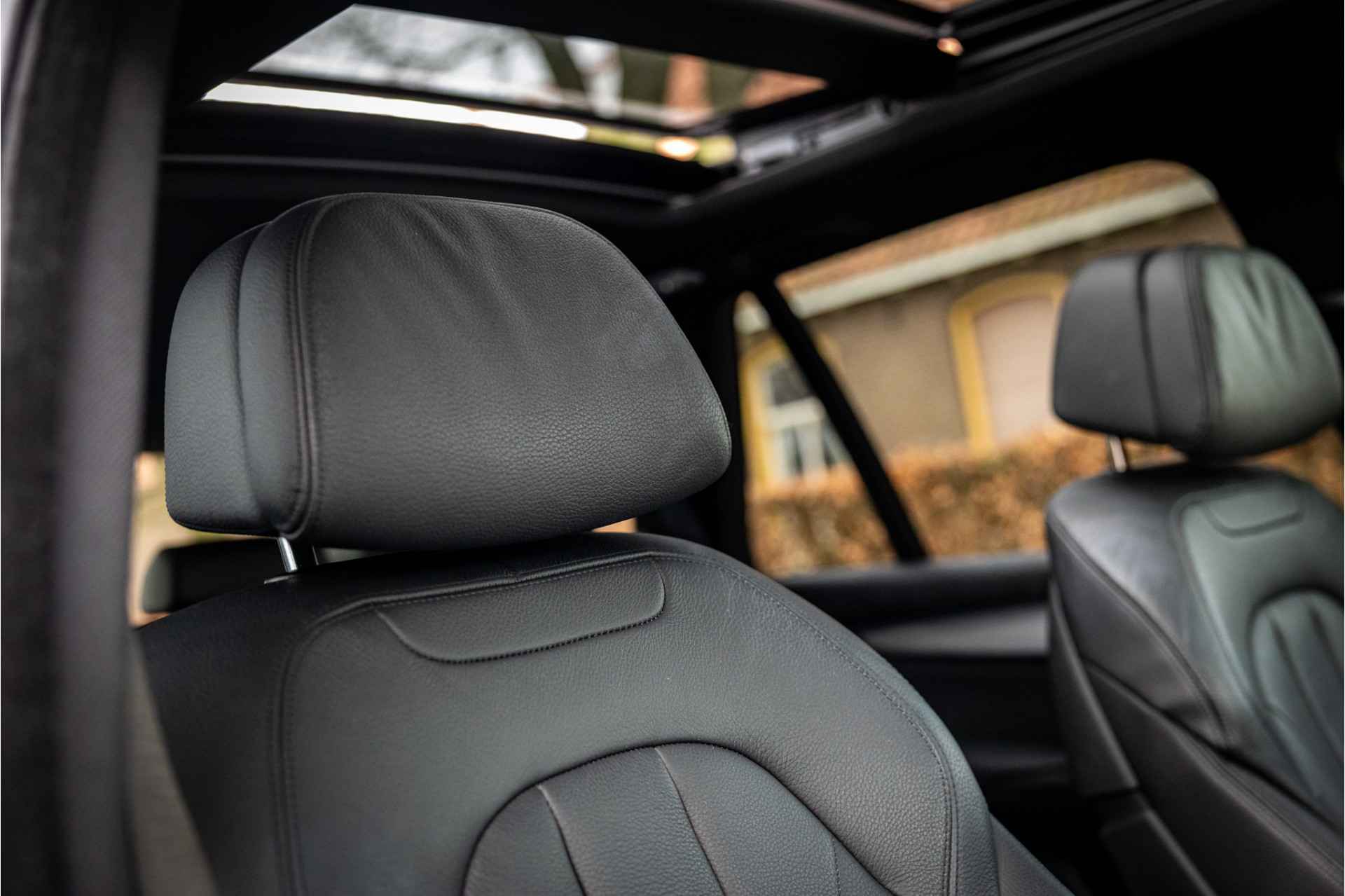 Tot de uitrusting behoort een glazen panoramadak, head up display, 20" M Sport velgen, surround view camera, Harman Kardon speaker audio systeem, adaptieve LED koplampen en grootlichtassistent, dode hoek assistent, Apple Carplay, navigatiesysteem Professional, verkeersbordherkenning, uitgebreide bluetooth telefoonvoorbereiding met audiostreaming, comfortstoelen met meervoudige verstelmogelijkheden, elektrisch verstelbare stoelen met memory functie, dakbekleding antraciet, automatische parkeerassistent, keramische toepassingen voor bedieningselementen, elektrisch bedienbare achterklep, verwarmbare voorstoelen, elektrisch verstelbare lendesteun voorstoelen, klasse 3 alarmsysteem, extra getint glas achter, automatische klimaatregeling met gescheiden zones, elektrisch inklapbare buitenspiegels, metallic lak en multimedia aansluitingen.