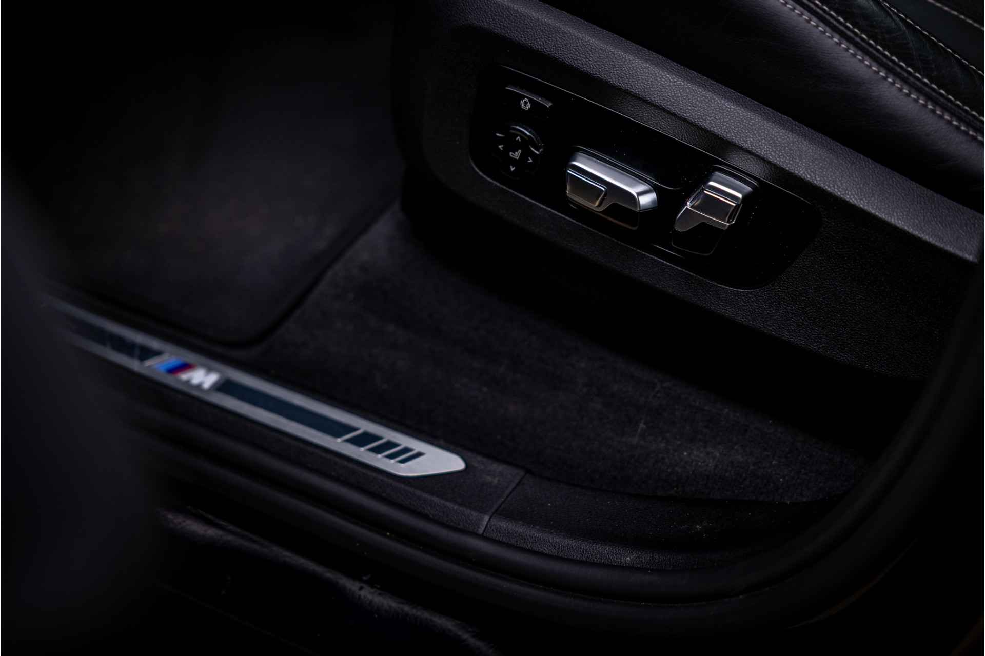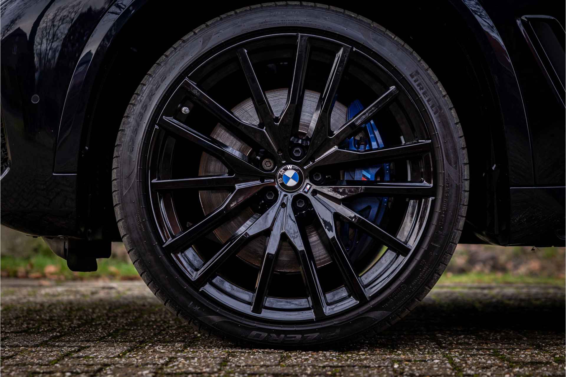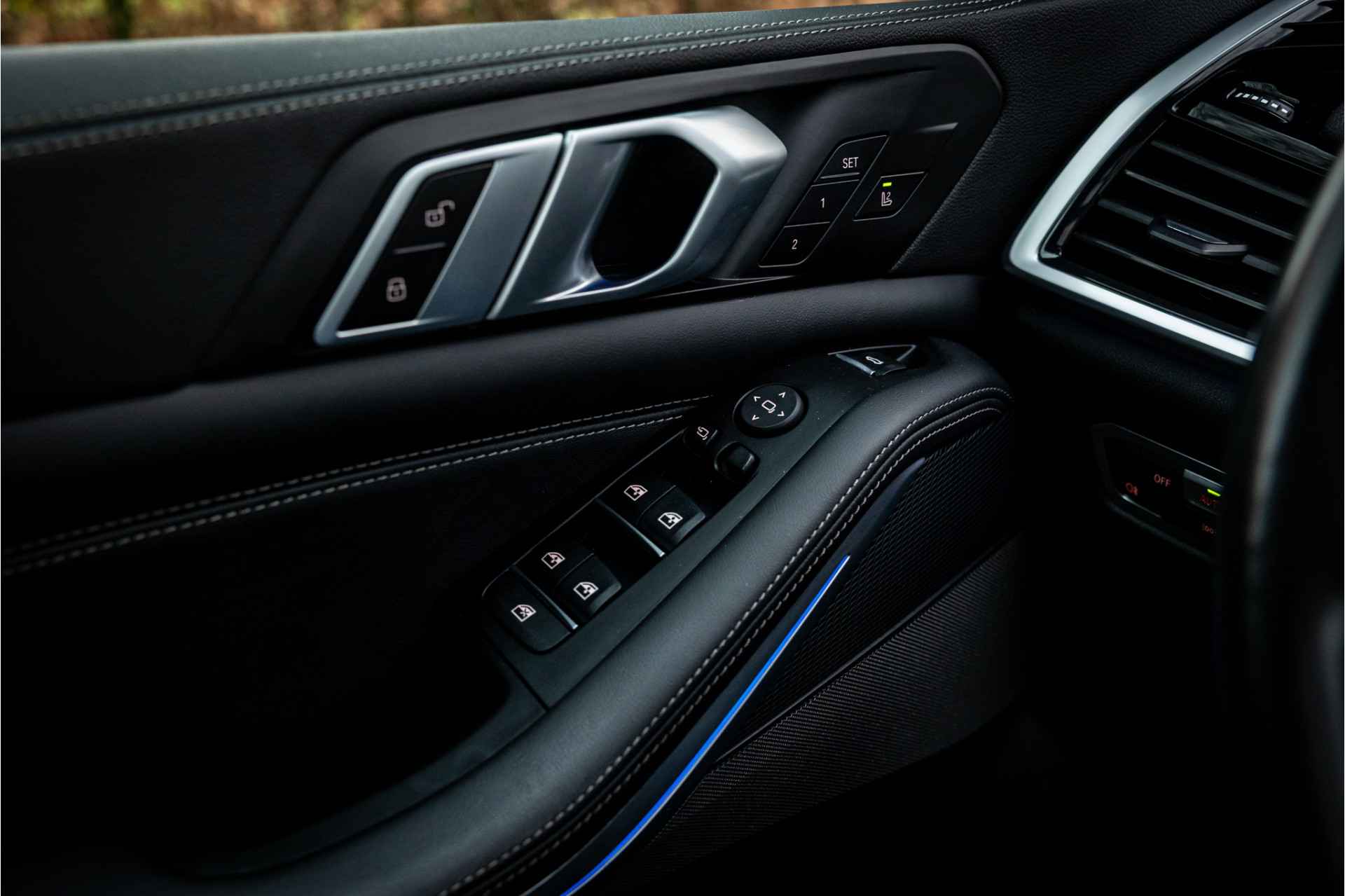Tot de uitrusting behoort een glazen panoramadak, M Multifunctionele stoelen, vierwielbesturing met integrale stuurbekrachtiging voor kleinere draaicirkel op lage snelheid en hoge koersvastheid op hoge snelheid, 22" Dubbelspaak Jet Black velg, stoelventilatie op voorstoelen, head up display, Harman Kardon speakersysteem, afneembare trekhaak, 360 graden camera met remote 3D View, adaptieve cruise control en file assistent, actieve spoorassistent, achteruitrijcamera, comfort access keyless entry, adaptieve Led koplampen met grootlichtassistent, automatische klimaatregeling met gescheiden zones, DAB-tuner, navigatiesysteem Professional met verkeersborddetectie, uitgebreide bluetooth telefoonvoorbereiding met audiostreaming, draadloze telefoonlader, verwarmbare voorstoelen, verwarmbaar stuurwiel, dakdraagsysteem hoogglans shadow line, extra getint glas achter, automatische klimaatregeling met gescheiden zones, elektrisch bedienbare achterklep, elektrisch inklapbare buitenspiegels, metallic lak en multimedia aansluitingen.
