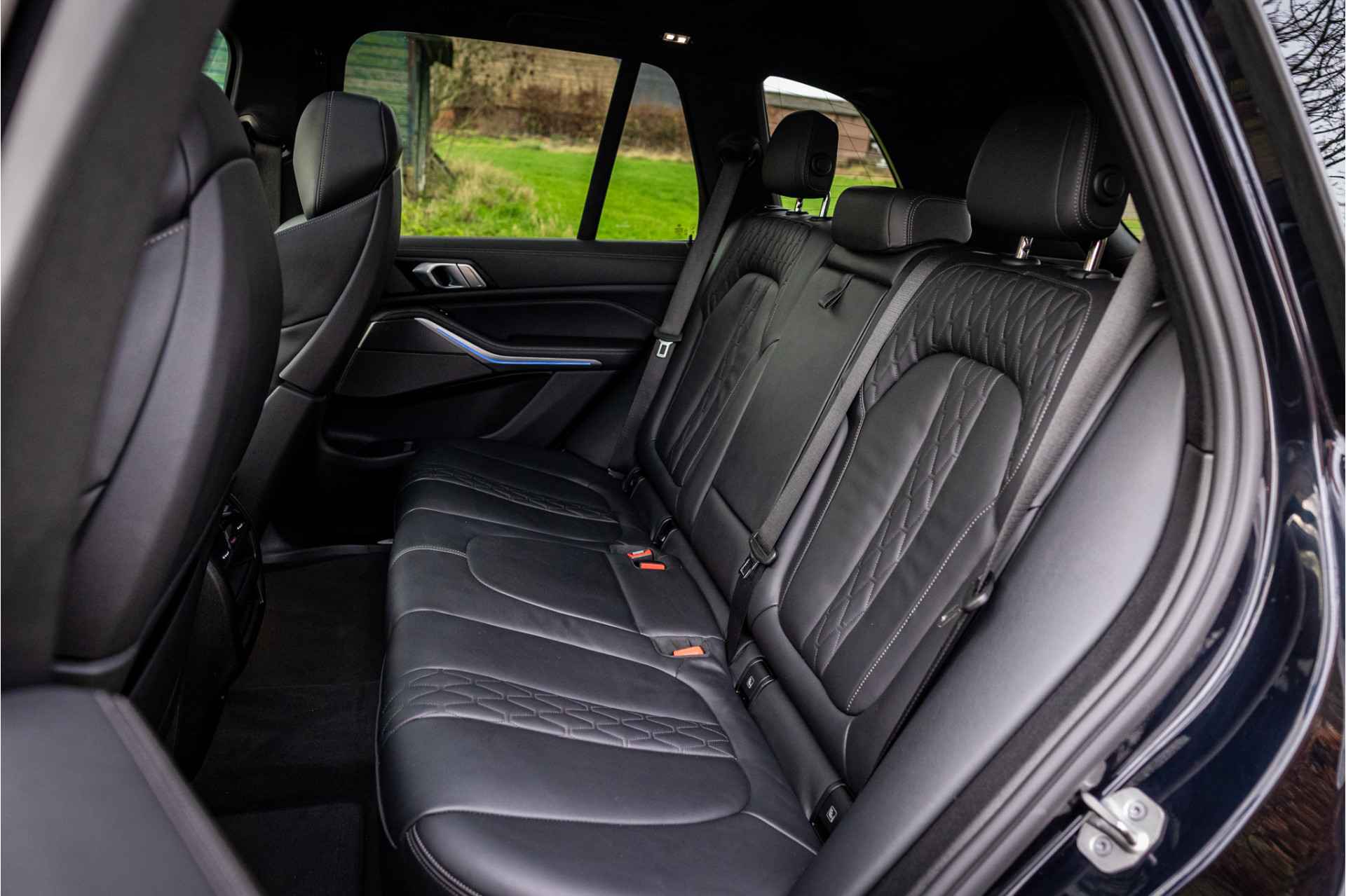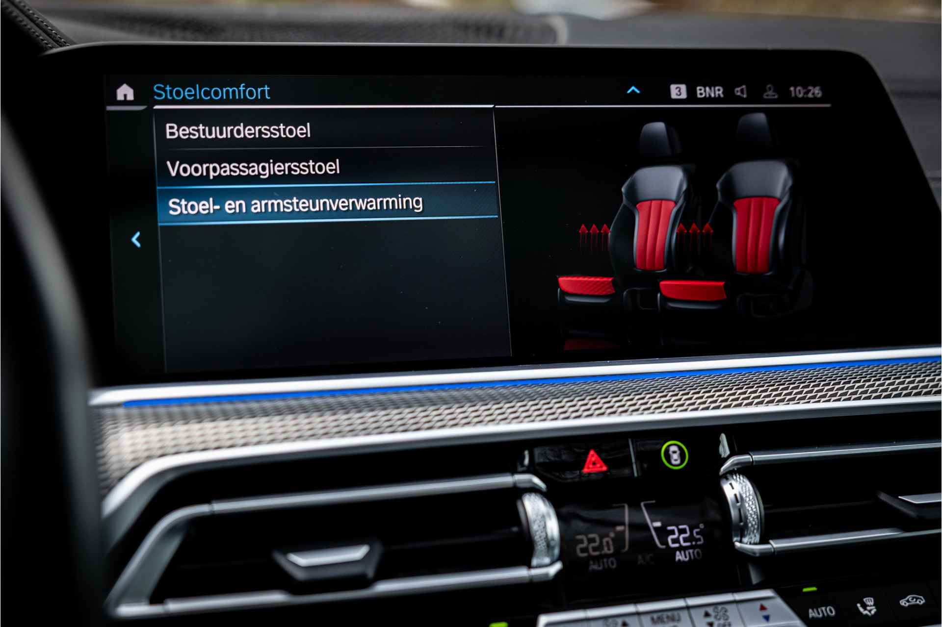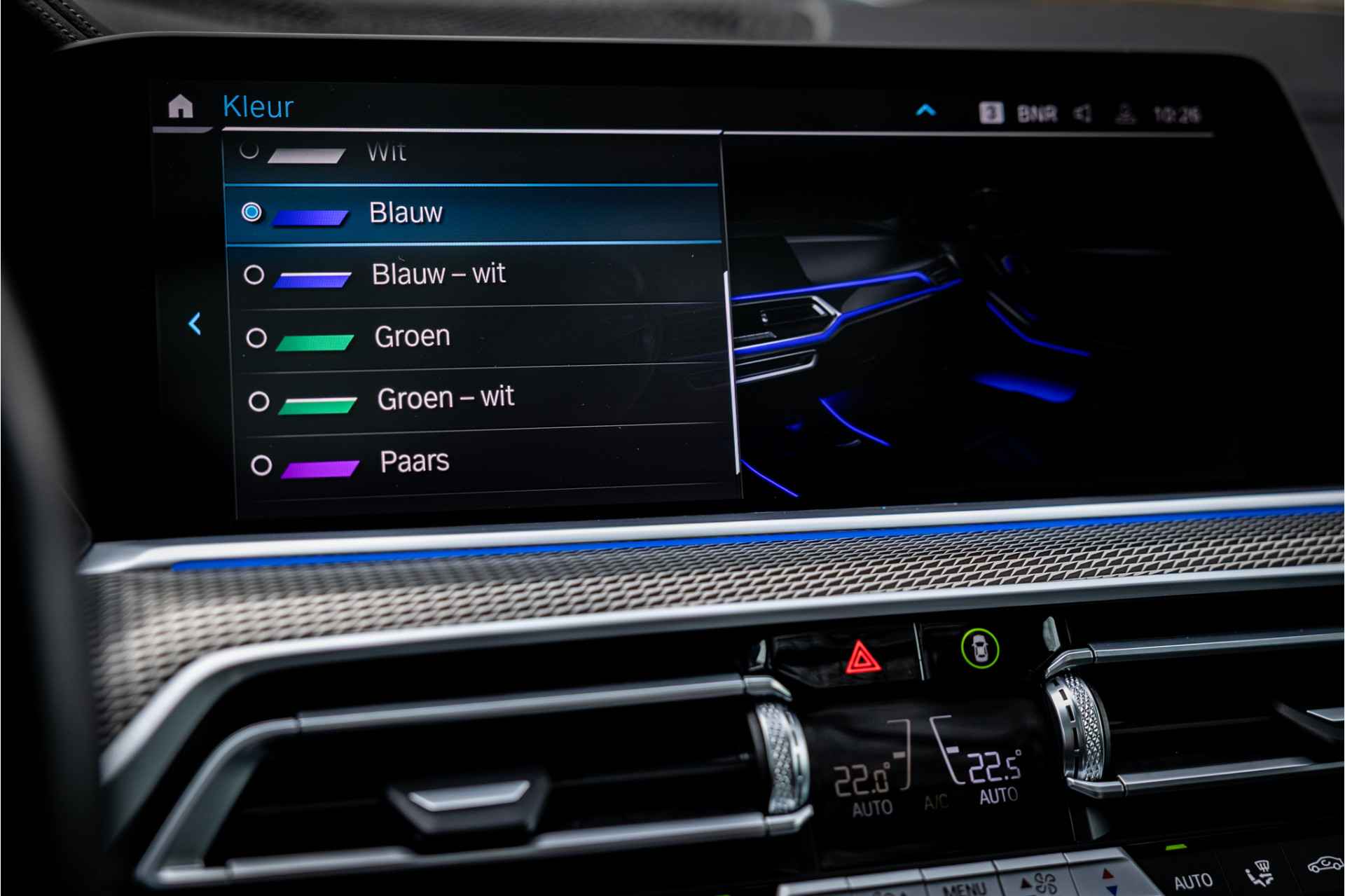 Tot de uitrusting behoort een glazen panoramadak, M Multifunctionele stoelen, vierwielbesturing met integrale stuurbekrachtiging voor kleinere draaicirkel op lage snelheid en hoge koersvastheid op hoge snelheid, 22" Dubbelspaak Jet Black velg, stoelventilatie op voorstoelen, head up display, Harman Kardon speakersysteem, afneembare trekhaak, 360 graden camera met remote 3D View, adaptieve cruise control en file assistent, actieve spoorassistent, achteruitrijcamera, comfort access keyless entry, adaptieve Led koplampen met grootlichtassistent, automatische klimaatregeling met gescheiden zones, DAB-tuner, navigatiesysteem Professional met verkeersborddetectie, uitgebreide bluetooth telefoonvoorbereiding met audiostreaming, draadloze telefoonlader, verwarmbare voorstoelen, verwarmbaar stuurwiel, dakdraagsysteem hoogglans shadow line, extra getint glas achter, automatische klimaatregeling met gescheiden zones, elektrisch bedienbare achterklep, elektrisch inklapbare buitenspiegels, metallic lak en multimedia aansluitingen.