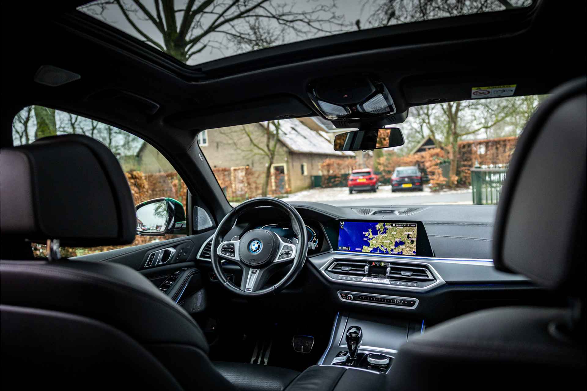 Fraai uitgevoerde BMW X5 45e M Sport met een uitgebreide optielijst. Deze auto is afkomstig van de eerste eigenaar en volledig dealer onderhouden. De lakkleur Black Sapphire Metallic en het Vernasca Zwart leder interieur zijn een stijlvolle kleurencombinatie. Het shadowline pakket versterkt de dynamische uitstraling van deze X5.