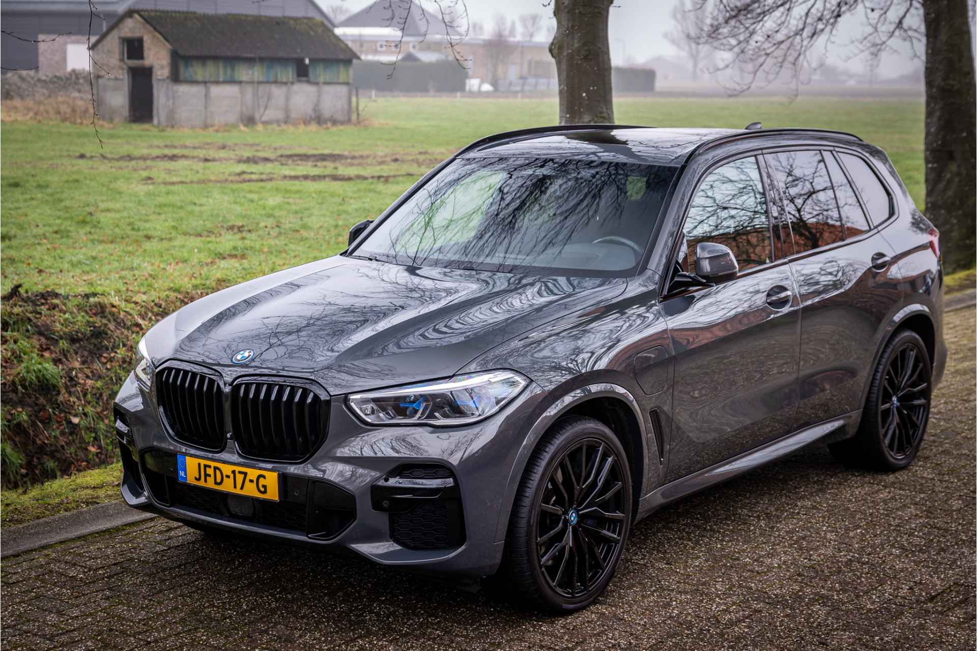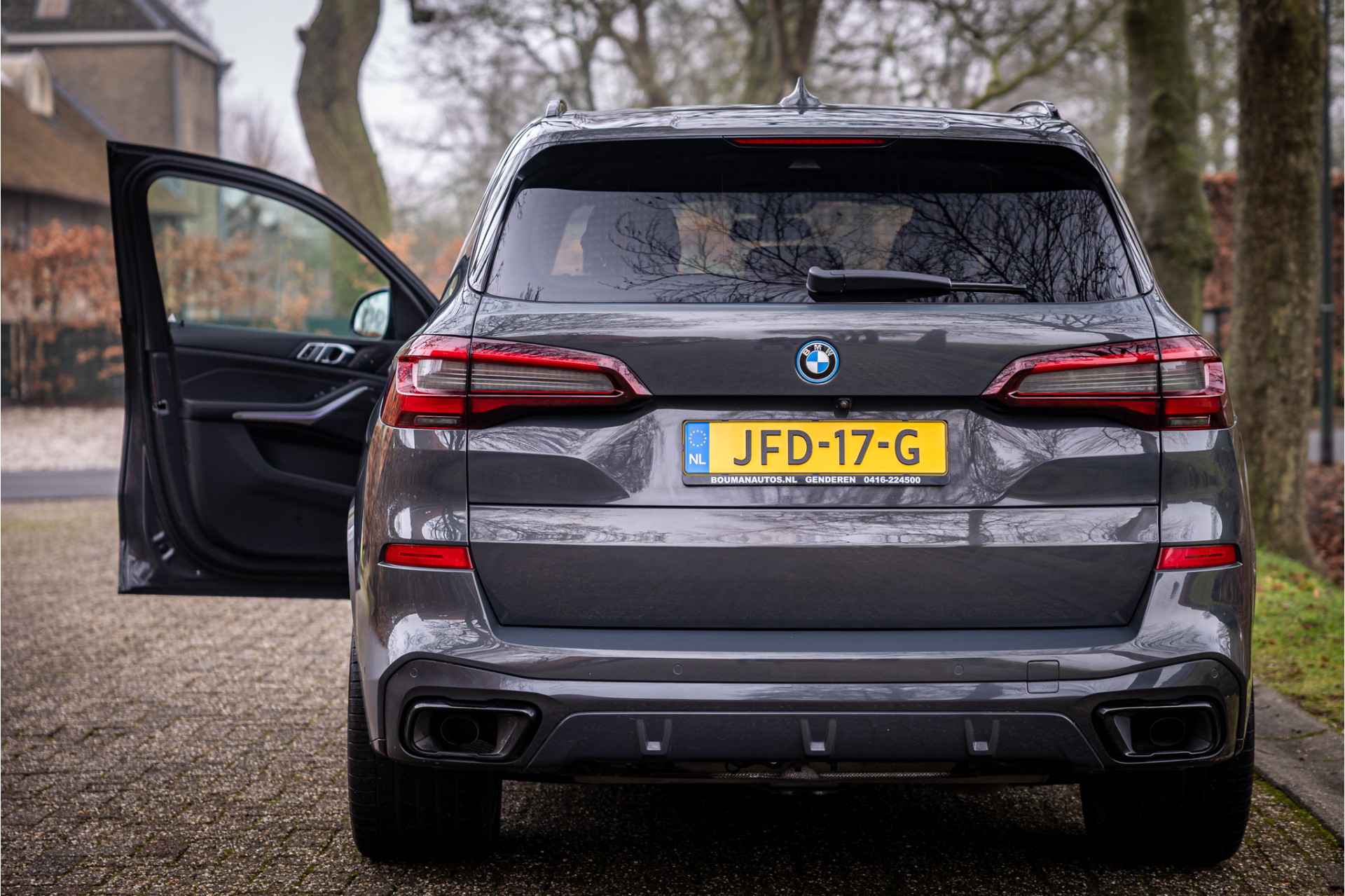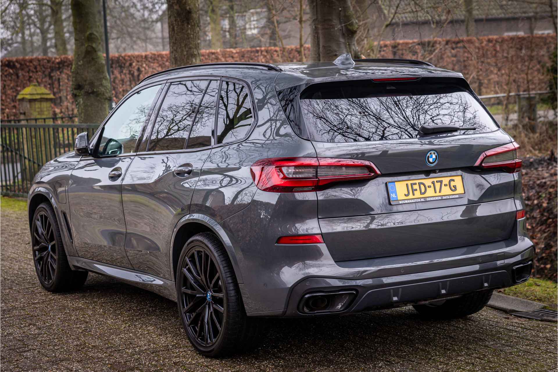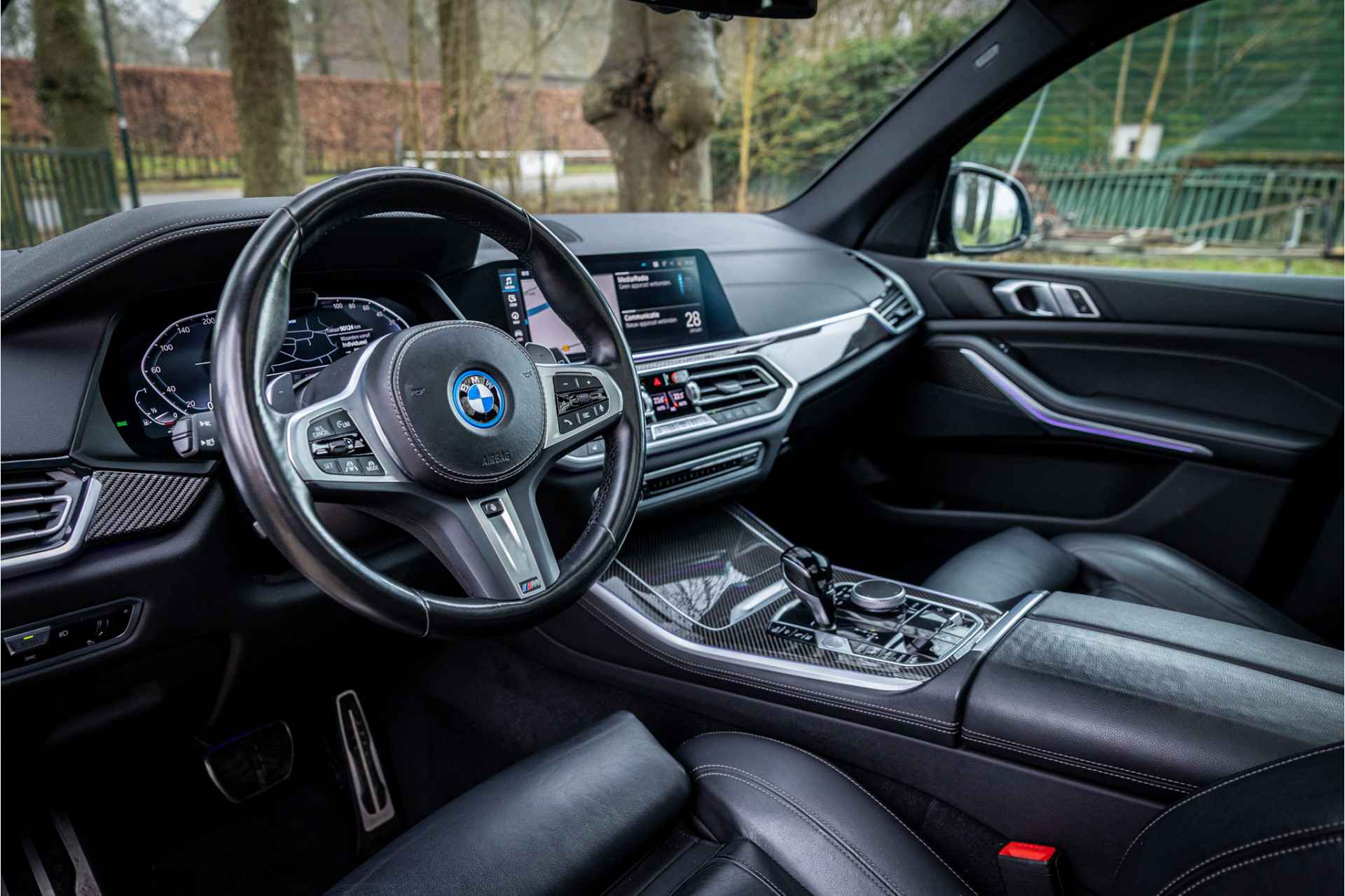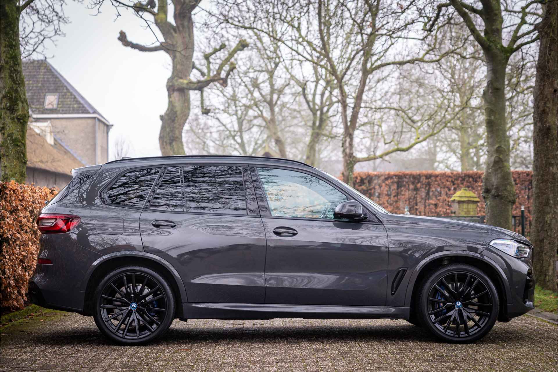 Fraai uitgevoerde BMW X5 45e M Sport met een zeer uitgebreide optielijst. Deze auto is volledig dealer onderhouden. De lakkleur Individual Dravit Grau Metallic en het Schwarz leder interieur zijn een stijlvolle kleurencombinatie. Het interieur is voorzien van carbon sierlijsten. Het shadowline pakket versterkt de dynamische uitstraling van deze X5.
