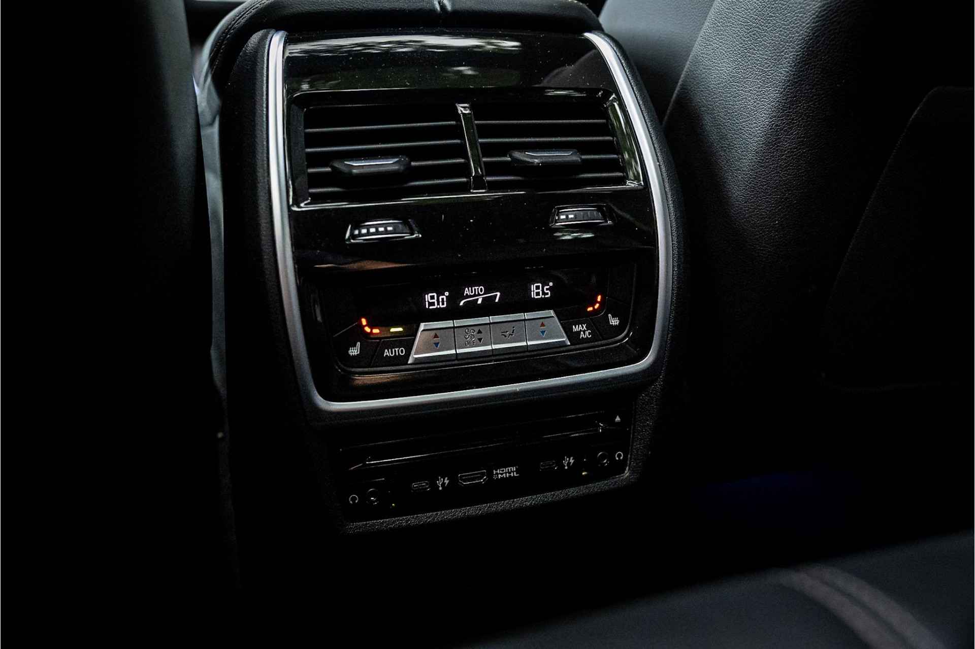 Tot de uitrusting behoort het Sky Lounge glazen panoramadak met geintegreerde verlichting, Entertainment schermen voor achterpassagiers, Laser Led koplampen met grootlichtassistent, 22" Dubbelspaak 742M Jet Black velg, head up display, comfort access (keyless entry), afneembare trekhaak, BMW Gesture Control, 360 graden camera met remote 3D View, HiFi premium speakersysteem, driving assistant professional met adaptieve cruise control en file assistent, actieve spoorassistent, achteruitrijcamera, comfortstoelen met memory functie, BMW display key, DAB-tuner, navigatiesysteem Professional, uitgebreide bluetooth telefoonvoorbereiding met audiostreaming, verwarmbare voorstoelen, verwarmbare zitplaatsen achter, verwarmbaar stuurwiel, dakdraagsysteem hoogglans shadow line, extra getint glas achter, zonneschermen in achterportieren, elektrisch bedienbare achterklep, automatische klimaatregeling met 4 zones, elektrisch inklapbare buitenspiegels, Active Protection veiligheidssysteem, metallic lak en multimedia aansluitingen.