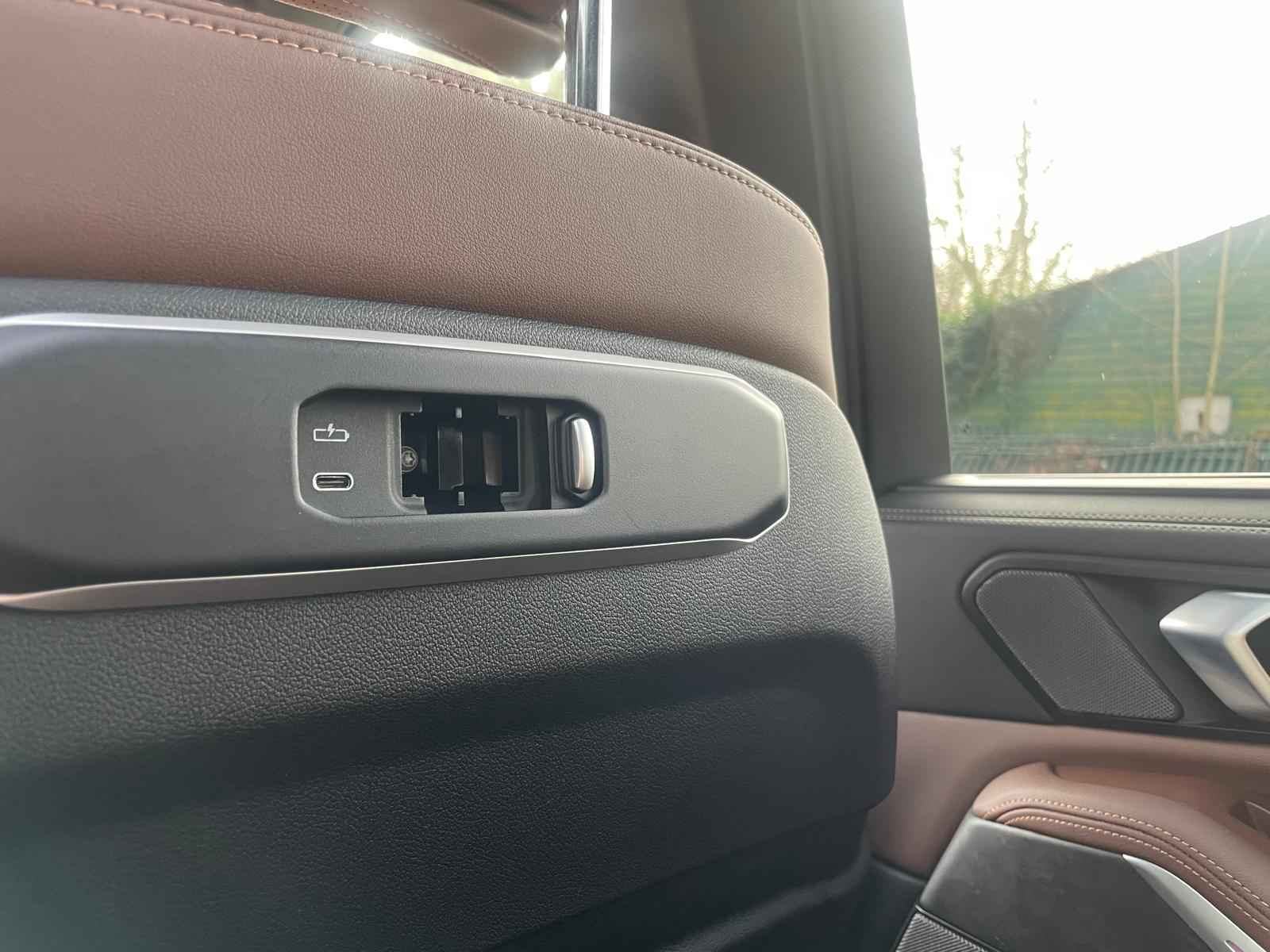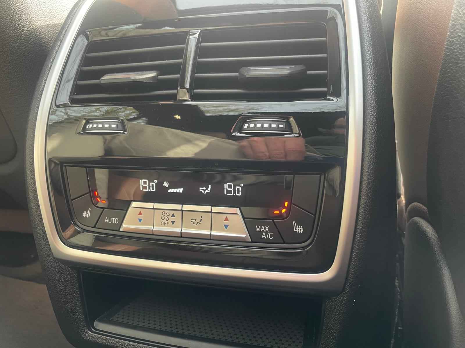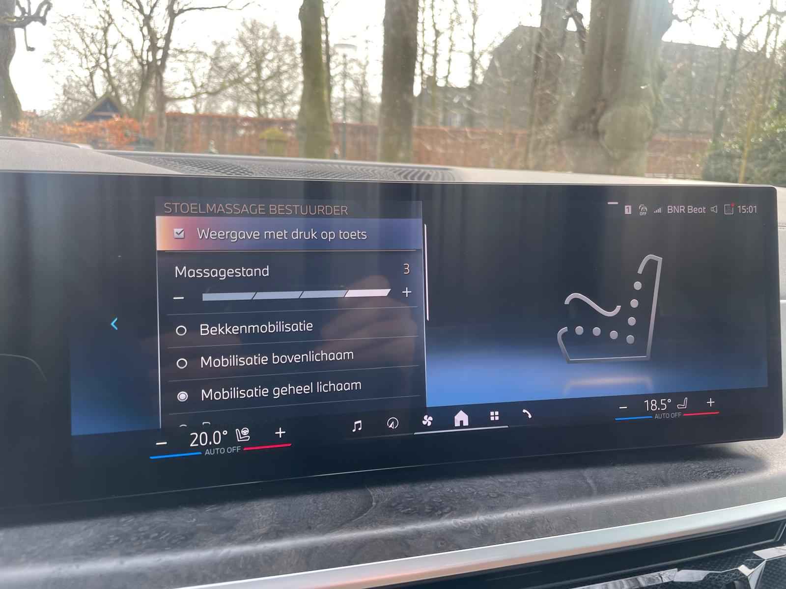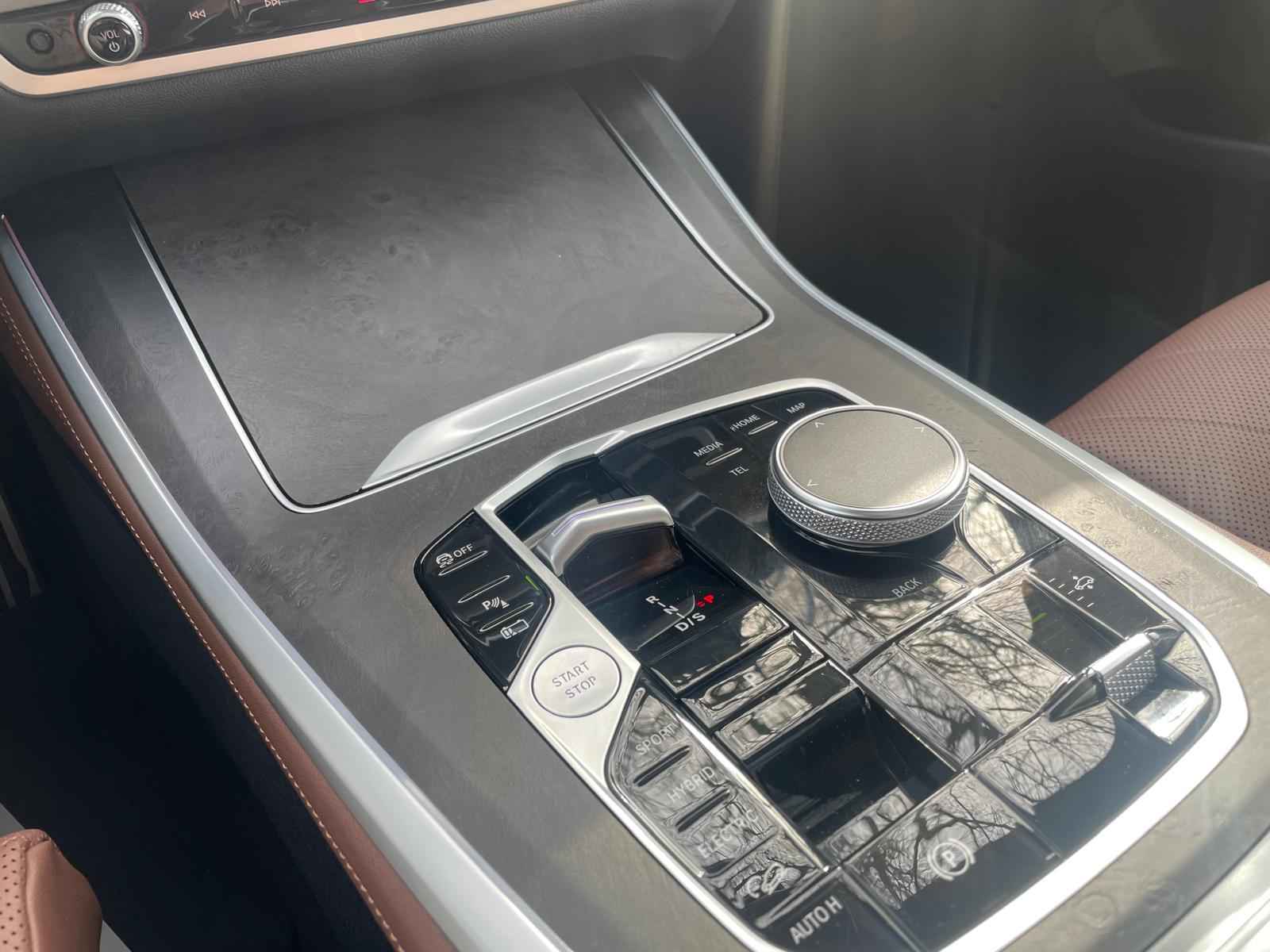Tot de verdere uitrusting behoort massagefunctie op de voorstoelen, soft close portieren, 22" dubbelspaak 915 M velg, stoelventilatie op voorstoelen, ambient air pakket met automatische parfumering, verwarmbare / koelbare bekerhouders, Harman Kardon surround audio, head up display, 4 gescheiden zone klimaatregeling, elektrisch wegklapbare trekhaak, Iconic Glow verlichte grille, akoestisch geluidsisolerend glas, luchtvering met niveauregeling, comfort access (keyless entry), LED koplampen met adaptieve lichtverdeling, 360 graden camera met remote 3D View, BMW Gesture Control, dode hoek assistent, actieve spoorassistent, draadloos laden voor smartphone, achteruitrijcamera, comfortstoelen met memory functie, DAB-tuner, navigatiesysteem Professional en speed limit weergave, uitgebreide bluetooth telefoonvoorbereiding met audiostreaming, verwarmbare voorstoelen, verwarmbare zitplaatsen achter, verwarmbaar stuurwiel, travel pakket met universele aansluiting voor tablets en andere accessoires in achterzijde van voorstoelen, dakdraagsysteem hoogglans shadow line, extra getint glas achter, elektrisch bedienbare achterklep, automatische klimaatregeling met gescheiden zones voor en achter, elektrisch inklapbare buitenspiegels en multimedia aansluitingen.