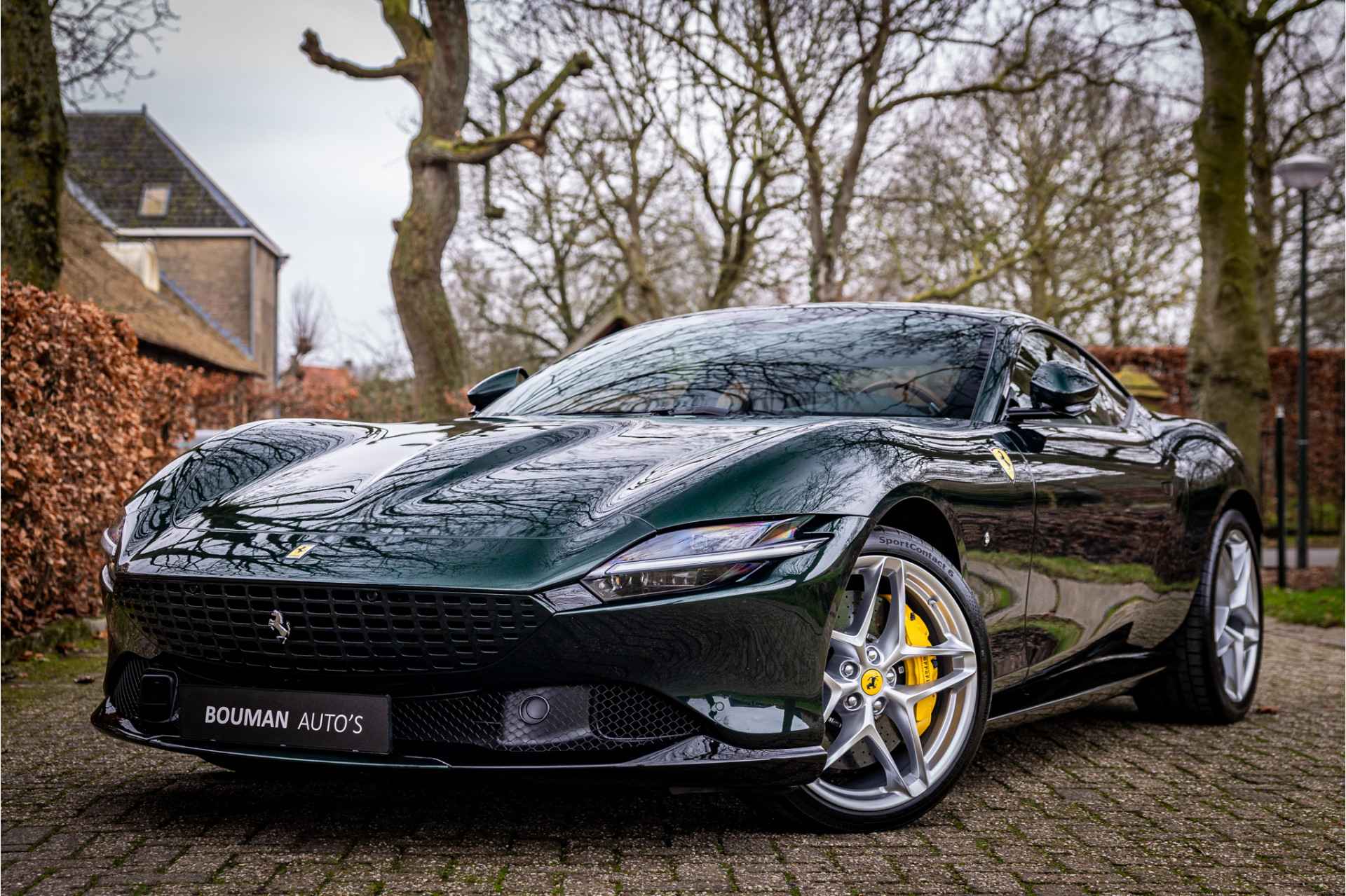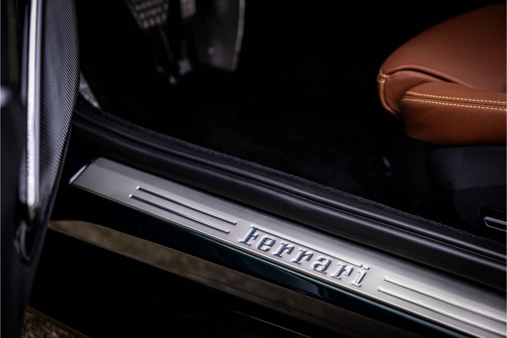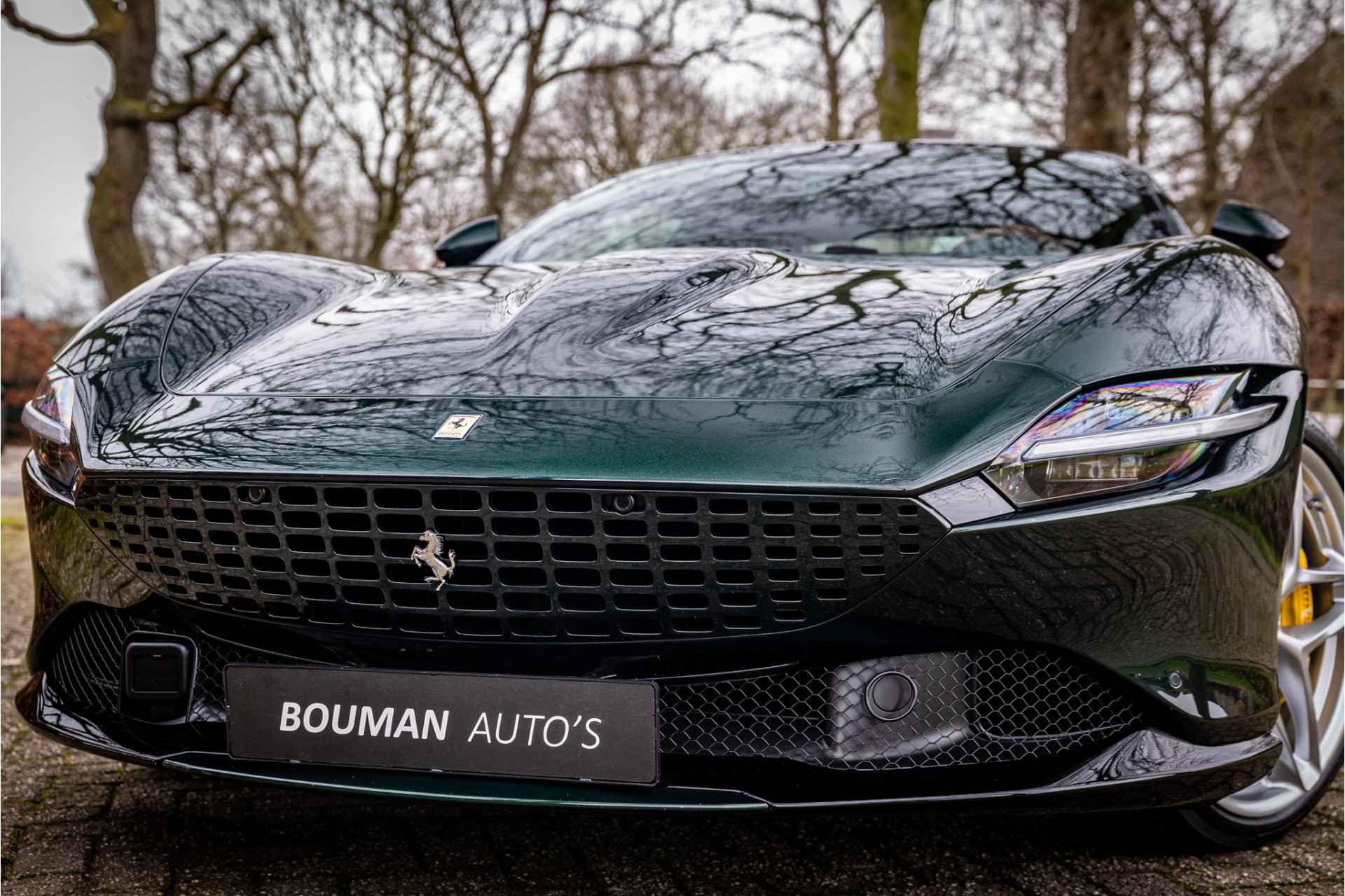 Prachtig uitgevoerde Ferrari Roma afkomstig van de eerste eigenaar in zeer nette conditie. De auto is voorzien van een full body PPF voor optimale lakbescherming. Lakkleur is Verde Zeltweg, dit is een 2 layer special paint met een meerprijs van 12.100 euro. Het interieur is uitgevoerd in leder Terra Bruciata met volledig elektrische stoelen en leder in vierkant patroon met bijpassende stiksels. De gordels zijn uitgevoerd in bijpassende kleur. De dakhemel is volledig uitgevoerd in donker alcantara. De remklauwen zijn gespoten in Giallo Modena wat stijlvol combineert met de Scuderia Ferrari badges op de spatborden.