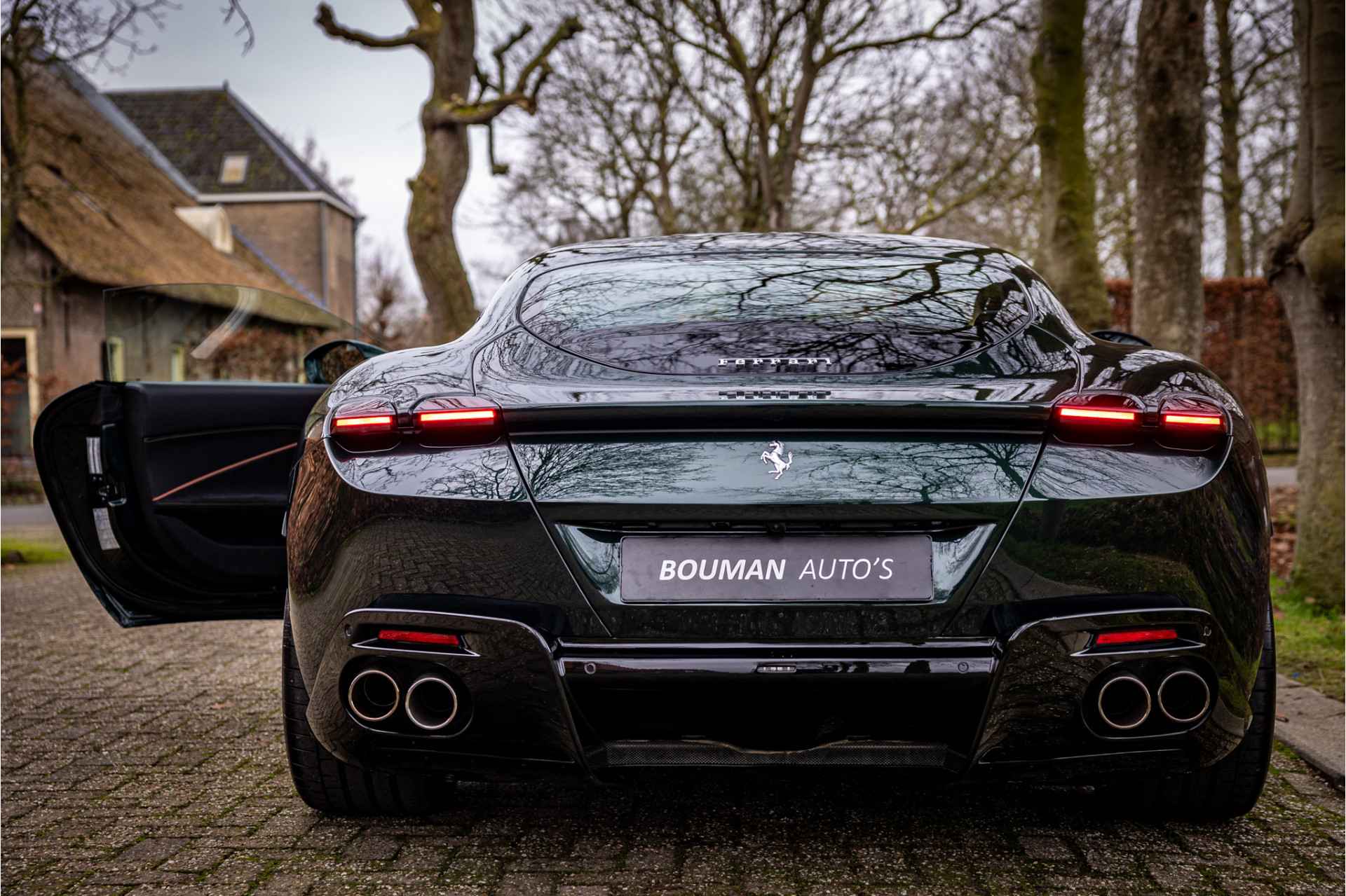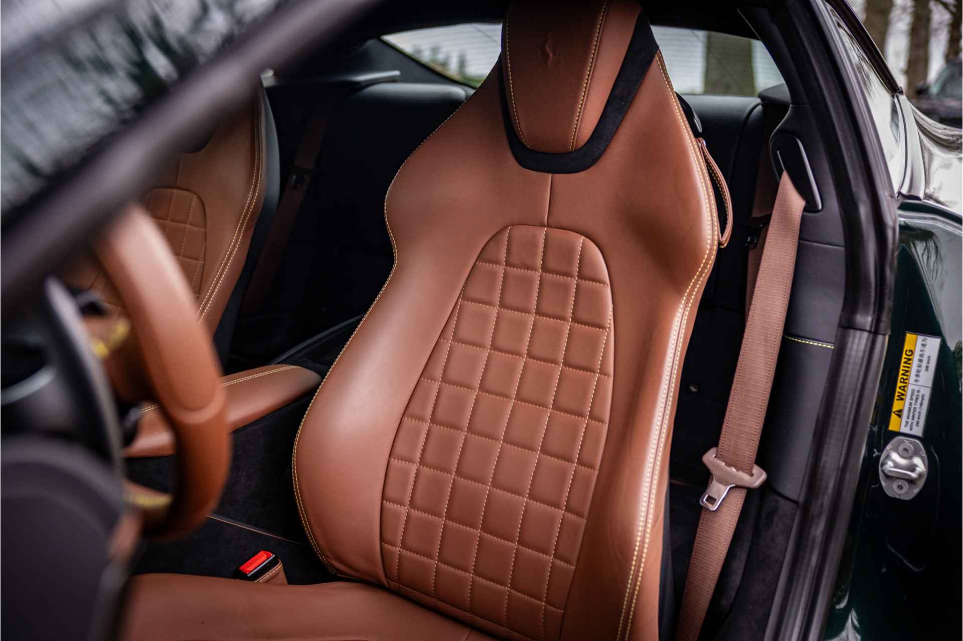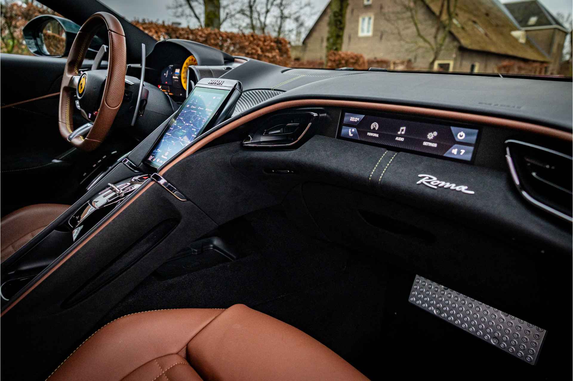 Prachtig uitgevoerde Ferrari Roma afkomstig van de eerste eigenaar in zeer nette conditie. De auto is voorzien van een full body PPF voor optimale lakbescherming. Lakkleur is Verde Zeltweg, dit is een 2 layer special paint met een meerprijs van 12.100 euro. Het interieur is uitgevoerd in leder Terra Bruciata met volledig elektrische stoelen en leder in vierkant patroon met bijpassende stiksels. De gordels zijn uitgevoerd in bijpassende kleur. De dakhemel is volledig uitgevoerd in donker alcantara. De remklauwen zijn gespoten in Giallo Modena wat stijlvol combineert met de Scuderia Ferrari badges op de spatborden.