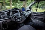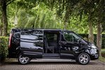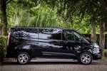 Fraaie Ford Transit Custom met dubbele cabine en 5 zitplaatsen. Deze auto is afkomstig van de eerste eigenaar. Lakkleur is Agate Black Metallic en het interieur is voorzien van zwart stof.