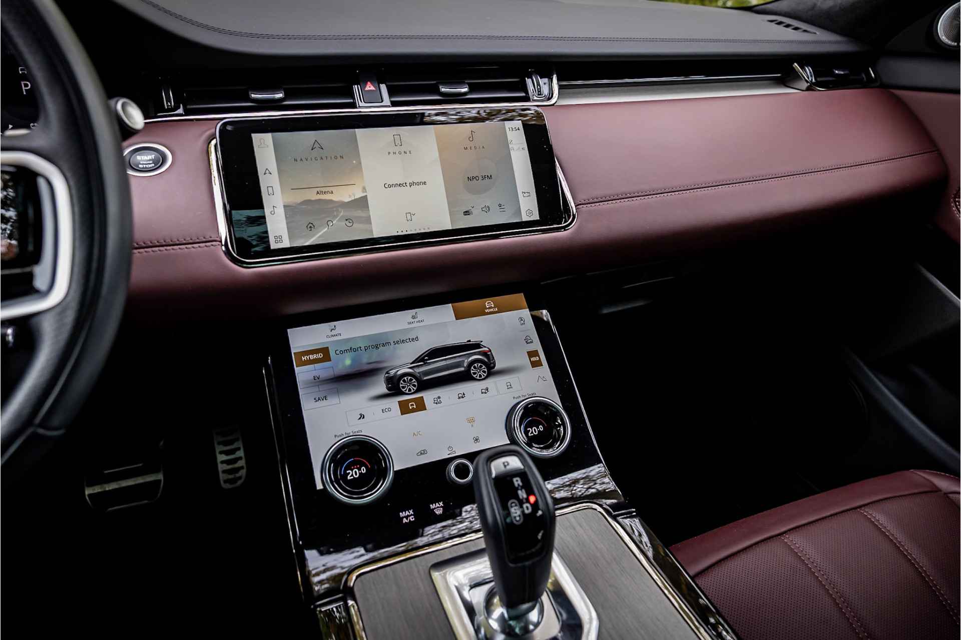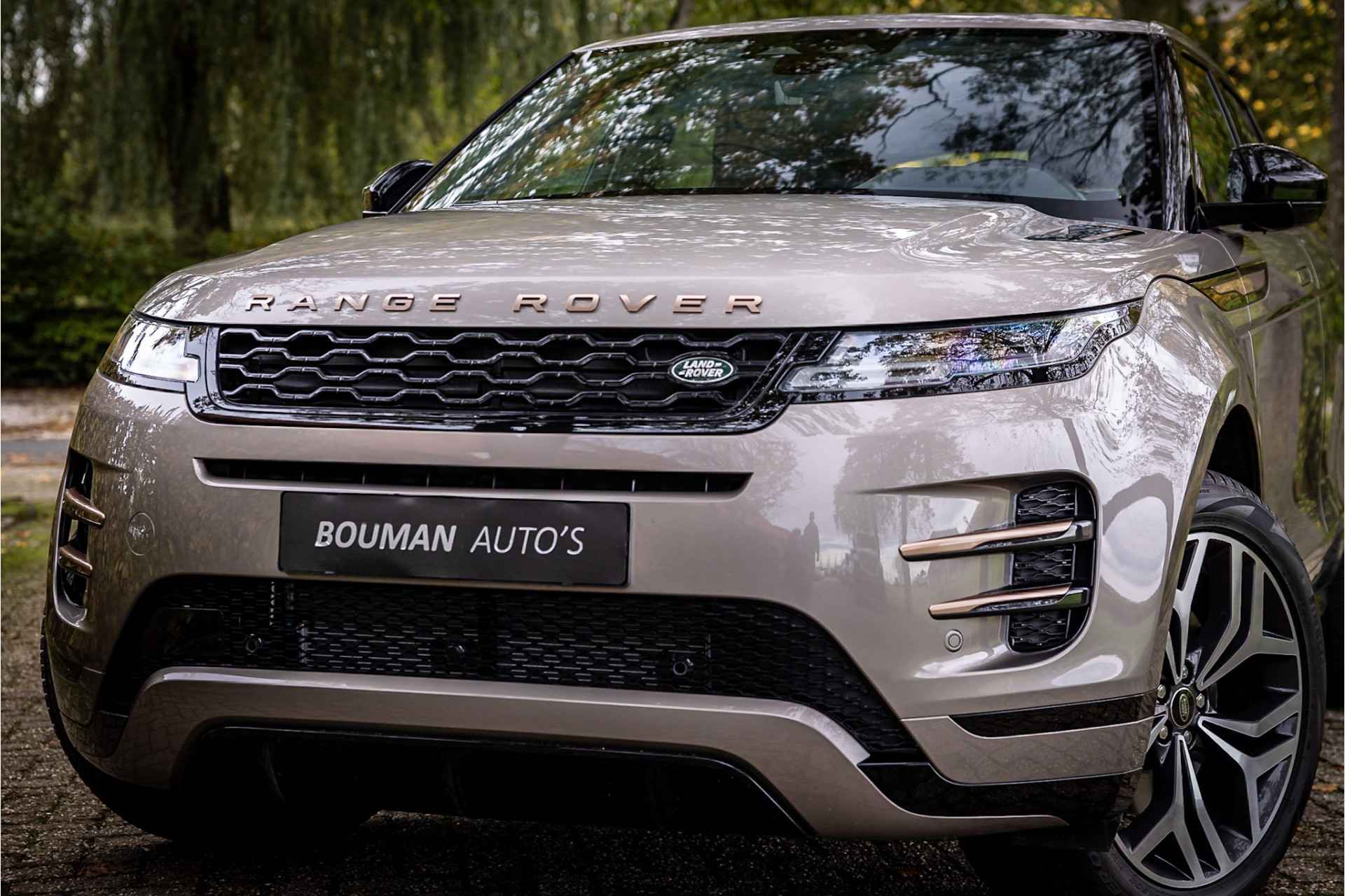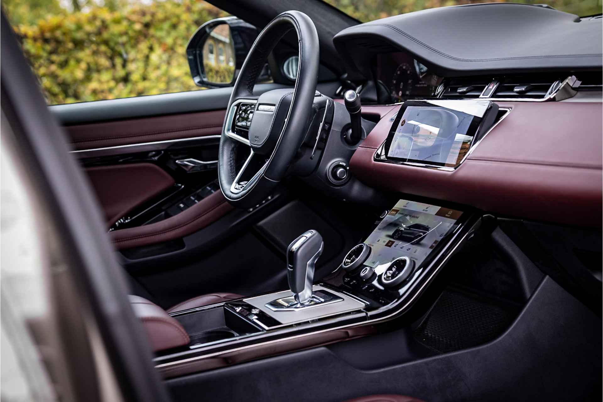 Deze Evoque is compleet uitgerust met een glazen panoramadak, stoelventilatie op voorstoelen, head up display, adaptive cruise control met stop en go functie, dode hoek assistent, Meridian Premium Surround audiosysteem met 750 Watt en 16 luidsprekers en subwoofer, 20" Satin Black velgen, elektrisch 14-voudig verstelbare stoelen met memory functie voor bestuurder, volledig digitaal dashboard, keyless entry en start, verkeersbordtekenherkenning, verwarmbare voorstoelen, verwarmbaar stuurwiel, verwarmbare zitplaatsen achterin, navigatiesysteem met touchscreen, bluetooth telefoonintegratie, LED mistlampen vooraan, elektrisch bedienbare achterklep, shadow aluminium interieurafwerking, elektrisch inklapbare buitenspiegels, automatische klimaatregeling met gescheiden zones.