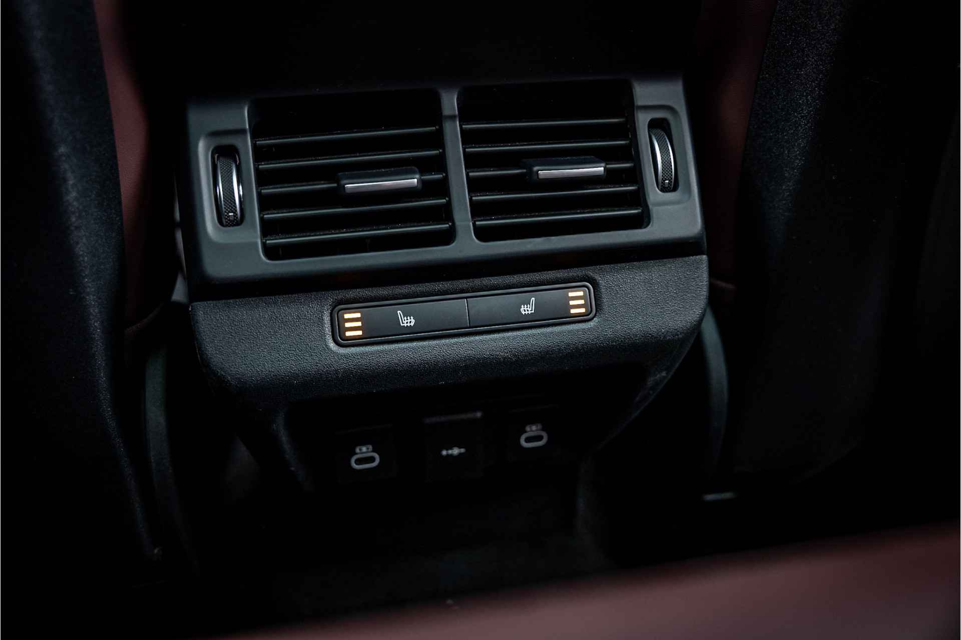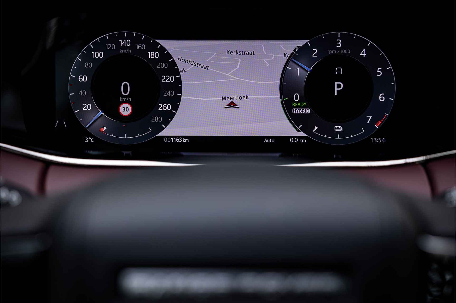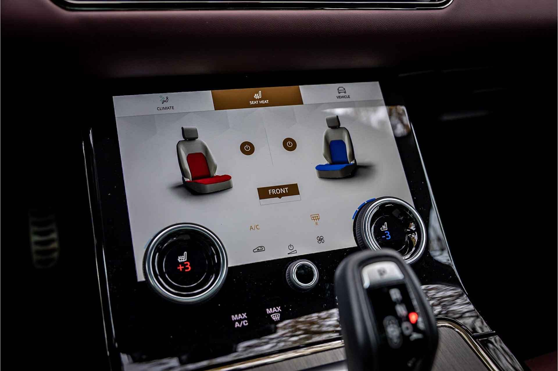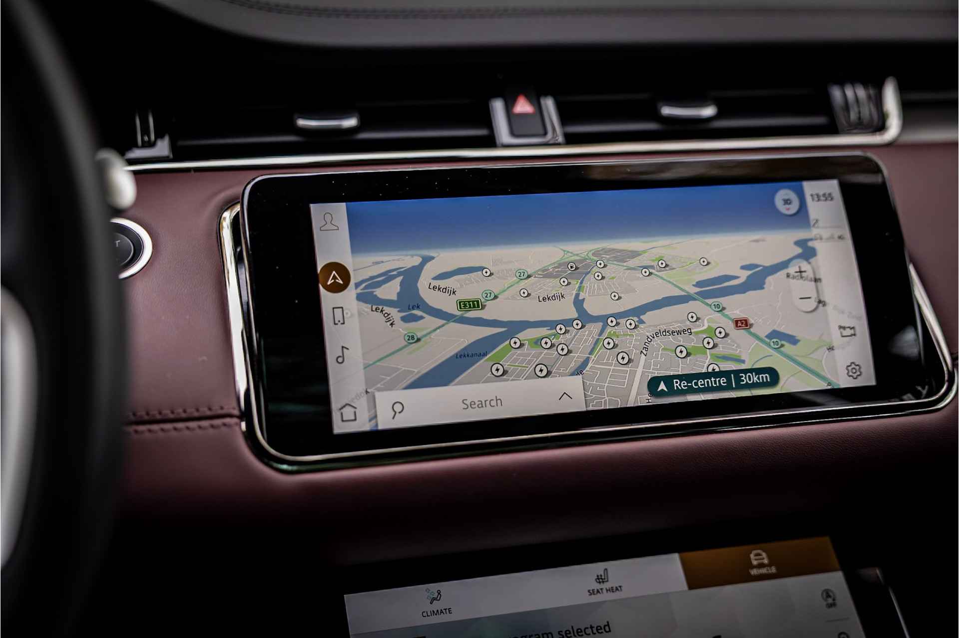 Deze Evoque is compleet uitgerust met een glazen panoramadak, stoelventilatie op voorstoelen, head up display, adaptive cruise control met stop en go functie, dode hoek assistent, Meridian Premium Surround audiosysteem met 750 Watt en 16 luidsprekers en subwoofer, 20" Satin Black velgen, elektrisch 14-voudig verstelbare stoelen met memory functie voor bestuurder, volledig digitaal dashboard, keyless entry en start, verkeersbordtekenherkenning, verwarmbare voorstoelen, verwarmbaar stuurwiel, verwarmbare zitplaatsen achterin, navigatiesysteem met touchscreen, bluetooth telefoonintegratie, LED mistlampen vooraan, elektrisch bedienbare achterklep, shadow aluminium interieurafwerking, elektrisch inklapbare buitenspiegels, automatische klimaatregeling met gescheiden zones.