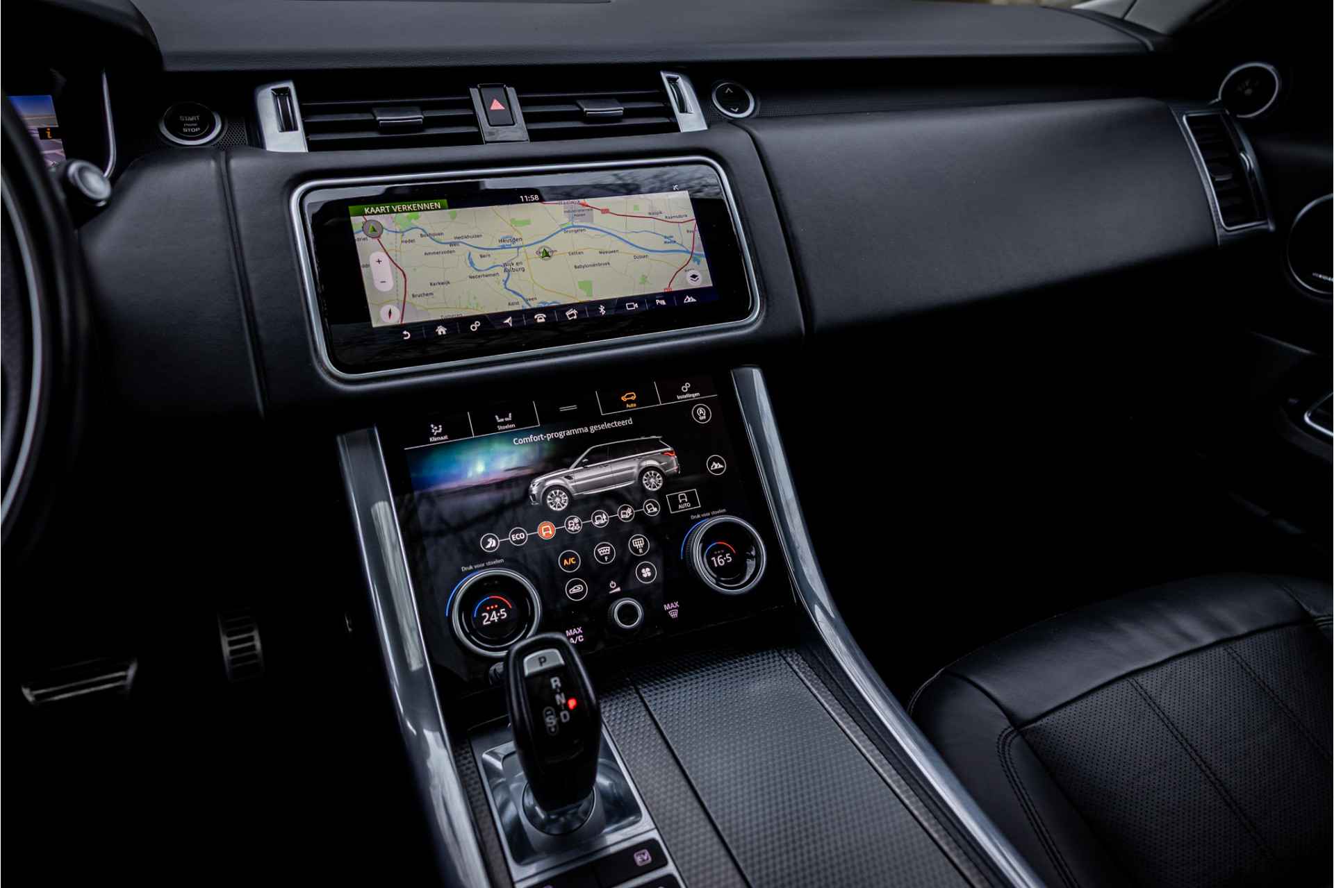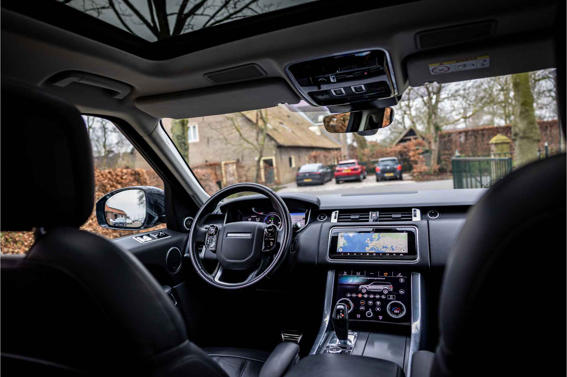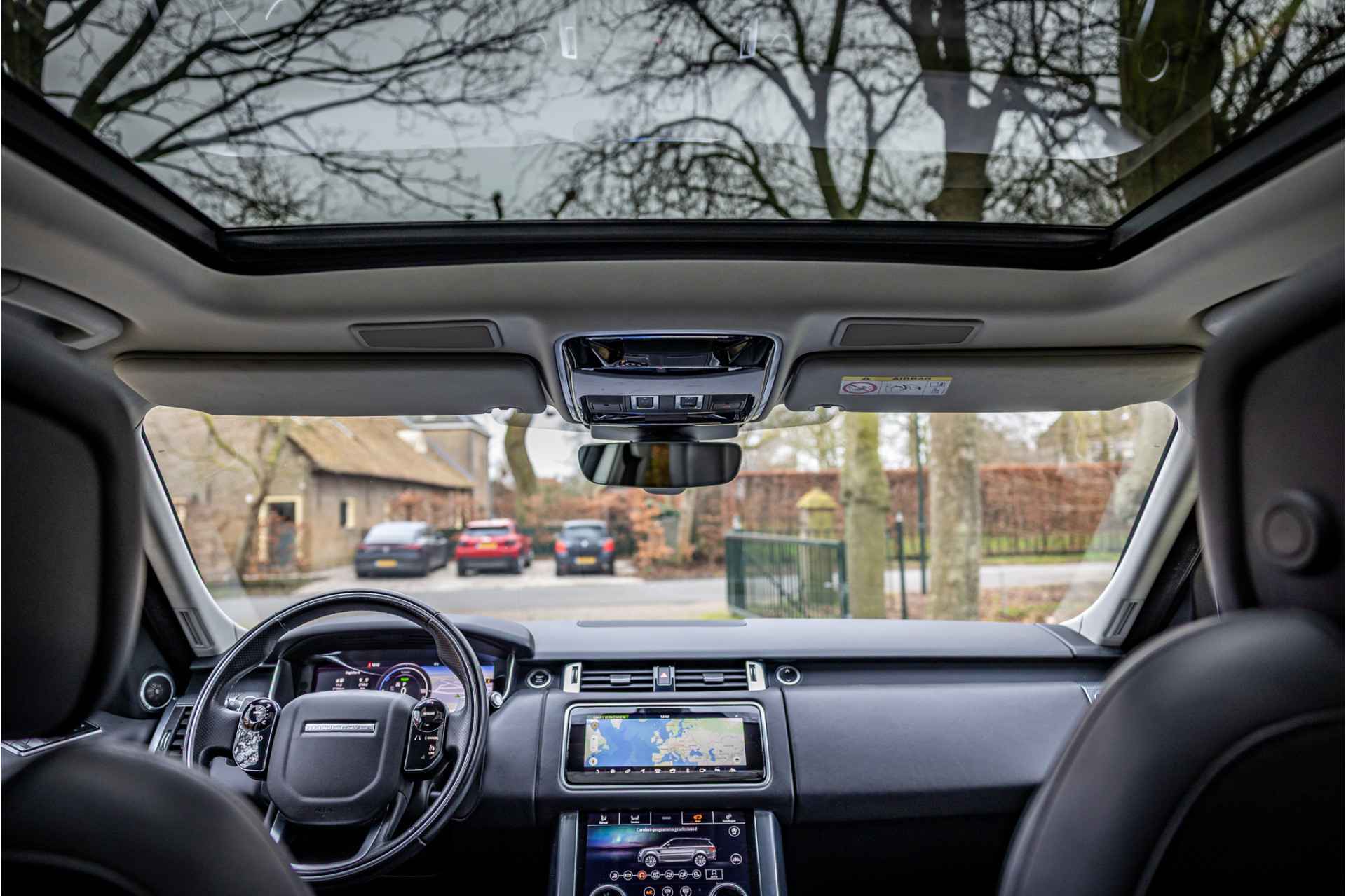 Deze Range Rover is compleet uitgerust met een glazen panoramadak met elektrisch bediend schuif/kanteldeel voorzijde, 21" Gloss Black velgen, Meridian Surround audiosysteem, LED koplampen met Adaptive Front Lighting, luchtvering met instelbare hoogteregeling, elektrisch verstelbare stoelen met memory functie, Apple Carplay / Android Auto, keyless entry en start, elektrisch bedienbare achterklep met voetsensor, privacy glas achter, rijstrookassistent, navigatiesysteem met touchscreen, verwarmbare voorstoelen, verwarmbare voorruit, bluetooth telefoonintegratie, elektrisch inklapbare buitenspiegels, verstelbare achterbank, automatische klimaatregeling met gescheiden zones en metallic lak.