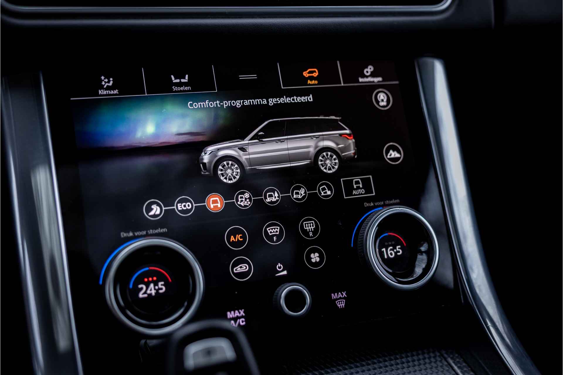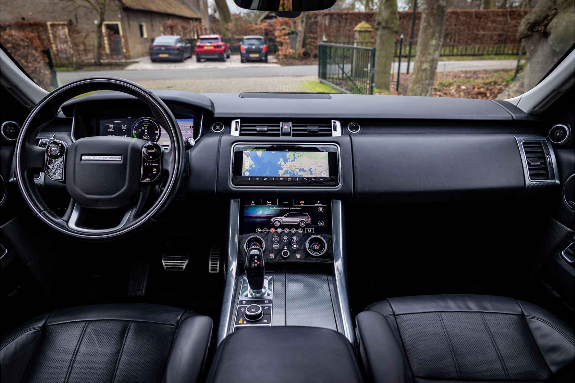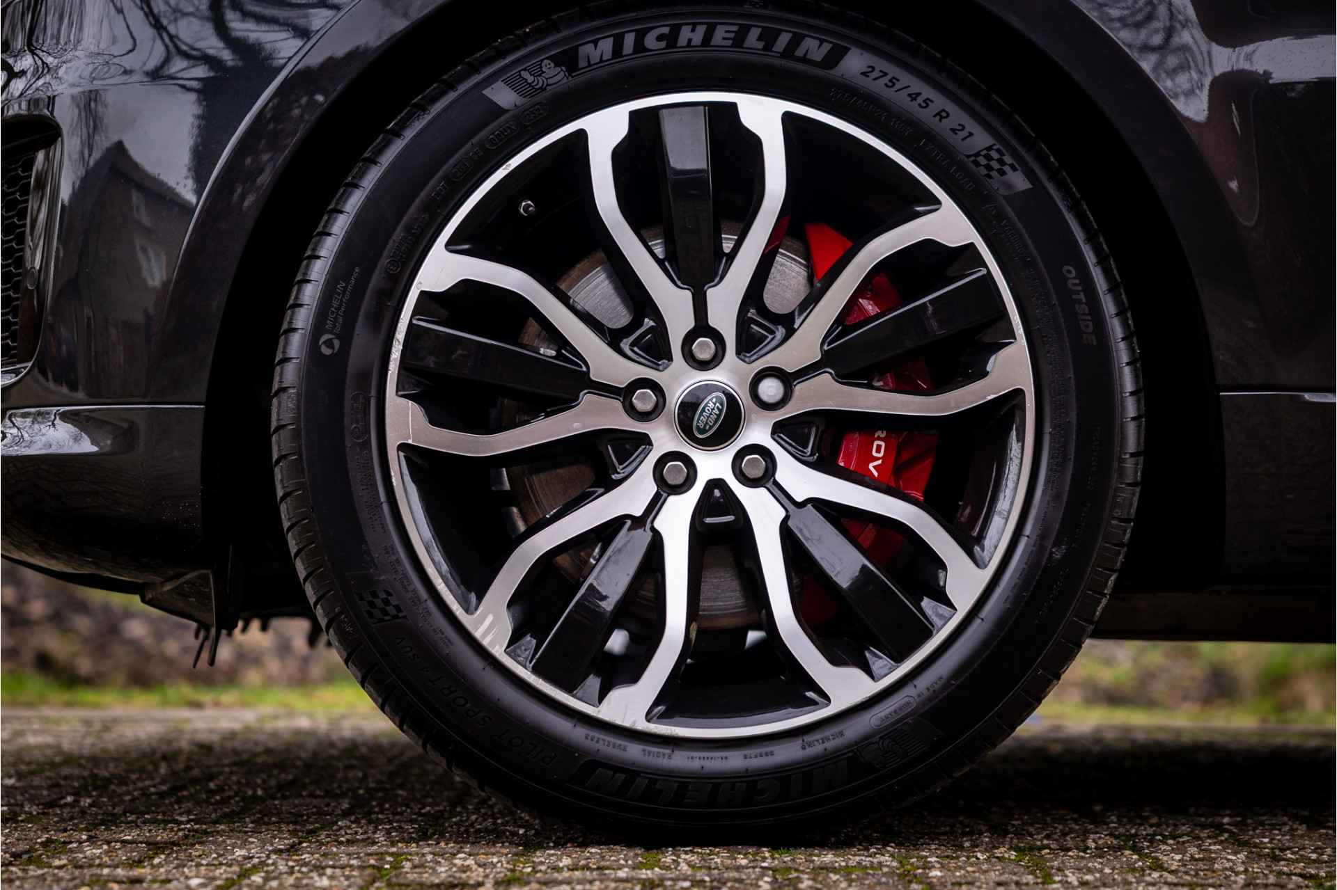 Deze Range Rover is compleet uitgerust met een glazen panoramadak met elektrisch bediend schuif/kanteldeel voorzijde, 21" Gloss Black velgen, Meridian Surround audiosysteem, LED koplampen met Adaptive Front Lighting, luchtvering met instelbare hoogteregeling, elektrisch verstelbare stoelen met memory functie, Apple Carplay / Android Auto, keyless entry en start, elektrisch bedienbare achterklep met voetsensor, privacy glas achter, rijstrookassistent, navigatiesysteem met touchscreen, verwarmbare voorstoelen, verwarmbare voorruit, bluetooth telefoonintegratie, elektrisch inklapbare buitenspiegels, verstelbare achterbank, automatische klimaatregeling met gescheiden zones en metallic lak.