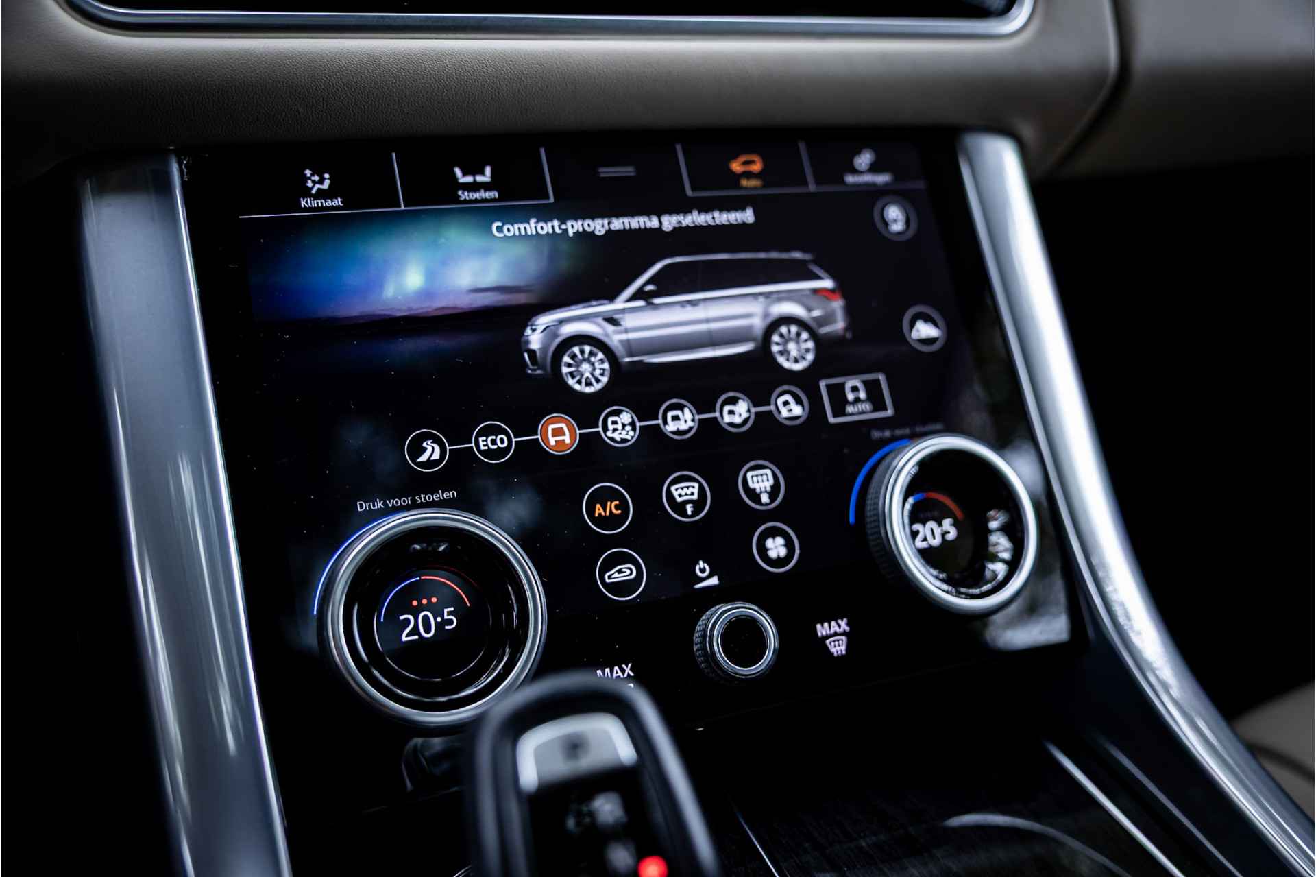 Deze Range Rover is compleet uitgerust met een glazen panoramadak met elektrisch bediend schuif/kanteldeel voorzijde, blind spot monitor dode hoek assistentie, 21" Gloss Black velgen, Meridian Surround audiosysteem, LED koplampen met Adaptive Front Lighting, luchtvering met instelbare hoogteregeling, elektrisch verstelbare stoelen met memory functie, Apple Carplay / Android Auto, DAB+ radio, keyless entry en start, elektrisch bedienbare achterklep met voetsensor, privacy glas achter, rijstrookassistent, navigatiesysteem met touchscreen, verwarmbare voorstoelen, verwarmbaar stuurwiel, verwarmbare voorruit, bluetooth telefoonintegratie, elektrisch inklapbare buitenspiegels, verstelbare achterbank, automatische klimaatregeling met gescheiden zones en ionisator voor luchtreiniging.