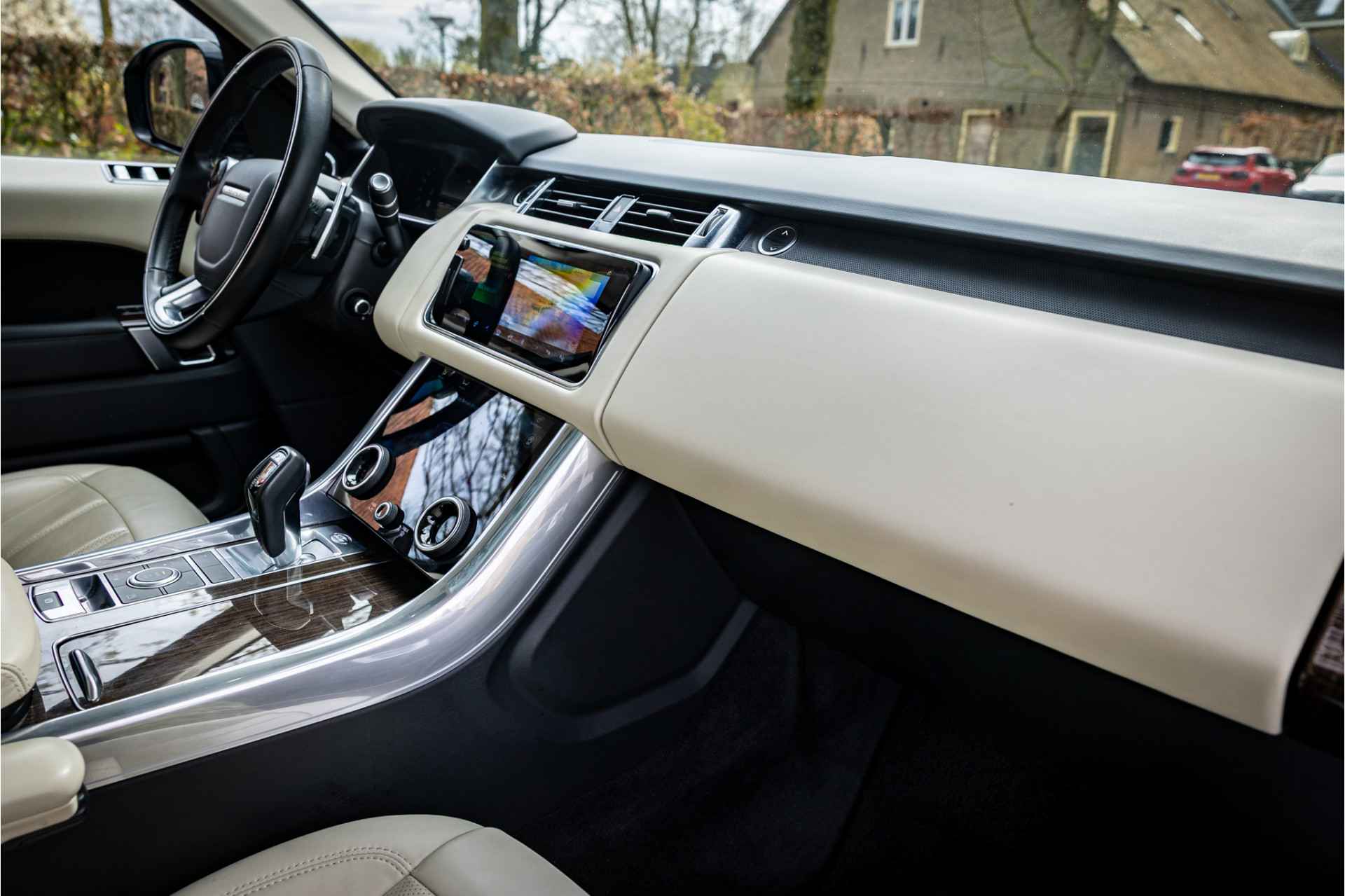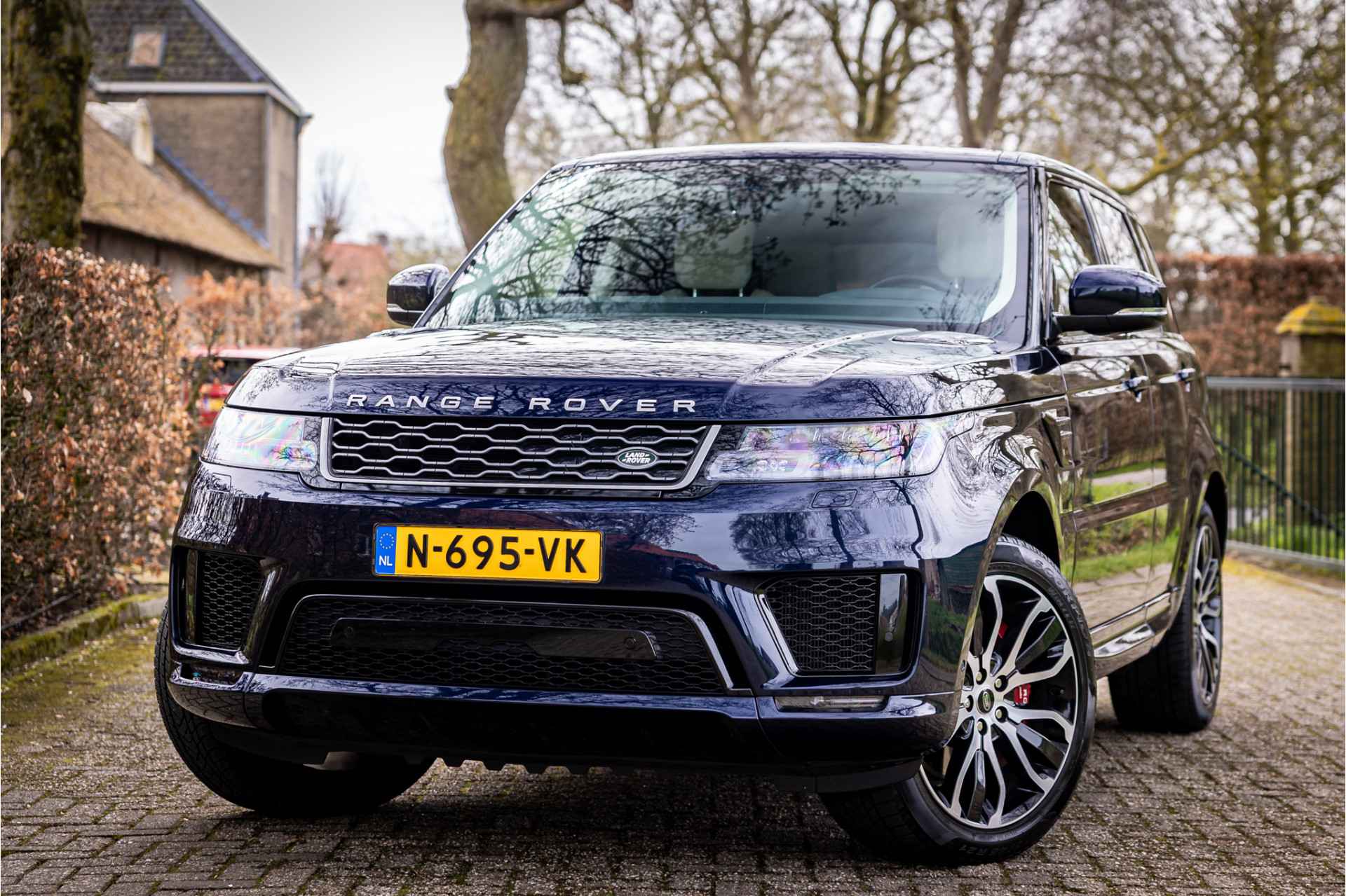 Fraaie Range Rover Sport HSE Dynamic Stealth met hybride aandrijflijn. Deze auto is nieuw in Nederland geleverd en volledig Land Rover dealer onderhouden. Lakkleur is Portofino Blue metallic, het interieur is bekleed met Ebony Ivory leder wat een stijlvolle combinatie maakt met het exterieur. De remklauwen zijn uitgevoerd in rood.