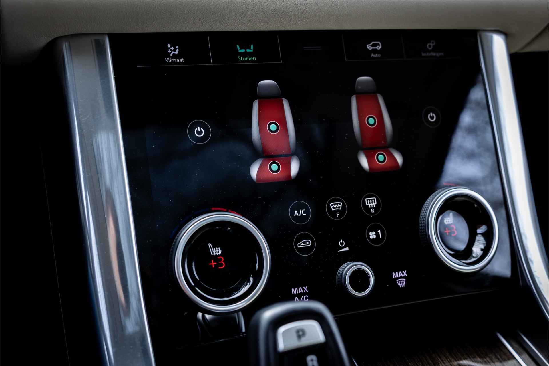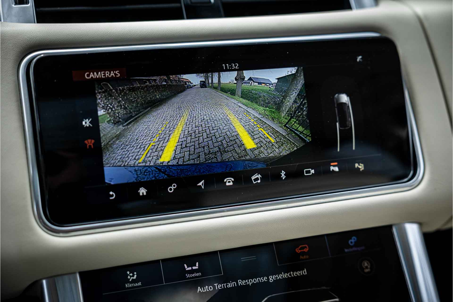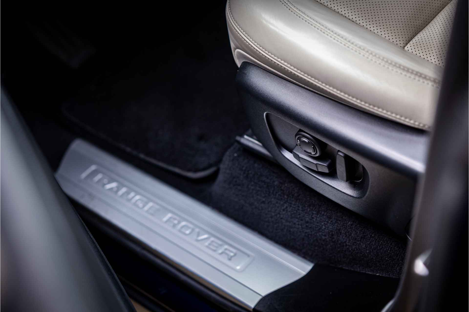 Deze Range Rover is compleet uitgerust met een glazen panoramadak waarbij het voorste deel geopend kan worden, adaptive cruise control met stop en go, Meridian Surround audiosysteem, 21" 9 Spoke Gloss Black velgen, dode hoek assistentie, elektrisch verstelbare stoelen met memory functie, 4 zone klimaatregeling met gescheiden regeling voor achterpassagiers, MatrixLED koplampen met adaptieve verlichting, Reverse Traffic Detection, keyless entry en start, verkeersbordtekenherkenning, navigatiesysteem met touchscreen, luchtvering met hoogteregeling, Apple Carplay en Android Auto, verwarmbare voorstoelen, verwarmbare voorruit, bluetooth telefoonintegratie, elektrisch inklapbare buitenspiegels, automatische klimaatregeling met gescheiden zones.