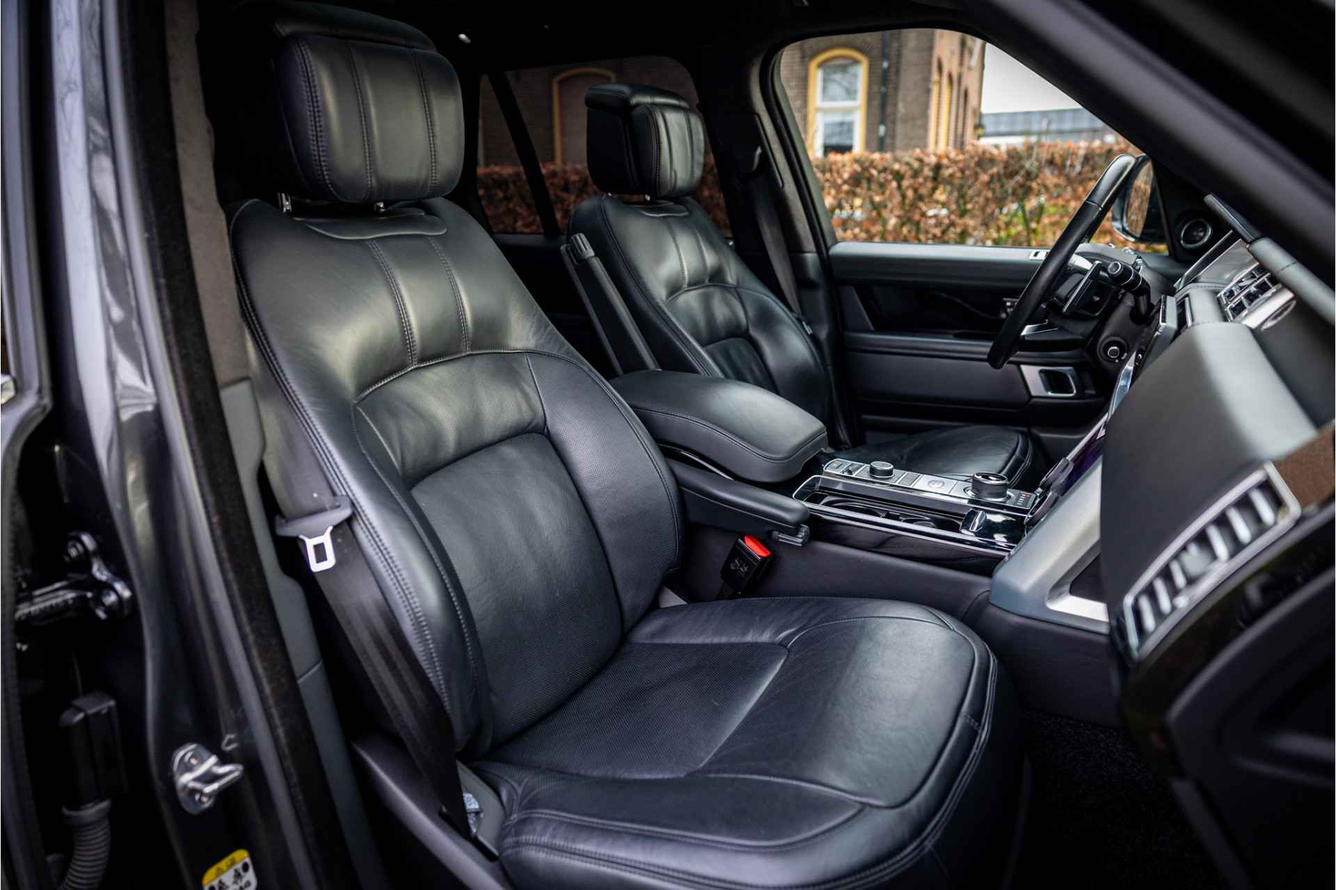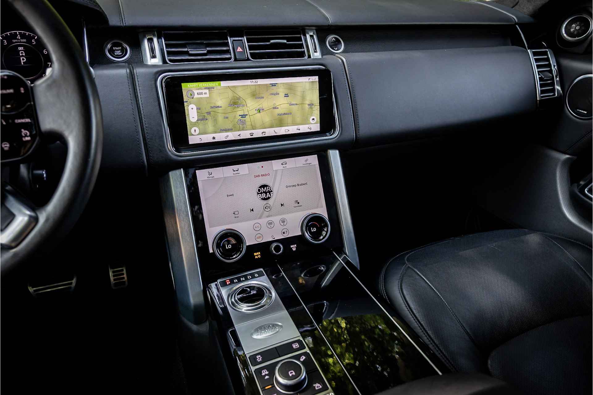Fraaie Range Rover Autobiography met hybride aandrijflijn in de meest complete uitvoering. Lakkleur is Carpathian Grey metallic, het interieur is bekleed met Ebony Black leder wat ook is doorgevoerd op het dashboard. De volledige interieurhemel is bekleed met alcantara.