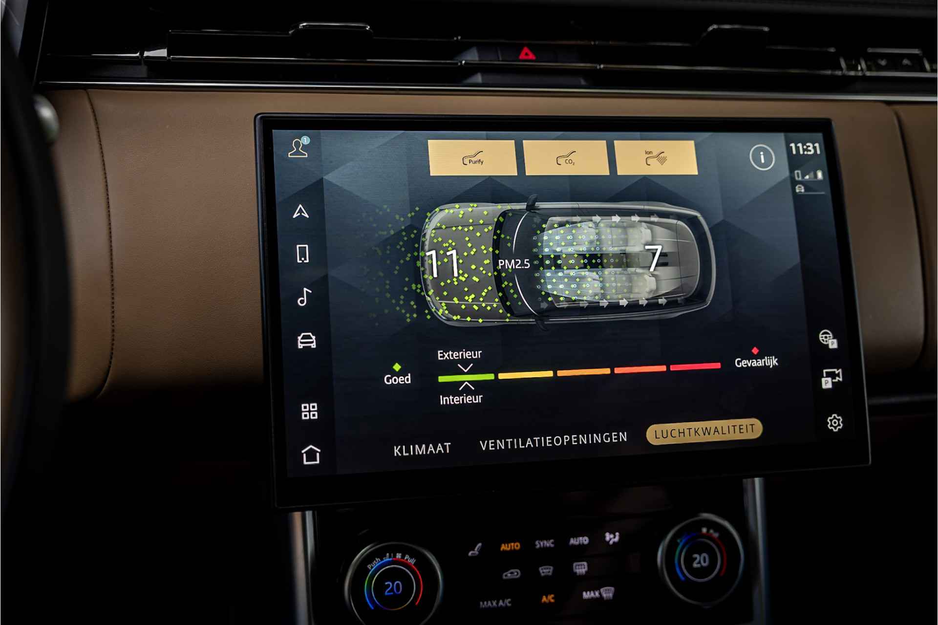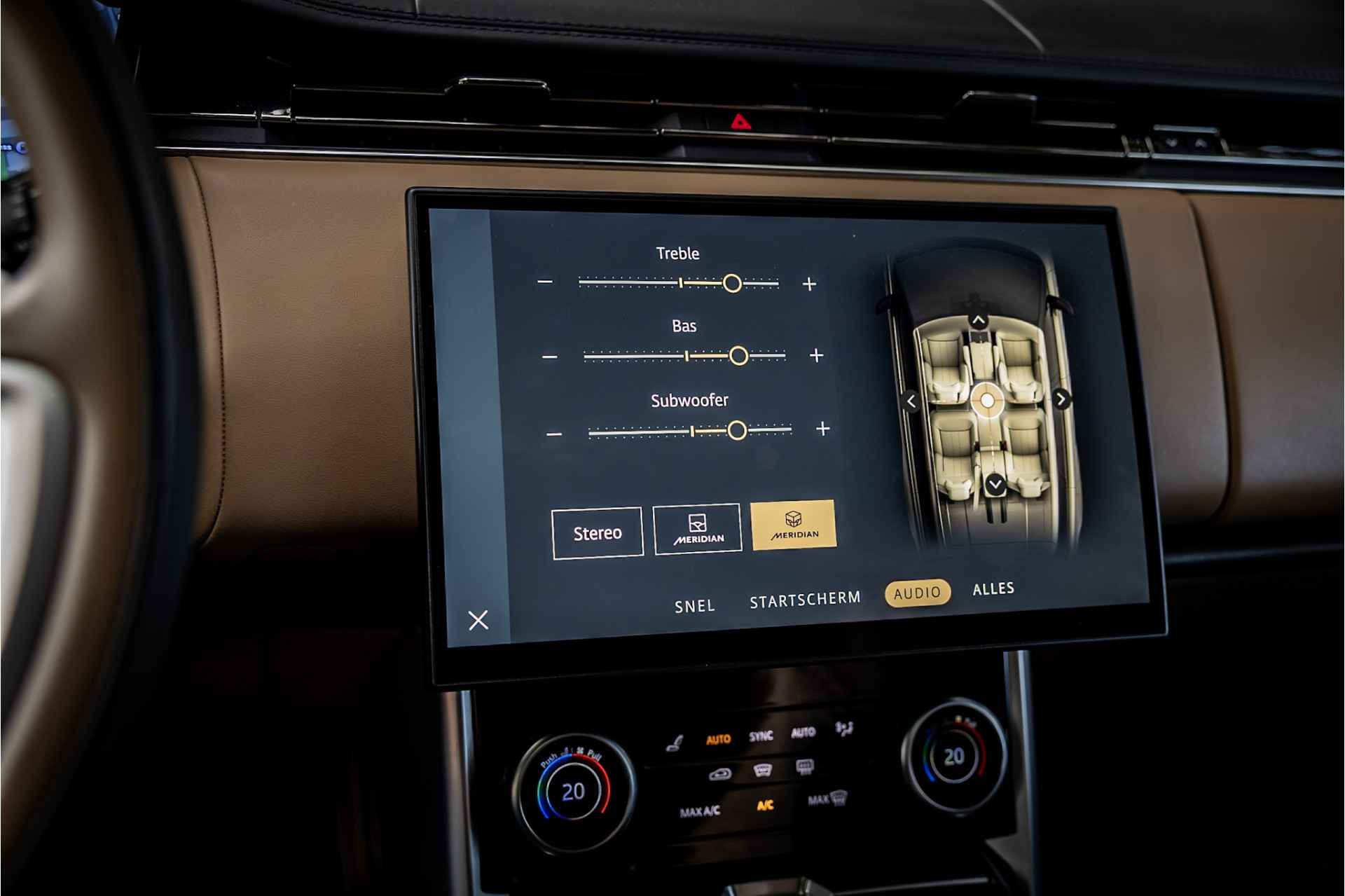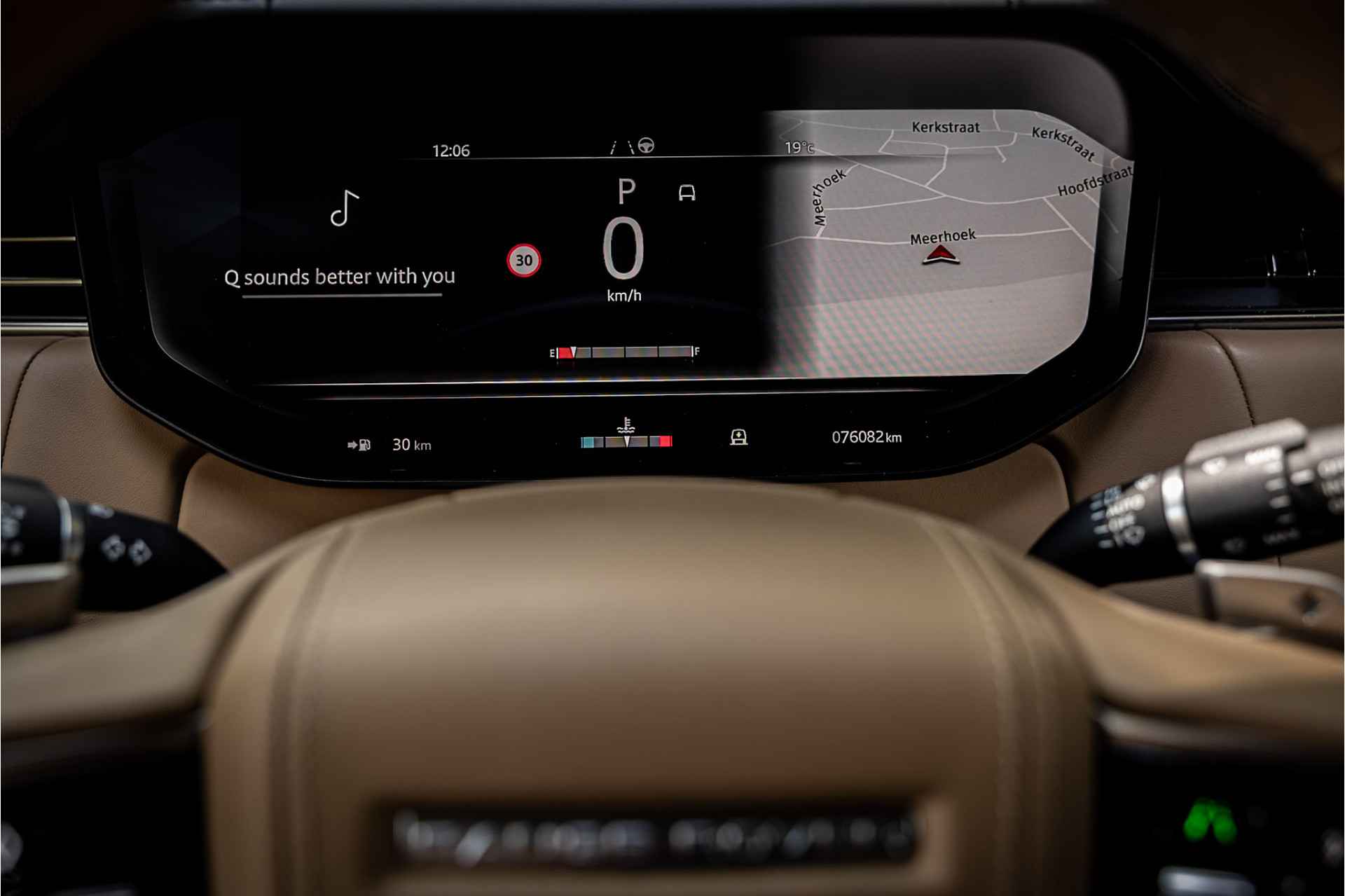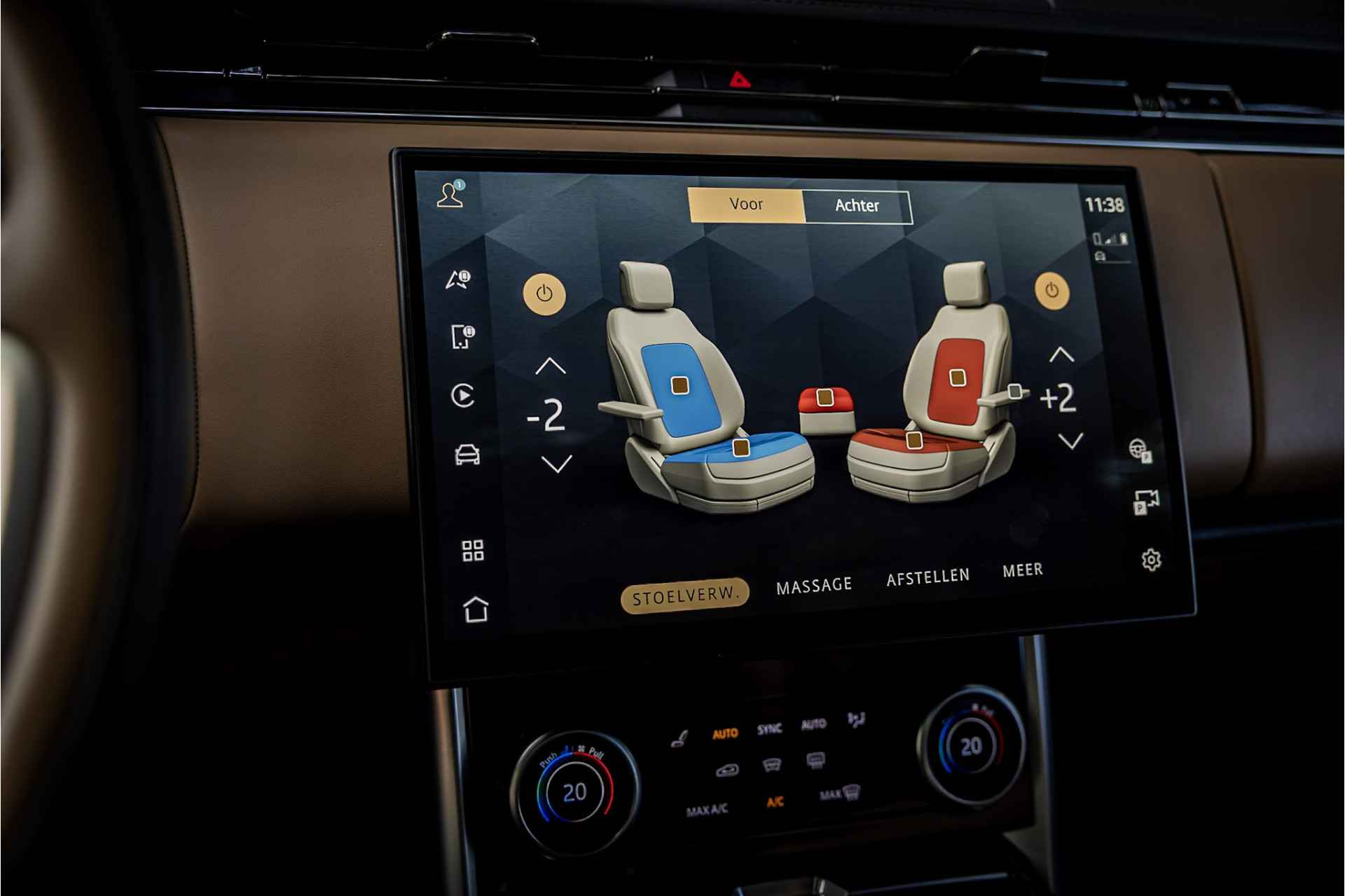 Deze Autobiography is compleet uitgerust met een glazen panoramadak waarbij het voorste deel geopend kan worden, Hot Stone massagefunctie op voorstoelen (uitgebreider dan de standaard massagefunctie), ventileerbare voor- en achterstoelen, koelvak in middenconsole, Meridian Signature Surround audiosysteem met 1.600 W en 34 luidsprekers en Active Noise Cancellation, 23" Styling 1075 Diamond Turned Finish Dark Grey velgen, Towing Pack met elektrisch uitklapbare trekhaak met 3.500 kg trekgewicht en Advanced Tow Assist waarbij de auto zelfstandig een trailer achteruit kan manouvreren zonder dat u als bestuurder het stuurwiel hoeft te gebruiken, vierwielbesturing met actief meesturende achterwielen, 24--voudig elektrisch verstelbare voorstoelen, Executive Class Comfort Seating achterin met memoryfunctie en elektrisch verstelbare stoelen met omhoogklapbare beensteun en 8" Rear Seat Touchscreen Controller in middenarmsteun, elektrisch neerklapbare achterstoelen, verwarmbare middenarmsteun en armsteunen in portieren, adaptive cruise control met steering assist, soft door close, 3D surround camera, uitgebreide ambianceverlichting interieur, luchtvering en automatische hoogteregeling, dode hoek assistentie, adaptieve verlichting, Reverse Traffic Detection, keyless entry en start, verkeersbordtekenherkenning, DAB tuner, akoestisch en gelaagd privacy glas achter, Apple Carplay en Android Auto, navigatiesysteem met touchscreen, verwarmbare voorstoelen en zitplaatsen achter, verwarmbaar stuurwiel, verwarmbare voorruit, warmtewerende voorruit, bluetooth telefoonintegratie, elektrisch inklapbare buitenspiegels, automatische klimaatregeling met vier gescheiden zones.