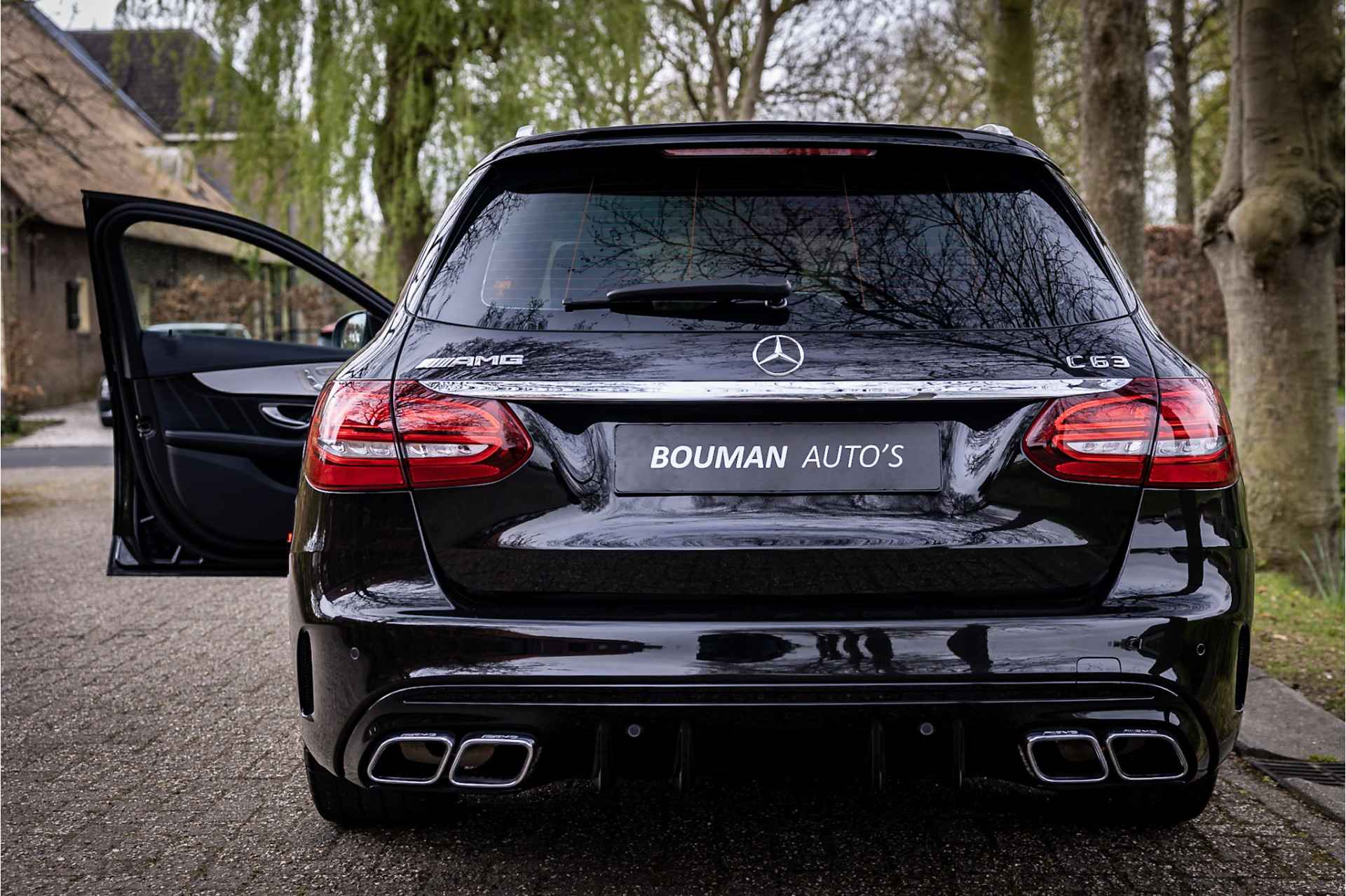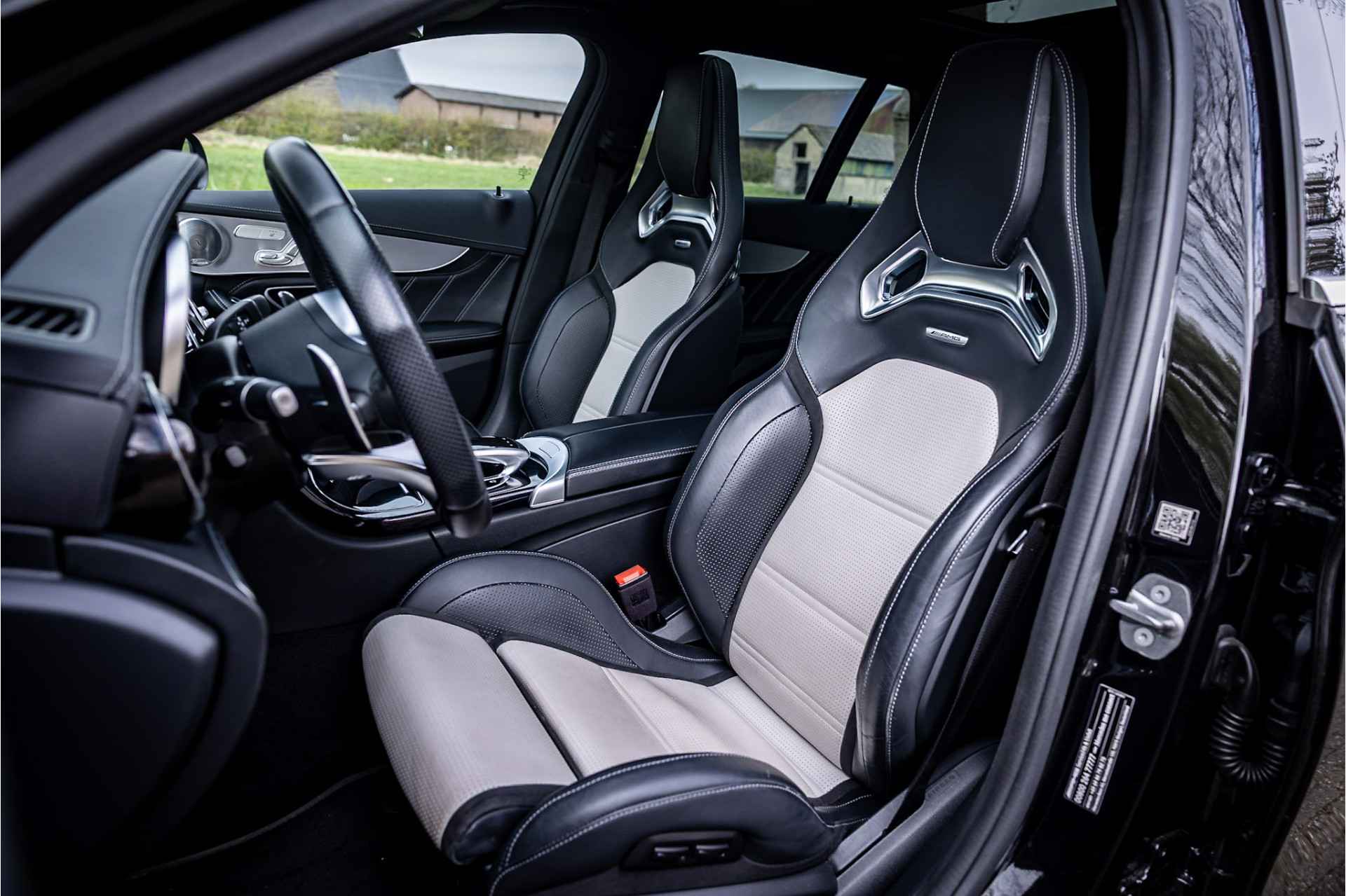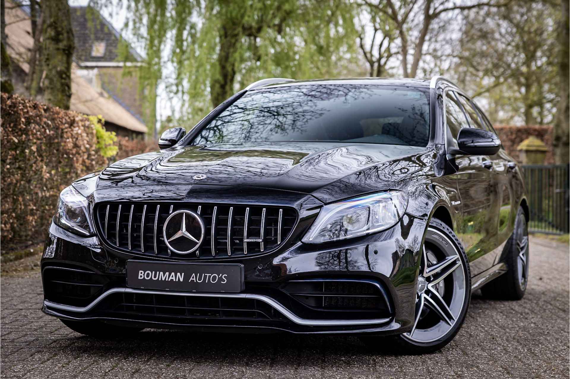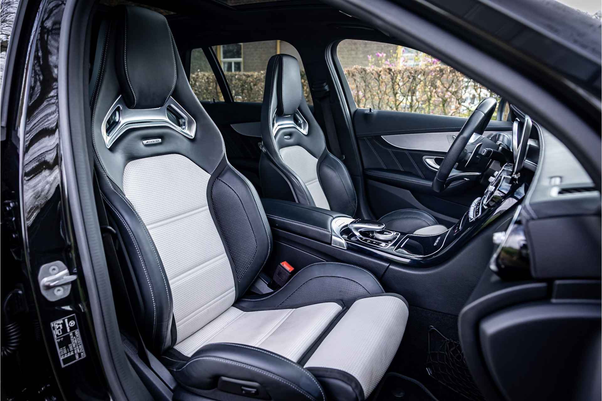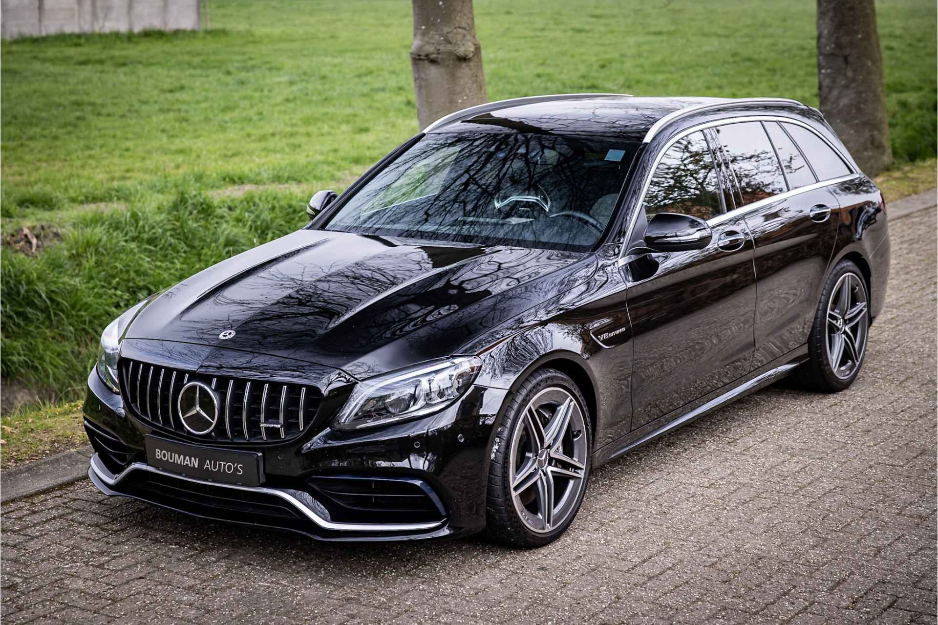 Prachtige Mercedes C63 AMG Estate in zeer complete uitrusting. Lakkleur is Obsidian Black Metallic en het interieur is voorzien van AMG Performance bekleed met nappaleder in platina pearl met zwart. De hemelbekleding is uitgevoerd in donker antraciet. Het dashboard en de portieren zijn voorzien van een zwarte lederovertrek.
