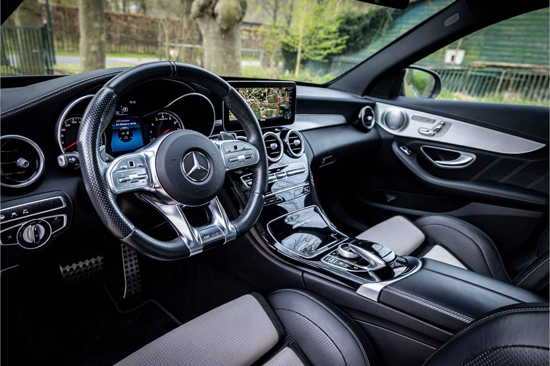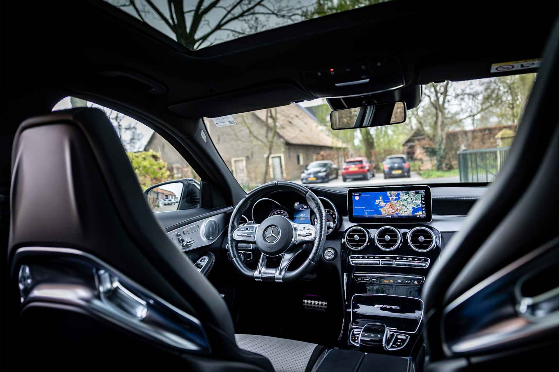 Tot de uitrusting behoort distronic adaptieve cruise control, glazen panoramadak, Burmester Surround audio systeem, 19" AMG velgen, elektrisch verstelbare voorstoelen met geheugenfunctie, keyless go en entry, actieve spoorassistent, dode hoek assistent, multibeam LED koplampen met adaptieve grootlichtassistent, verwarmbare voorstoelen, AMG Performance stuurwiel, extra getint glas, ambienteverlichting interieur, DAB tuner, Apple Carplay en Android Auto, bluetooth connectiviteit, multifunctionele telefonie, media interface, elektrisch inklapbare buitenspiegels, achteruitrijcamera, parkeersensoren voor achter met parkeerassistent, metallic lak, verwarmbare ruitensproeiers, neerklapbare achterbank, automatische klimaatregeling met gescheiden zones en multimedia aansluitingen.