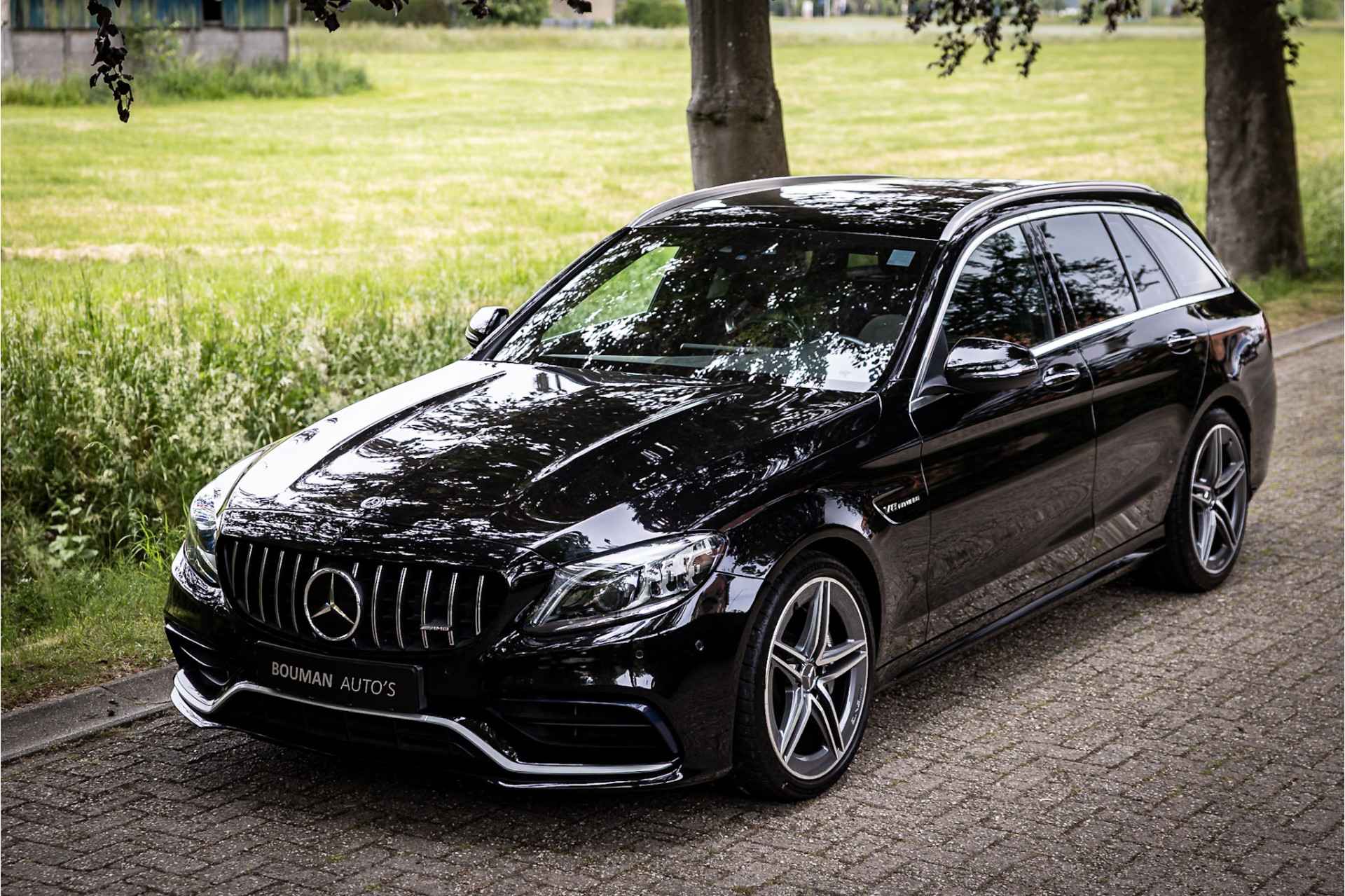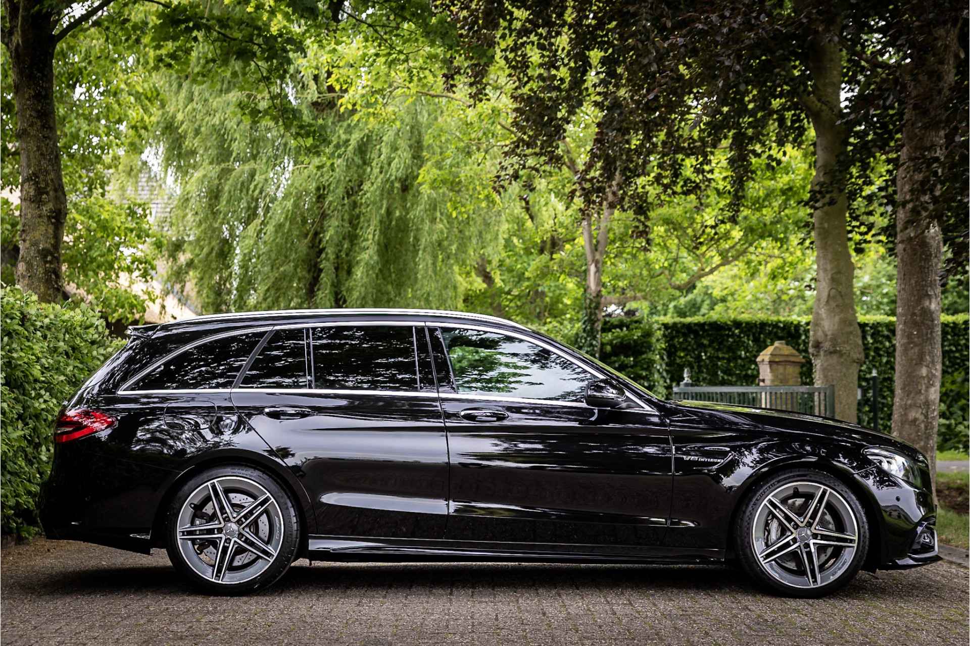 Prachtige Mercedes C63 AMG Estate in zeer complete uitrusting. Lakkleur is Obsidian Black Metallic en het interieur is voorzien van AMG Performance bekleed met nappaleder in platina pearl met zwart. De hemelbekleding is uitgevoerd in donker antraciet. Het dashboard en de portieren zijn voorzien van een zwarte lederovertrek.