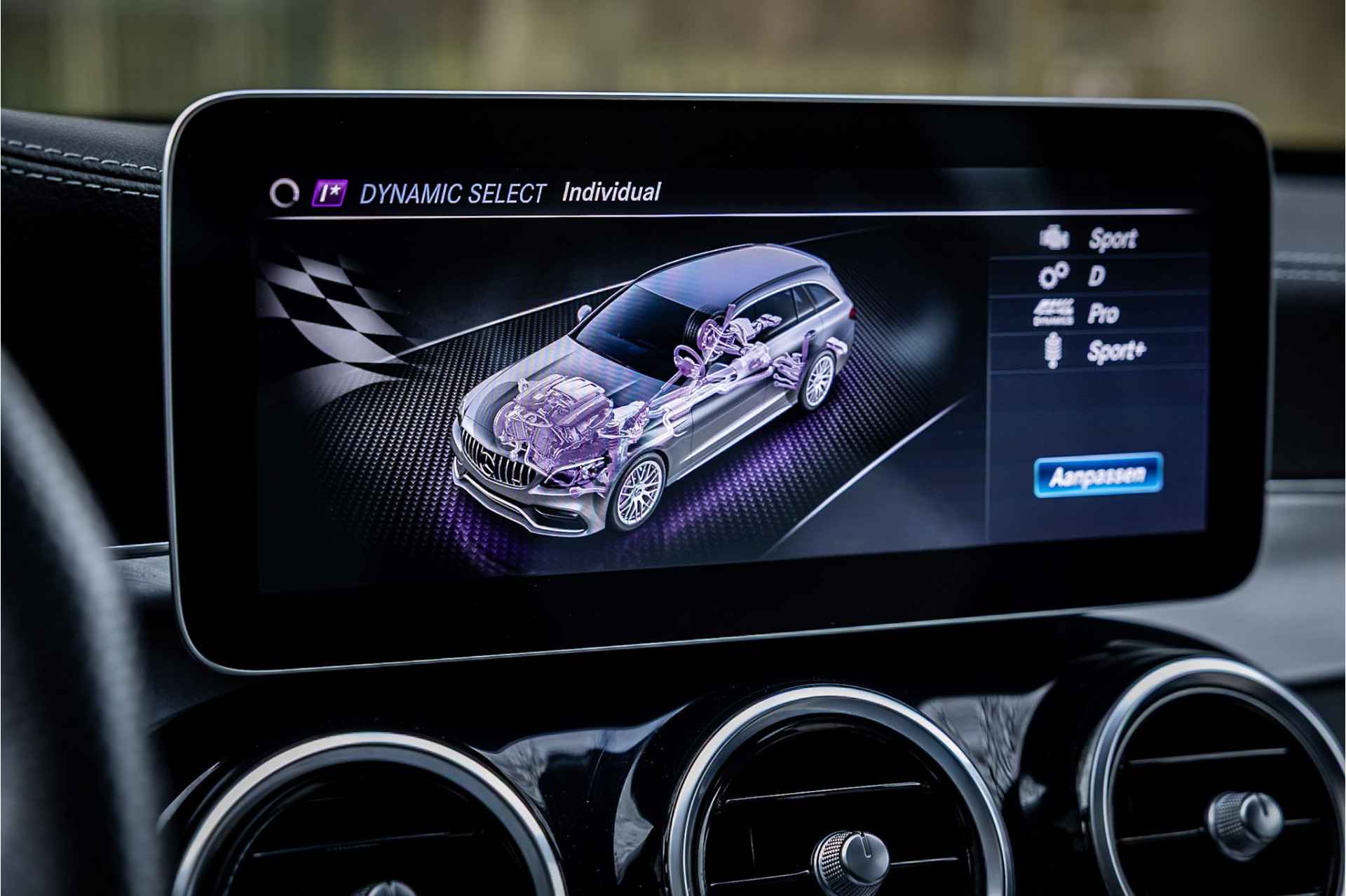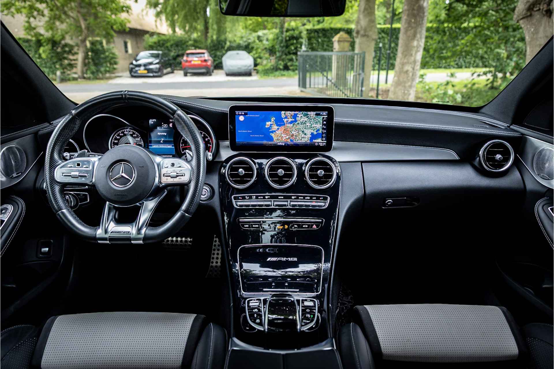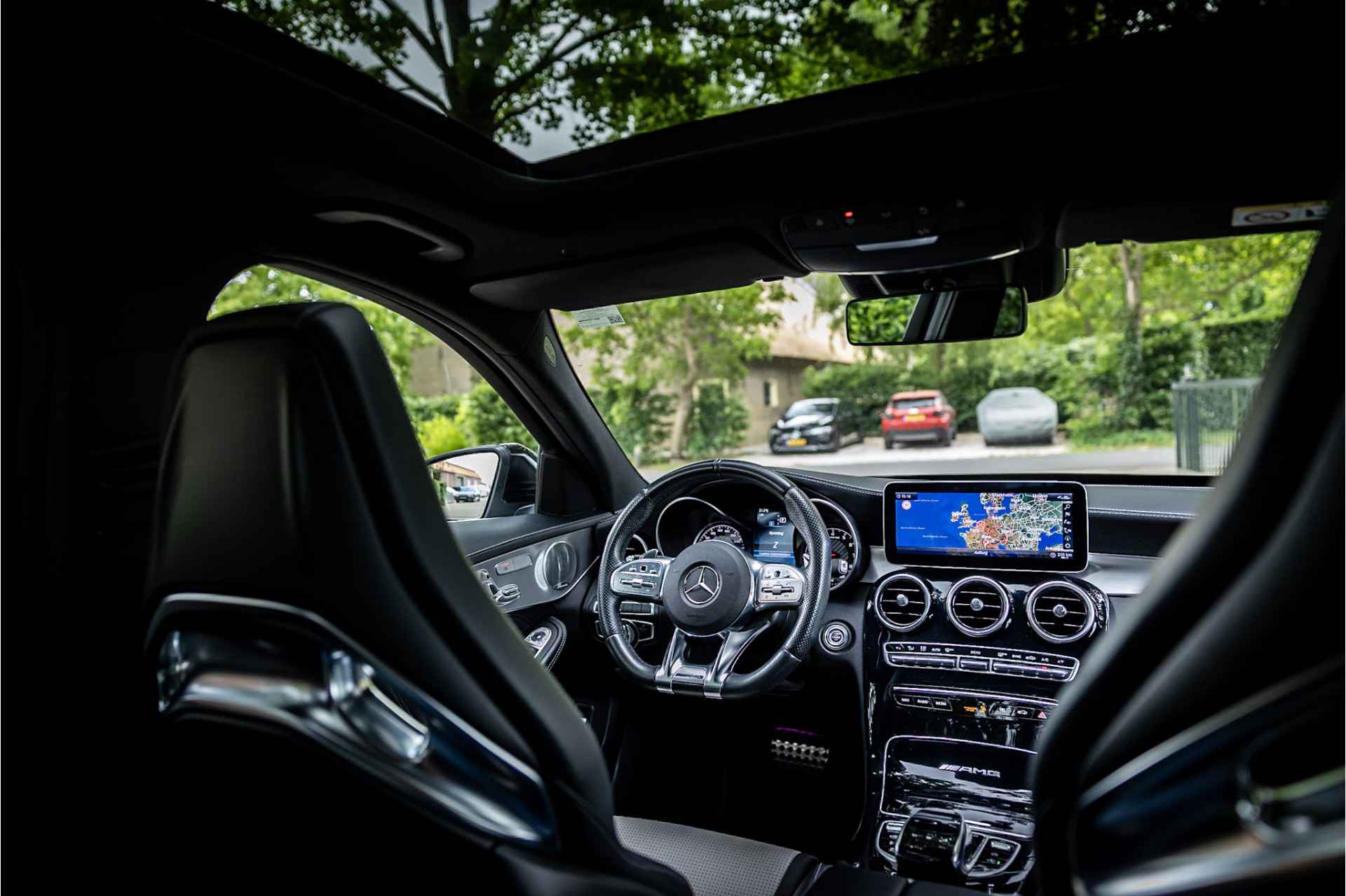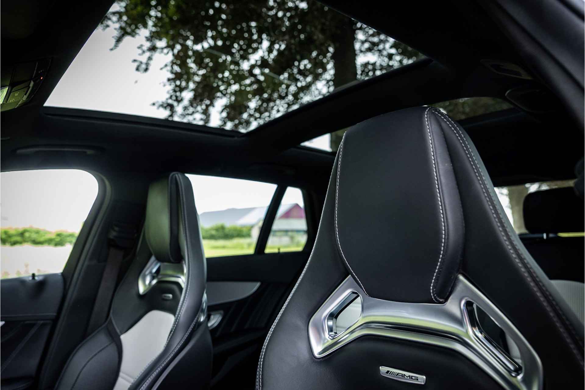 Tot de uitrusting behoort distronic adaptieve cruise control, glazen panoramadak, Burmester Surround audio systeem, 19" AMG velgen, elektrisch verstelbare voorstoelen met geheugenfunctie, keyless go en entry, actieve spoorassistent, dode hoek assistent, multibeam LED koplampen met adaptieve grootlichtassistent, verwarmbare voorstoelen, AMG Performance stuurwiel, extra getint glas, ambienteverlichting interieur, DAB tuner, Apple Carplay en Android Auto, bluetooth connectiviteit, multifunctionele telefonie, media interface, elektrisch inklapbare buitenspiegels, achteruitrijcamera, parkeersensoren voor achter met parkeerassistent, metallic lak, verwarmbare ruitensproeiers, neerklapbare achterbank, automatische klimaatregeling met gescheiden zones en multimedia aansluitingen.