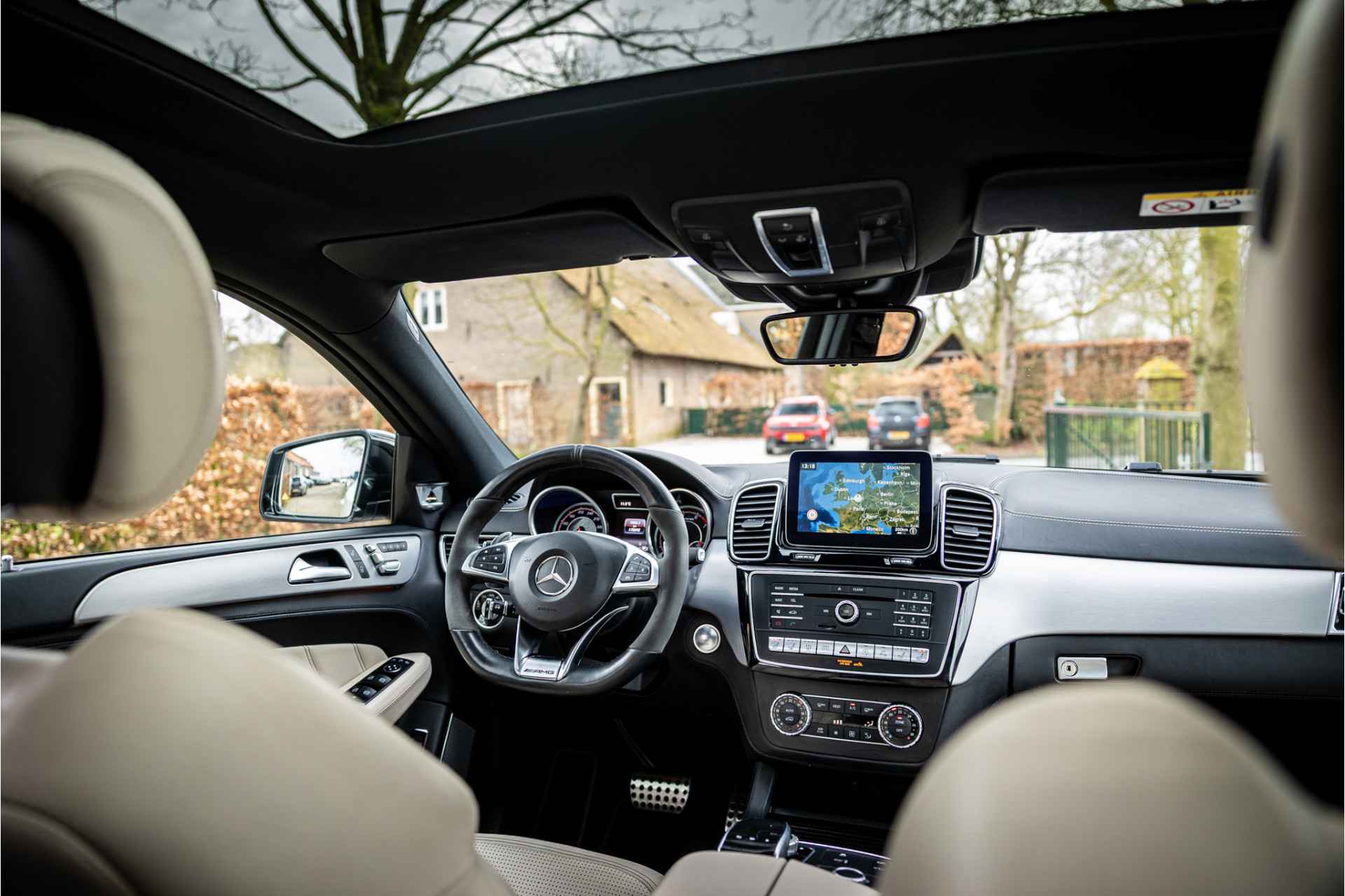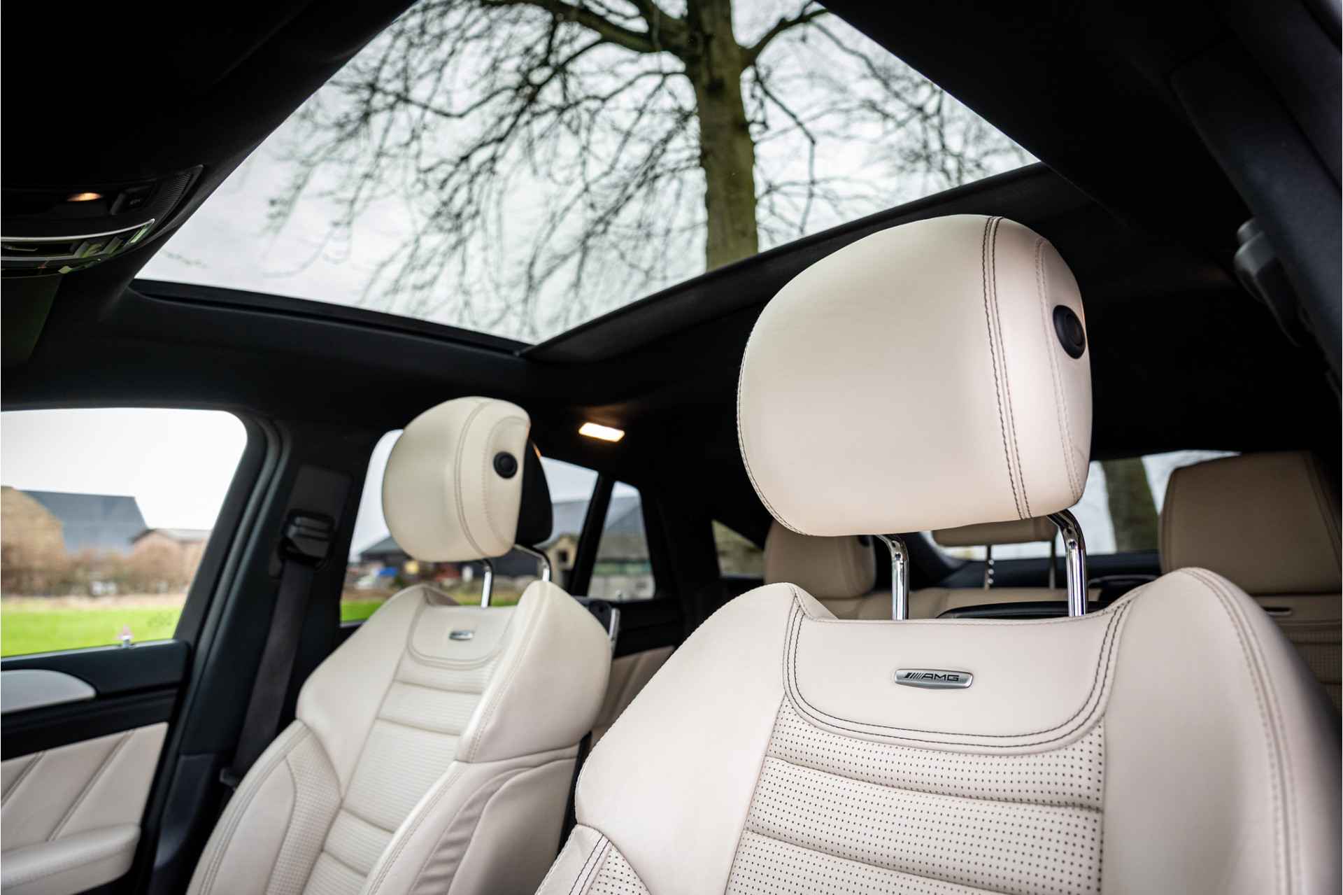 Tot de uitrusting behoort Bang & Olufsen surround audiosysteem, entertainment met DVD schermen voor achterpassagiers, massagefunctie op voorstoelen, stoelventilatie op voorstoelen, AMG sportuitlaatsysteem, AMG Drivers Package met verhoogde topsnelheid op 280 km/h, Airmatic body control (luchtvering), standverwarming (voorverwarming) met afstandsbediening, bekerhouders met koeling en verwarming, advanced distronic adaptieve cruise control, gelaagd veiligheidsglas voor voorste zijruiten (VSG), multibeam LED koplampen met adaptieve grootlichtassistent, elektrisch verstelbare voorstoelen, zender voor garagedeuropener geïntegreerd, dode hoek assistent, 22" AMG styling velgen, glazen panoramadak, Comand online navigatie met verkeerstekenherkenning, DAB tuner, Apple Carplay en Android Auto, 360 graden camera en achteruitrijcamera, night pakket, diefstalbeveiligingspakket, buitenspiegels elektrisch inklapbaar, verwarmbare voorstoelen, verwarmbare achterbank, bluetooth telefoonvoorbereiding met audio streaming, lendesteunen elektrisch verstelbaar, actieve parkeerassistent, ambienteverlichting interieur, extra getint glas achter, automatische klimaatregeling met 3 gescheiden zones, metallic lak en multimedia aansluitingen.