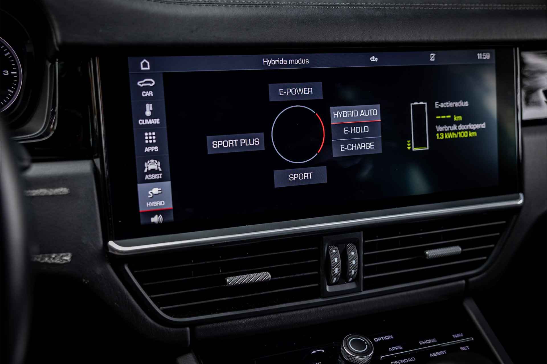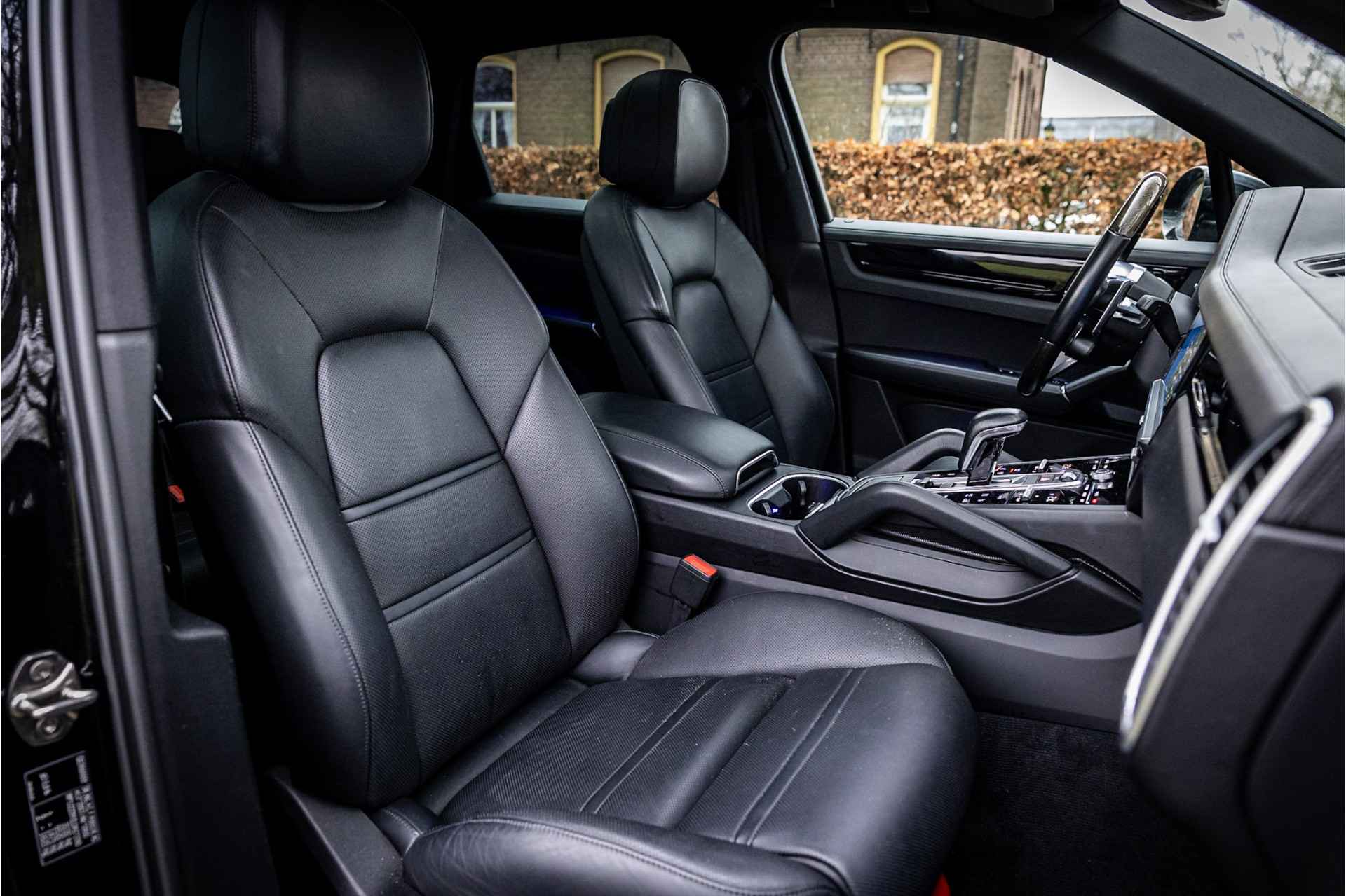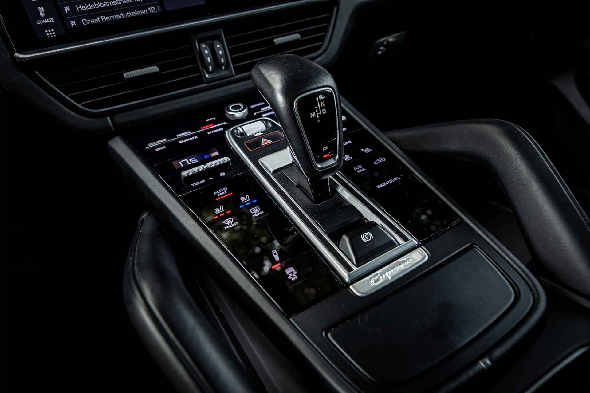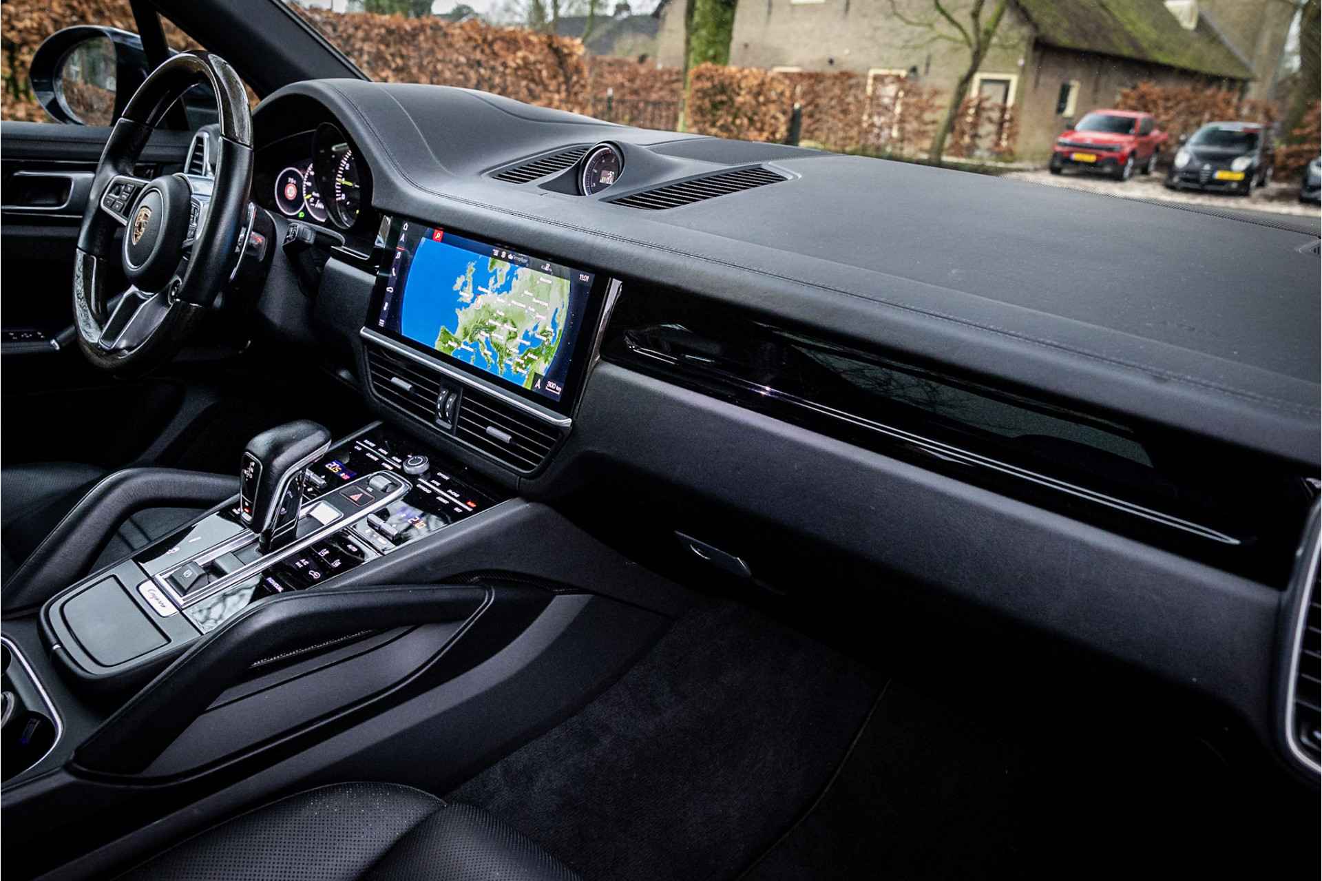Fraaie Porsche Cayenne Hybride met een zeer volledige uitrusting. Deze auto is origineel in Duitsland geleverd en als demo naar Nederland gekomen. Lakkleur is Schwarz en het interieur is voorzien van 14-wegs adaptieve comfortstoelen bekleed met zwart leder. De bovenzijde van het dashboard en portieren is afgewerkt met zwart leder.