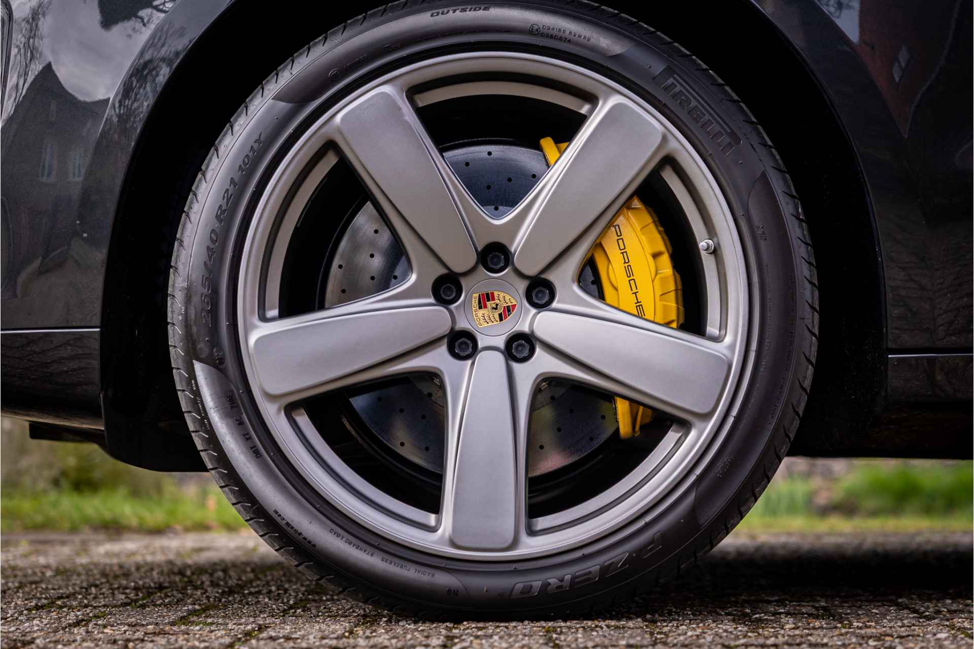 Tot de uitrusting van deze auto behoort Porsche Ceramic Composite Brake keramisch remsysteem (PCCB) t.w.v. 8.482 euro, glazen panoramadak, 18-wegs adaptieve sportstoelen, stoelventilatie op voorstoelen, Bose surround audio, PASM luchtvering, adaptive cruise control inclusief Porsche Active Safe, sportuitlaatsysteem met ronde sporteindpijpen in zwart, 21" Sport Classic wiel, LED koplampen met PDLS+, Porsche entry & drive keyless, memory functie voor bestuurder en passagier, elektrisch wegklapbare trekhaak, kompas op dashboard, achteruitrijcamera, bluetooth telefoonintegratie, stuurbekrachtiging plus, navigatiesysteem met touchscreen, DAB ontvanger, verkeersborddetectie, verwarmbare voorstoelen, verwarmbaar stuurwiel, multimedia aansluitingen, elektrisch bedienbare achterklep, buitenspiegels in sport design, metallic lak, automatische klimaatregeling met gescheiden zones, automatisch dimmende spiegels, klasse 3 en klasse 5 alarmsysteem, licht comfort pakket, zij-airbags achter en 75 liter brandstoftank.