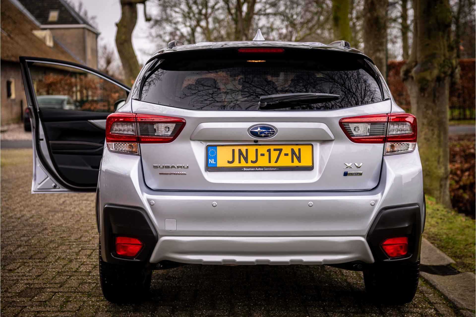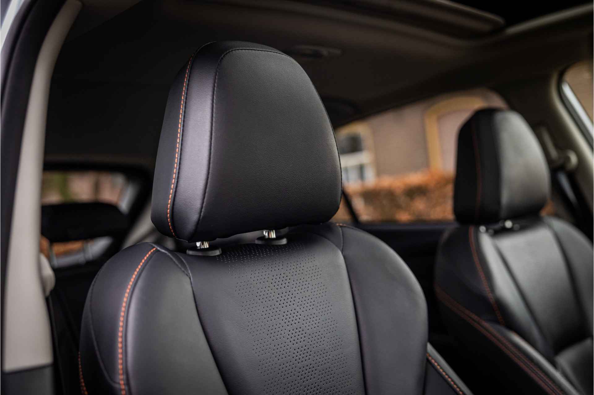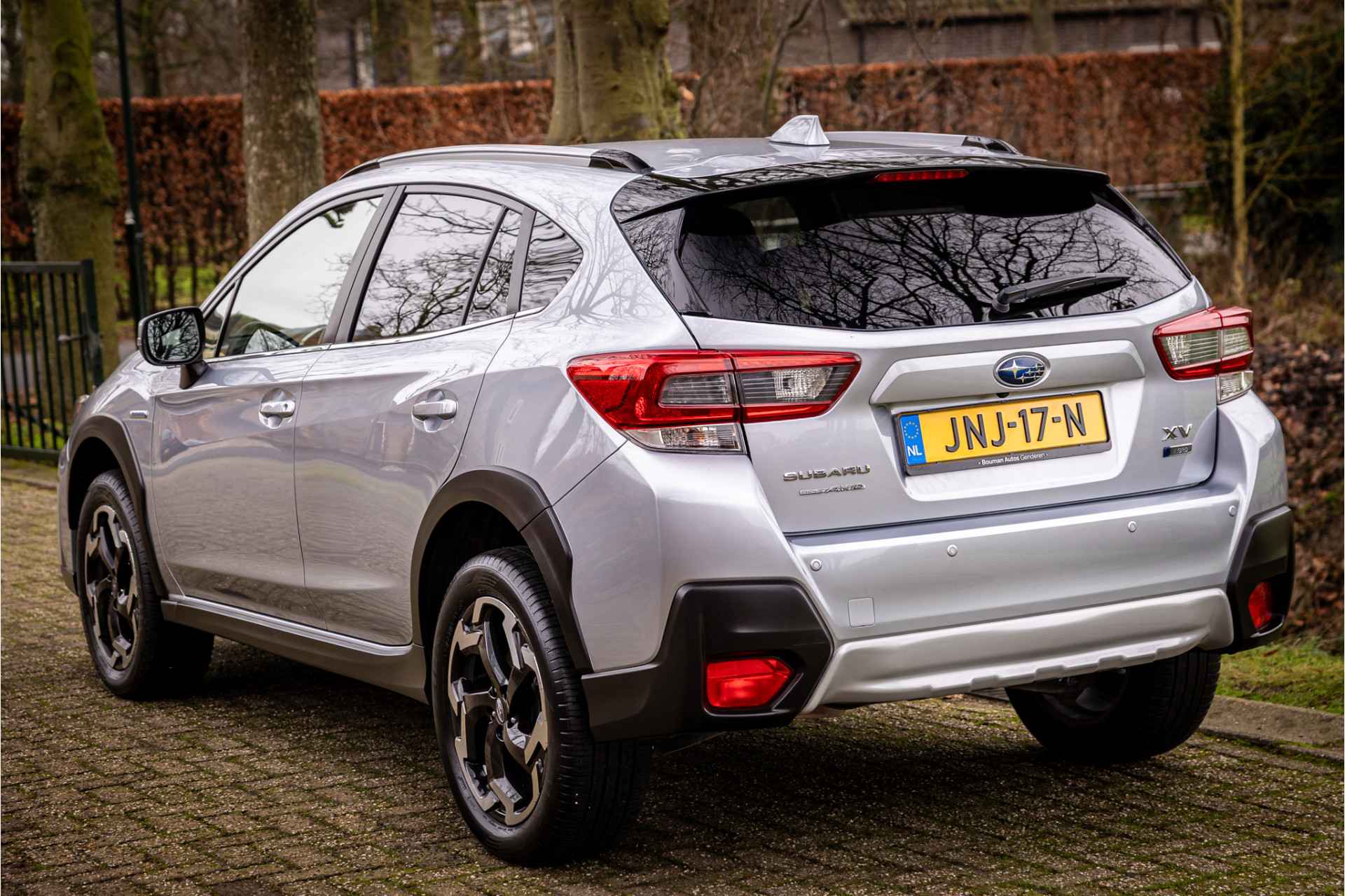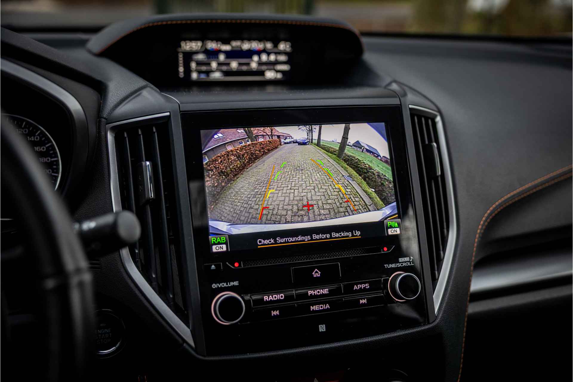 Fraai uitgevoerde Subaru XV met een uitgebreide optielijst en Xmode vierwielaandrijving. De lakkleur Silver Metallic en het zwart leder interieur met zwarte accenten zijn een stijlvolle kleurencombinatie. Het dashboard is voorzien van een stijlvolle zwarte lederovertrek met oranje stiksels.