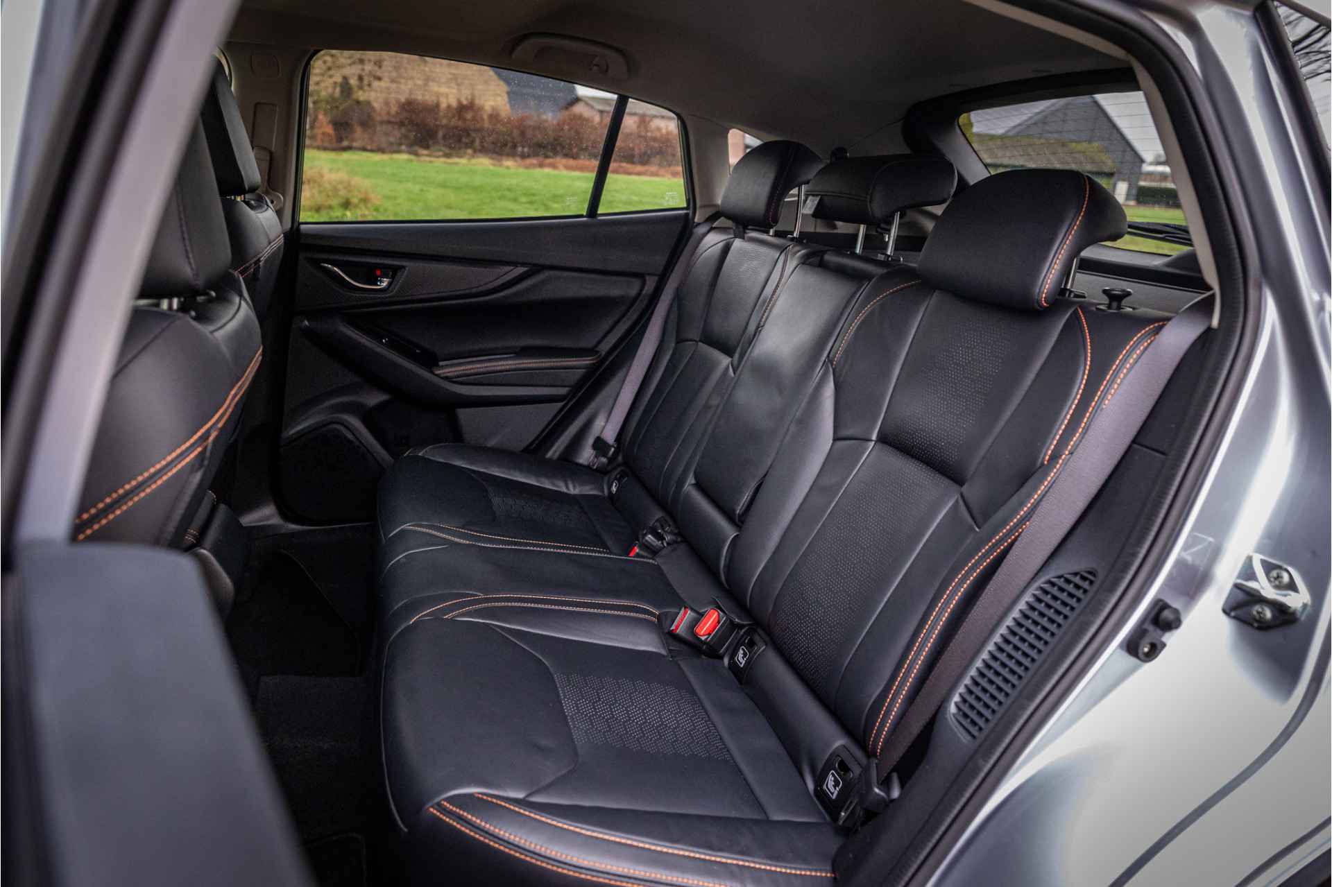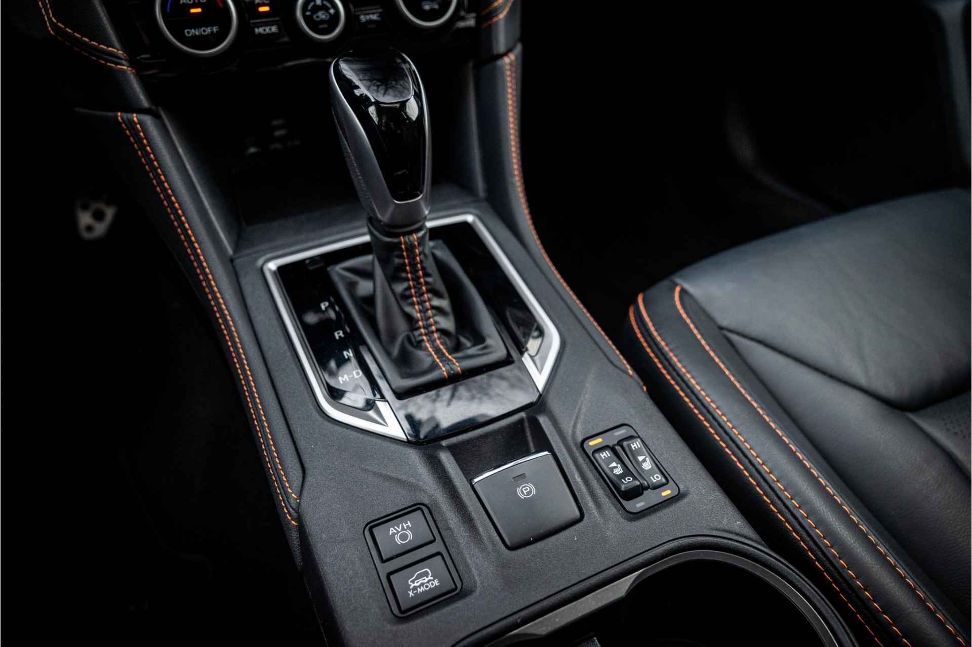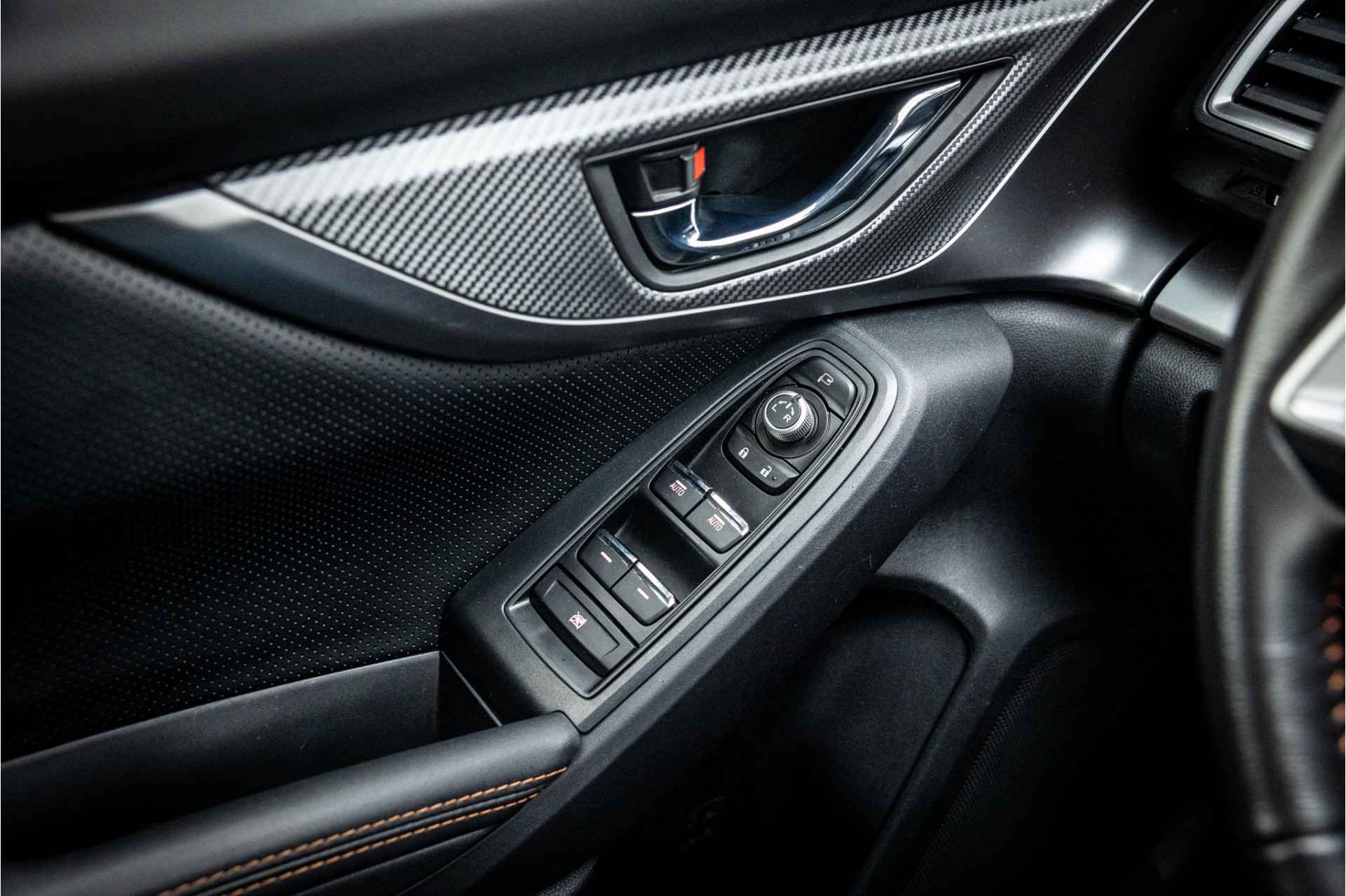Tot de uitrusting behoort een glazen schuifdak, adaptieve cruise control, dode hoek assistent, elektrisch verstelbare voorstoelen, actieve spoorassistent, camera voorzijde, achteruitrijcamera, meesturende koplampen (SRH), navigatiesysteem Professional, uitgebreide bluetooth telefoonvoorbereiding met audiostreaming, Subaru Starlink, 18" aluminium velgen, verwarmbare voorstoelen, extra getint glas achter, DAB tuner, automatische klimaatregeling met gescheiden zones, elektrisch inklapbare buitenspiegels, metallic lak en multimedia aansluitingen.