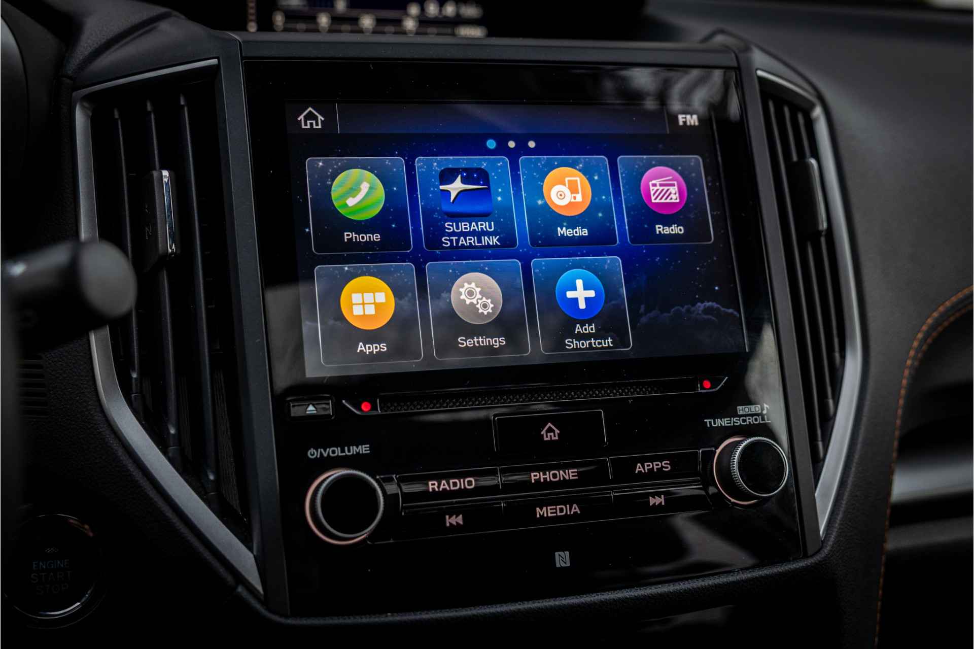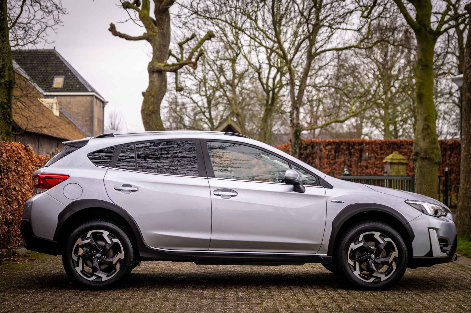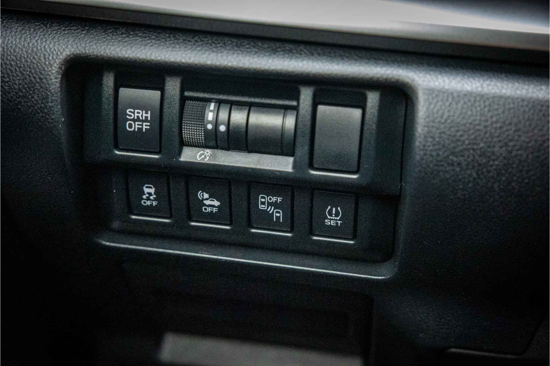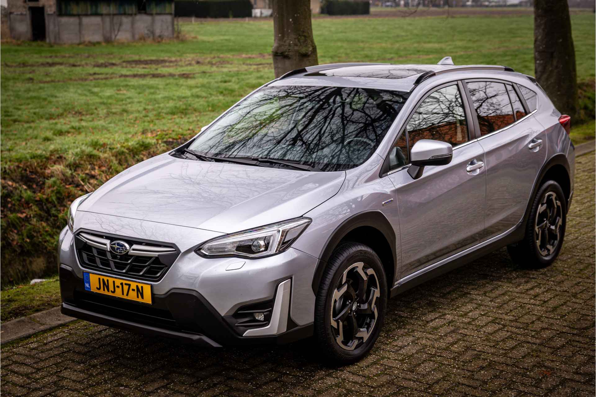 Tot de uitrusting behoort een glazen schuifdak, adaptieve cruise control, dode hoek assistent, elektrisch verstelbare voorstoelen, actieve spoorassistent, camera voorzijde, achteruitrijcamera, meesturende koplampen (SRH), navigatiesysteem Professional, uitgebreide bluetooth telefoonvoorbereiding met audiostreaming, Subaru Starlink, 18" aluminium velgen, verwarmbare voorstoelen, extra getint glas achter, DAB tuner, automatische klimaatregeling met gescheiden zones, elektrisch inklapbare buitenspiegels, metallic lak en multimedia aansluitingen.