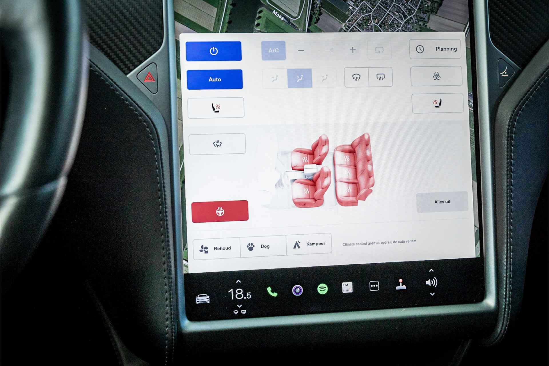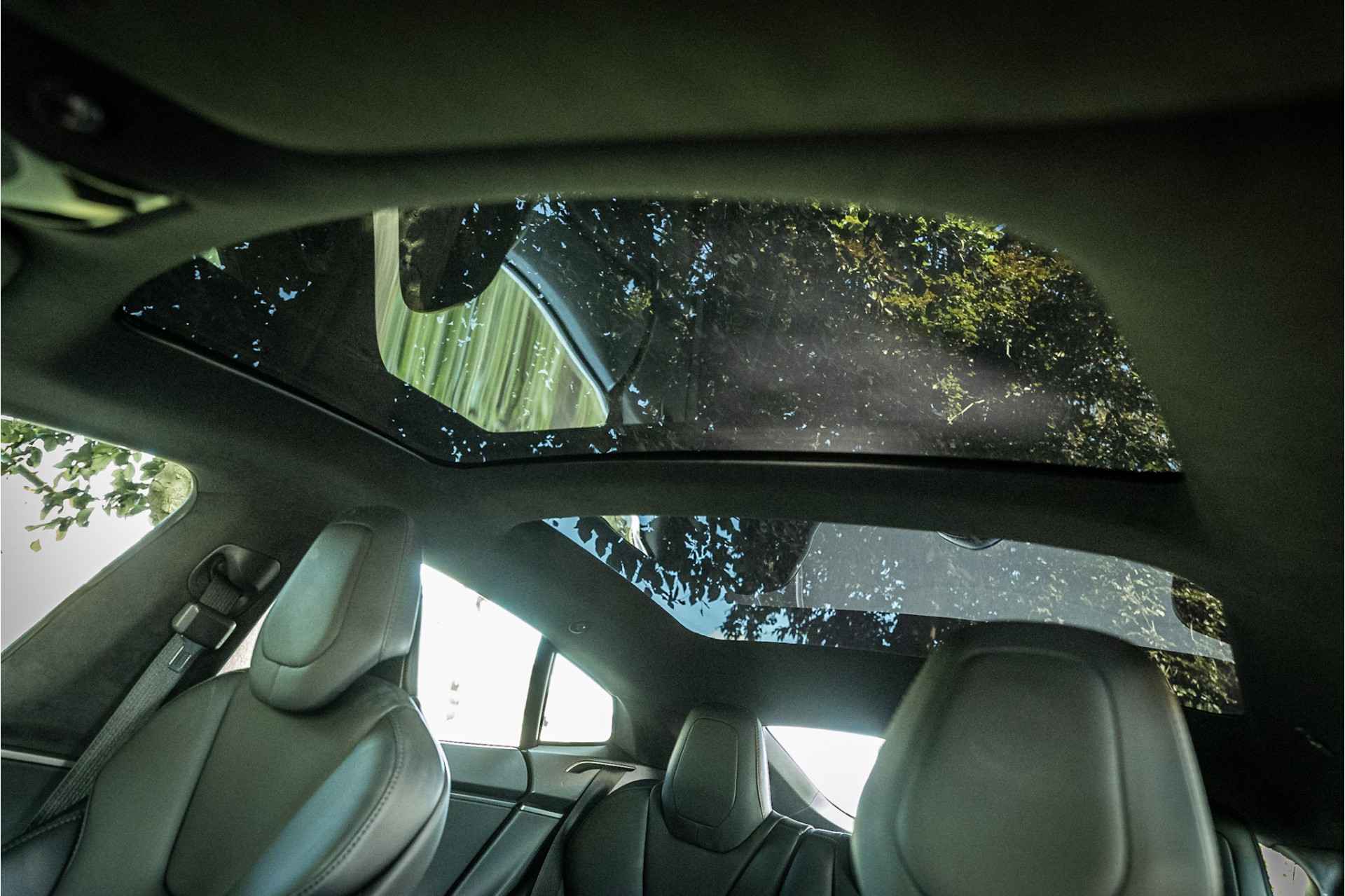 Tot de verdere uitrusting behoort Enhanced Autopilot met zelfstandige rijstrookwissel, glazen panoramadak dat geopend kan worden, Premium Sound, intelligente luchtvering, Summon parking (auto parkeren op afstand), achteruitrijcamera, 19" Sonic Carbon slipstream velgen, LED koplampen adaptief, metallic lak, keyless entry, Security Package, verwarmbare voorstoelen, verwarmbare zitplaatsen achter, verwarmbaar stuurwiel, bluetooth connectiviteit, alcantara hemelbekleding, navigatiesysteem, dode hoek detectie en elektrisch bedienbare achterklep.