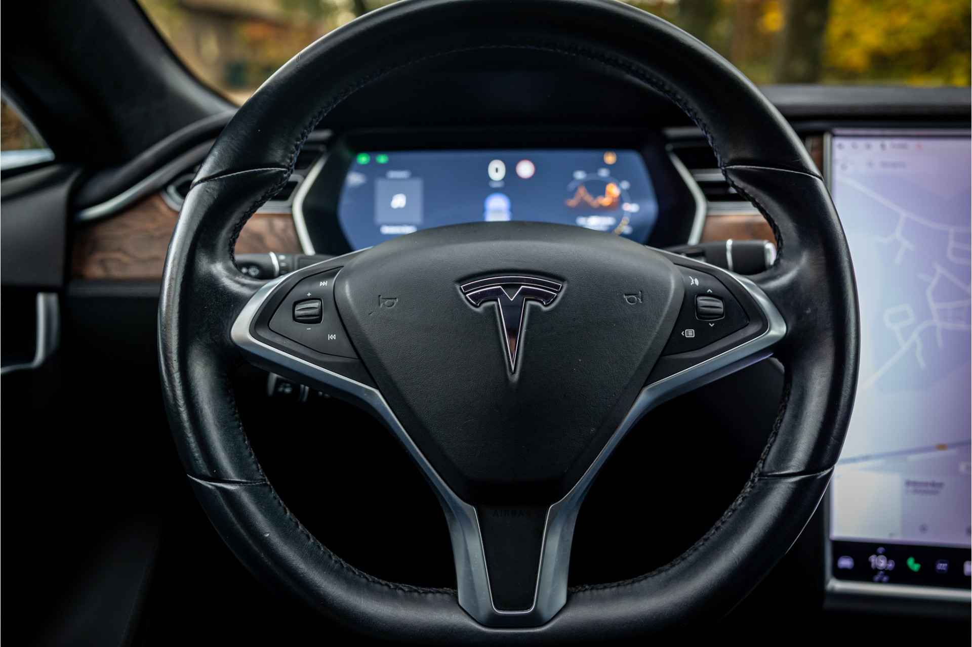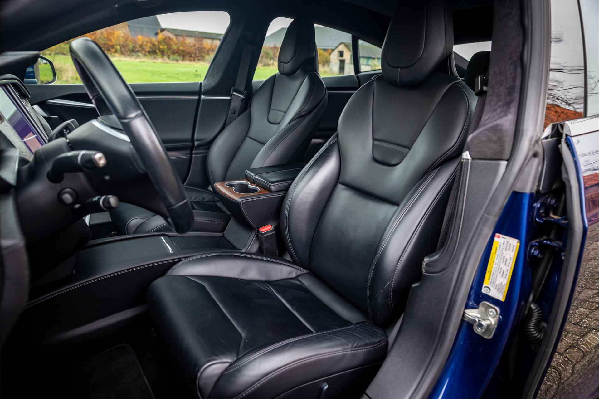 Fraaie Tesla Model S 90D in nette staat. De auto is afkomstig van de eerste eigenaar en origineel in Nederland geleverd. Lakkleur is Deep Blue metallic en het interieur is voorzien van zwart lederen Next Generation stoelen. De bovenzijde van het dashboard is afgewerkt met een combinatie van leder en alcantara.