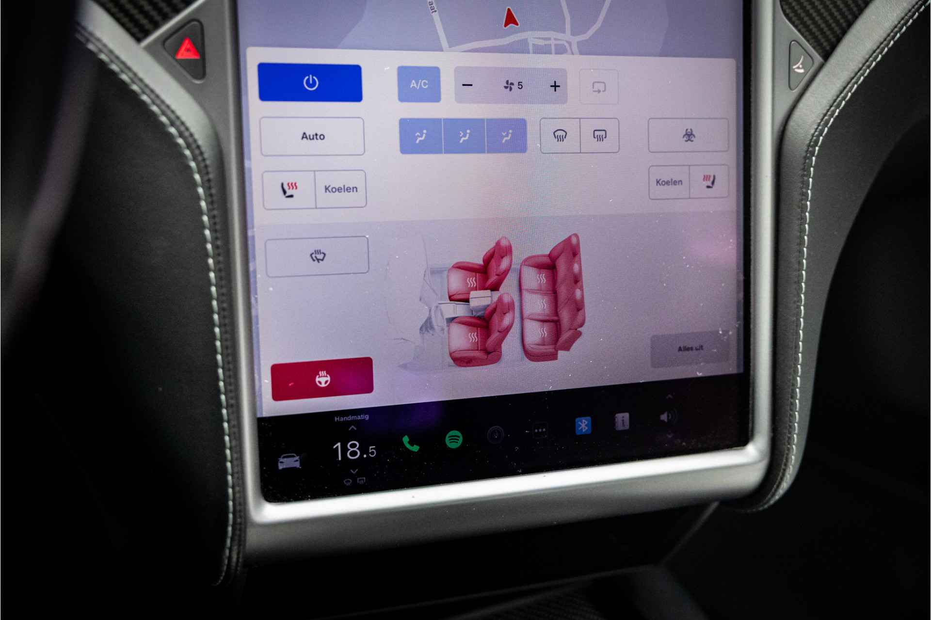 Tot de verdere uitrusting behoort actieve stoelventilatie, Full Self Driving Autopilot (upgrade van 7.500 euro), chrome delete op deurklinken en raamlijsten, 21" Black Arachnid velgen, elektrisch glazen panoramadak dat geopend kan worden, premium audio met surround functie, actieve luchtvering, carbon interieuraccenten, Summon parking (parkeren buiten de auto via smartphone), achteruitrijcamera met rondomzicht functie, LED koplampen met grootlichtassistent, keyless entry (automatic doors), metallic lak, in rood gespoten remklauwen, verwarmbare voorstoelen en zitplaatsen achter, verwarmbaar stuurwiel, verwarmbare ruitenwissers, alcantara hemelbekleding, USB aansluitingen voor achterpassagiers, dode hoek detectie, verkeersborddetectie en automatische achterklep.