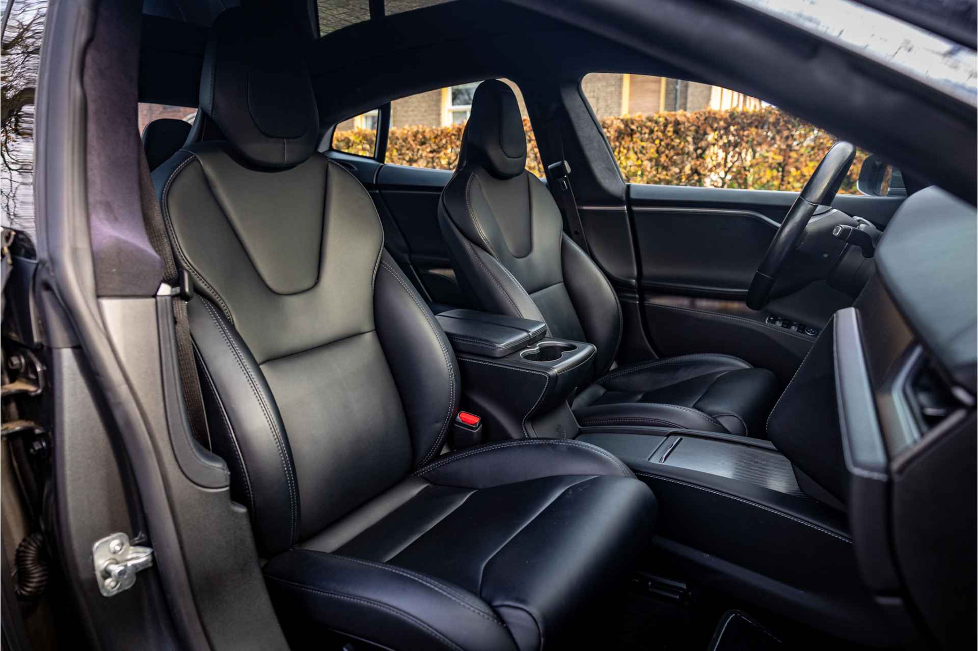 Tot de verdere uitrusting behoort Full Self Driving met zelfstandige rijstrookwissel, achteruitrijcamera met side view, glazen panoramadak, carbon interieurpanelen, premium audio met surround functie, Summon parking (parkeren op afstand buiten de auto) actieve luchtvering, 21" velgen, LED koplampen met grootlichtassistent, keyless entry (automatic doors), metallic lak, in rood gespoten remklauwen, verwarmbare voorstoelen en zitplaatsen achter, verwarmbaar stuurwiel, multimedia met YouTube en Netflix connectiviteit, alcantara hemelbekleding, dode hoek detectie, verkeersborddetectie, bluetooth connectiviteit en automatische achterklep.