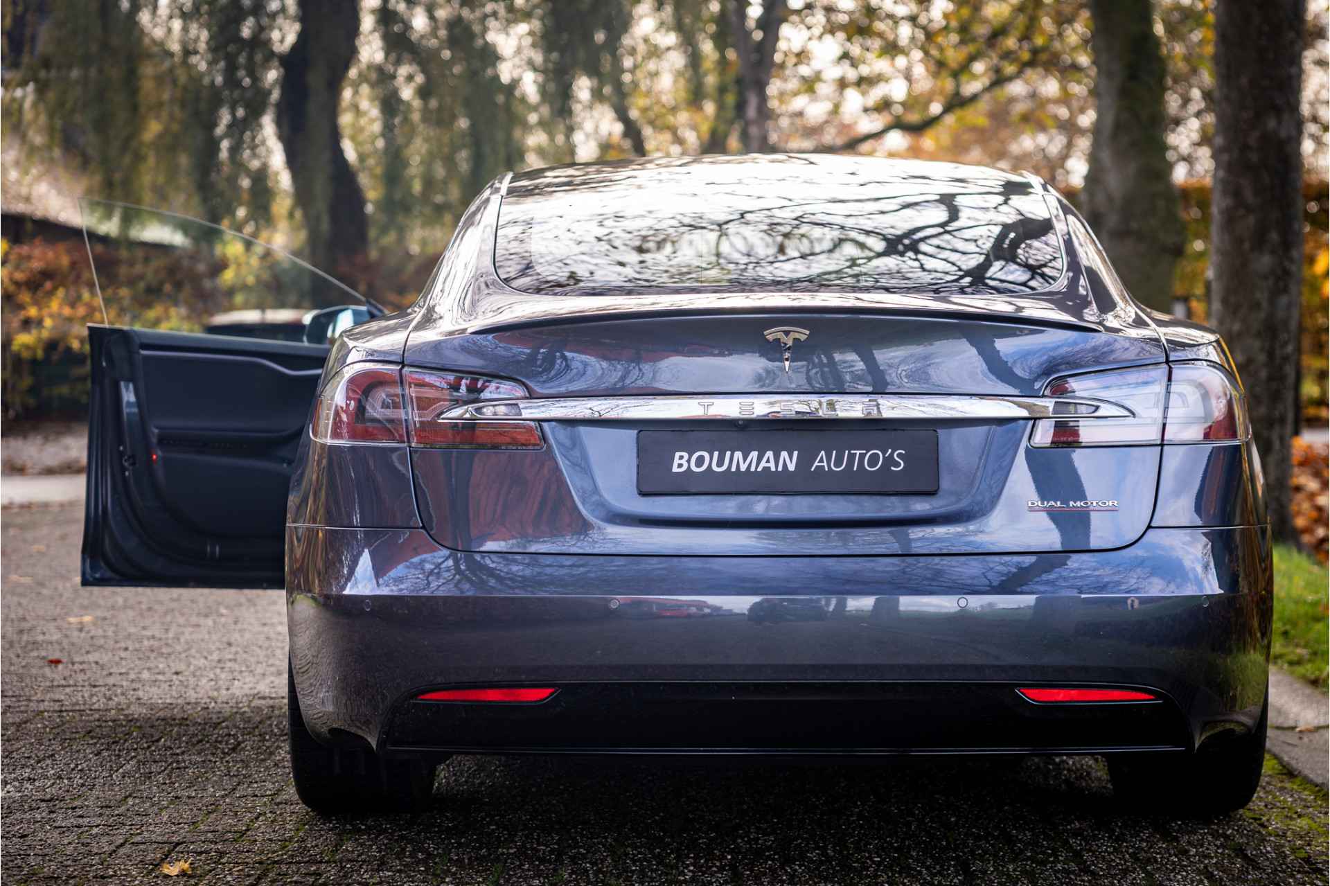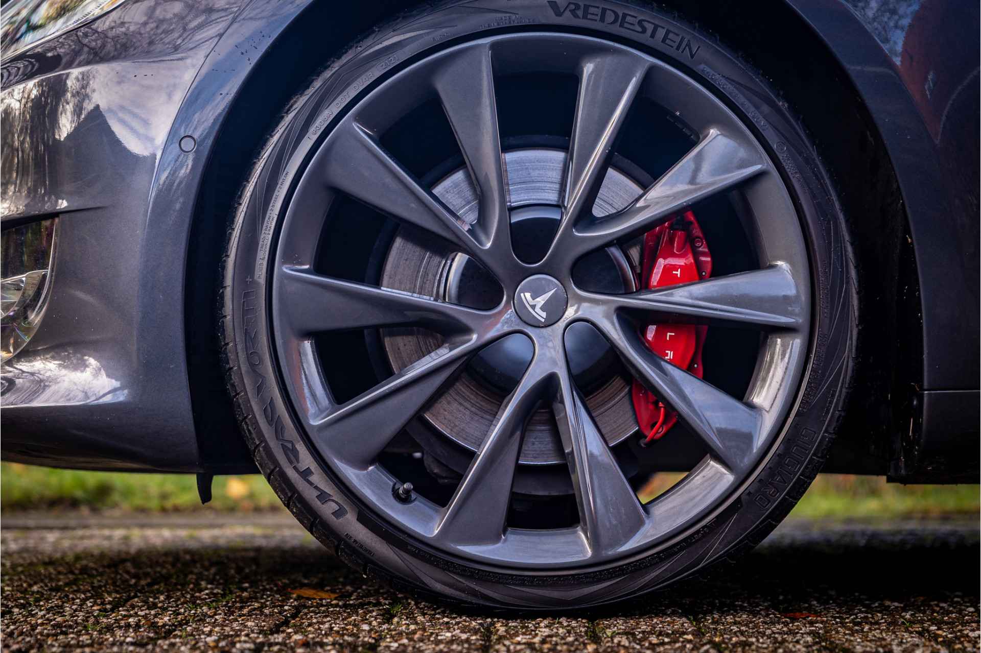 Fraaie Tesla Model S in zeer krachtige Performance uitvoering. Deze auto is nieuw in Nederland geleverd en in keurige conditie. Lakkleur is Midnight Silver en het interieur is voorzien van zwart premium leder.