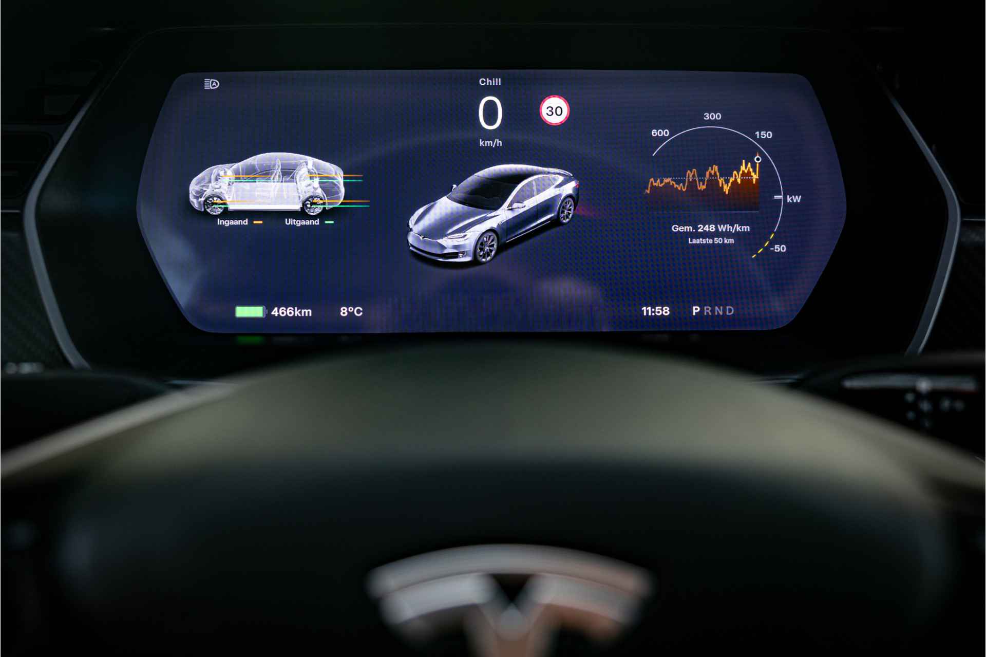 Deze Tesla is voorzien van de CCS update waarmee er ook bij de nieuwe V3 Superchargers van Tesla kan worden geladen.