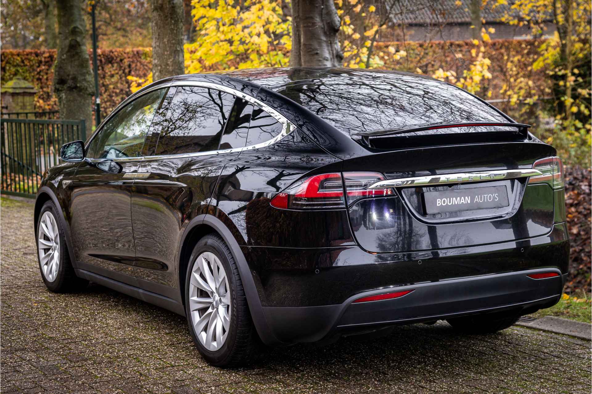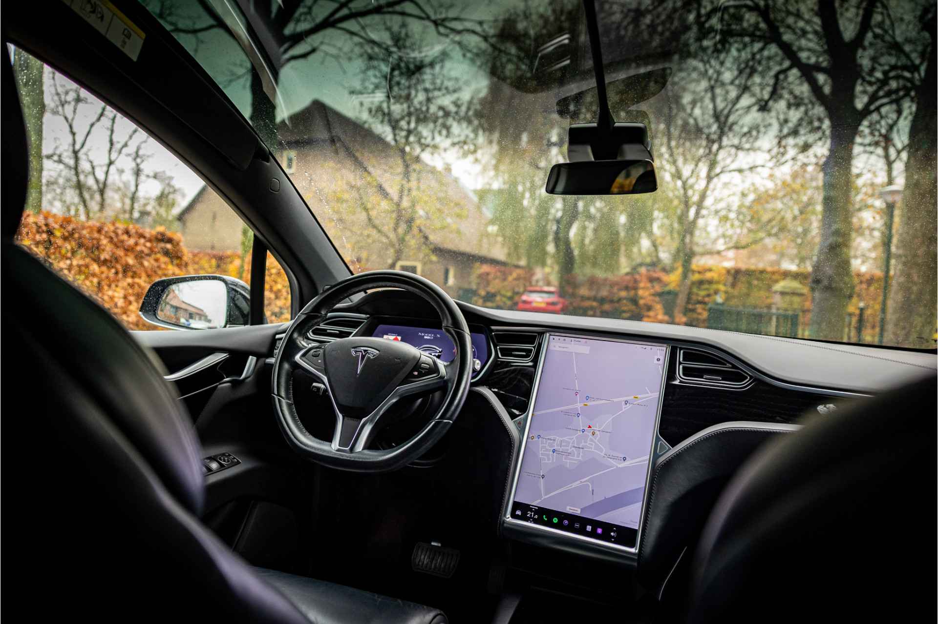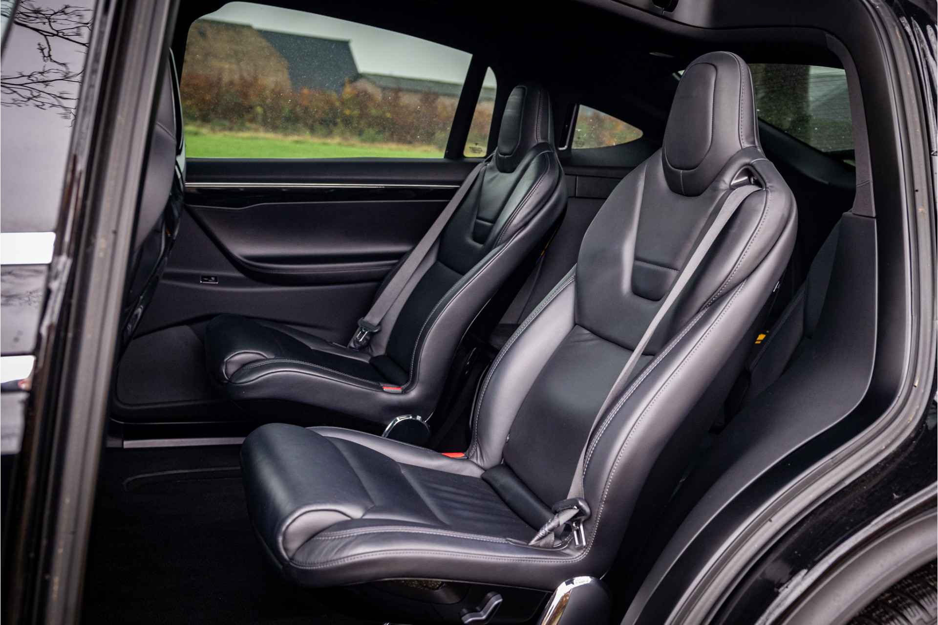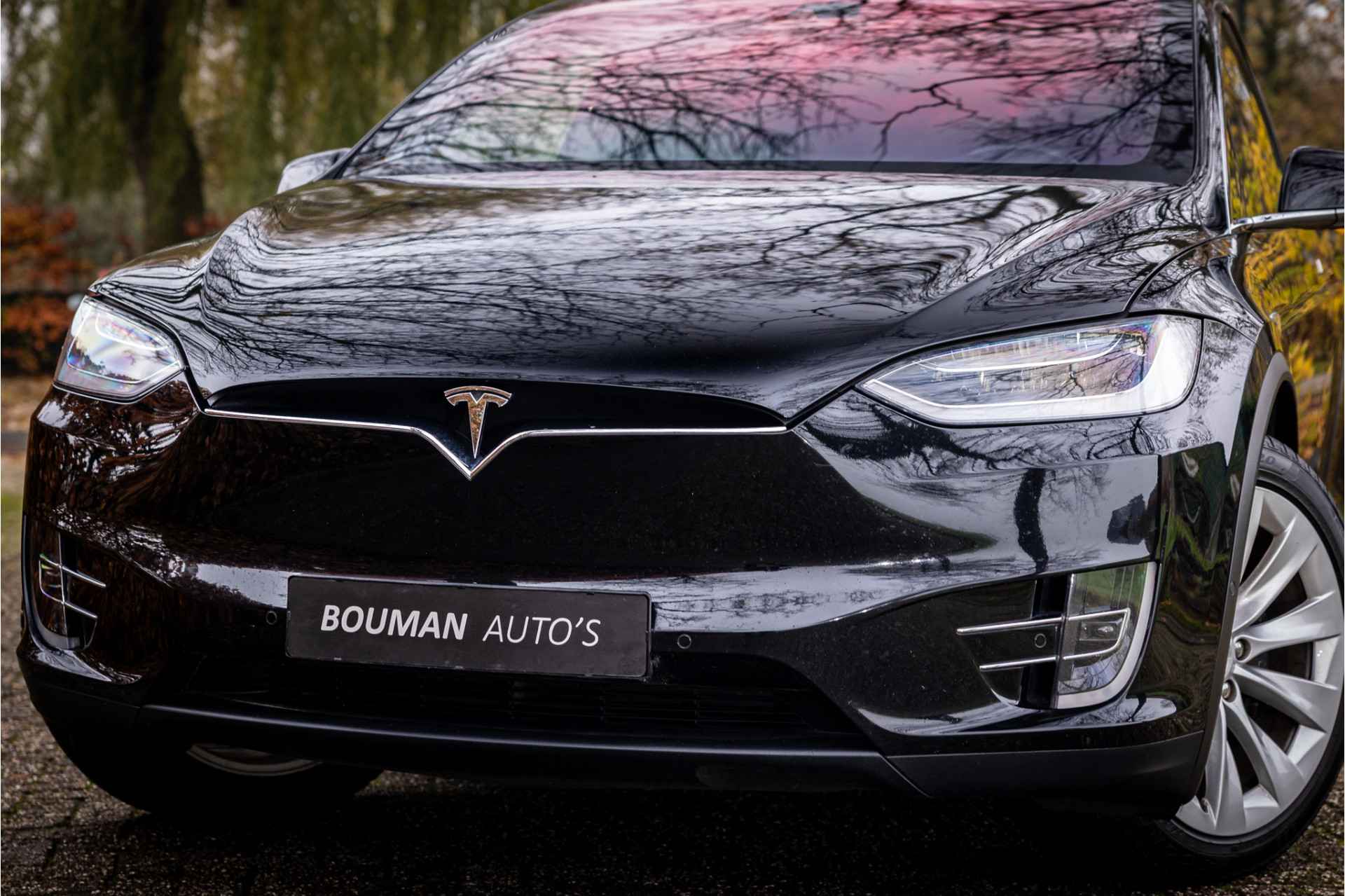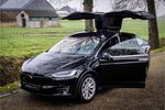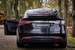 Fraaie Tesla Model X in krachtige 90D uitvoering met 6 zitplaatsen met captain seats op de middelste zitrij. Lakkleur is Obsidian Black Metallic, het interieur is uitgevoerd in zwart leder. De hemelbekleding is uitgevoerd in donker antraciet.