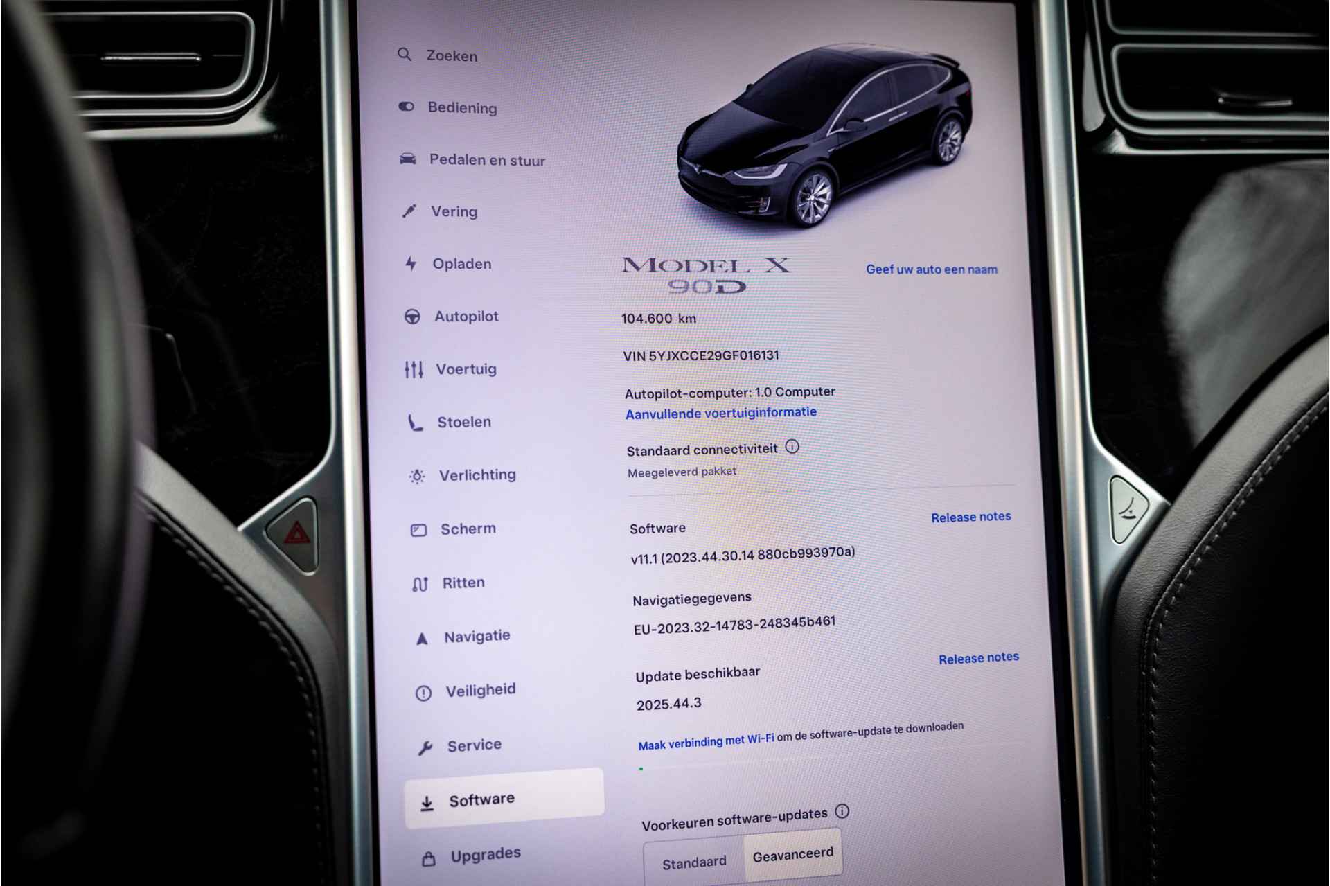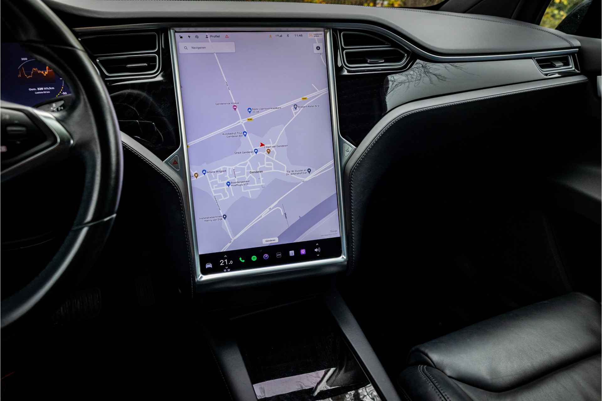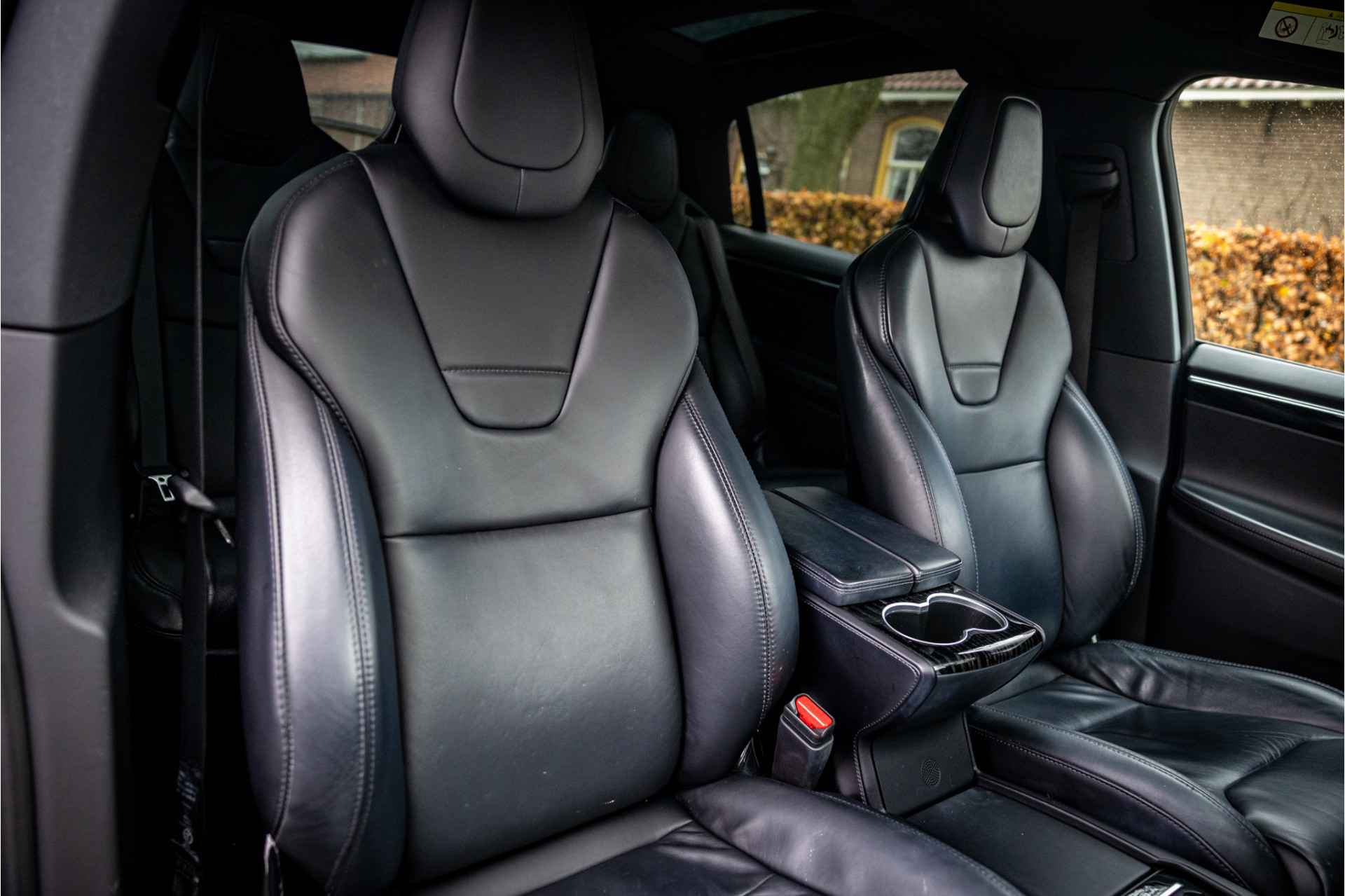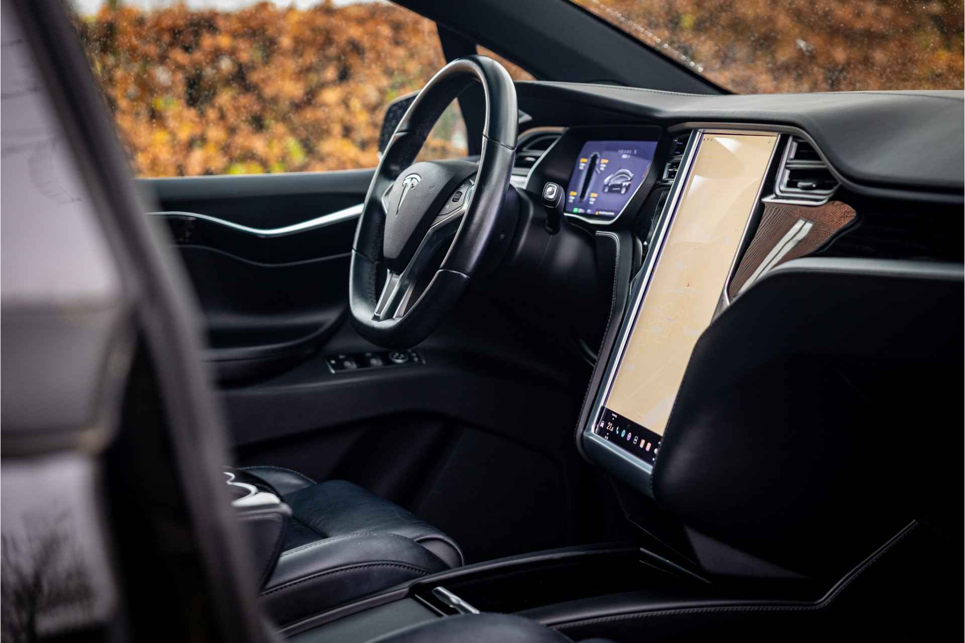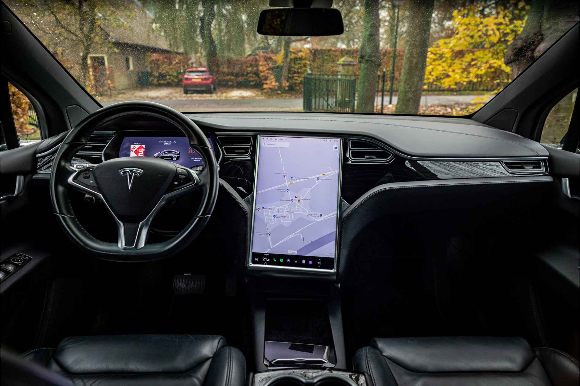 Fraaie Tesla Model X in krachtige 90D uitvoering met 6 zitplaatsen met captain seats op de middelste zitrij. Lakkleur is Obsidian Black Metallic, het interieur is uitgevoerd in zwart leder. De hemelbekleding is uitgevoerd in donker antraciet.
