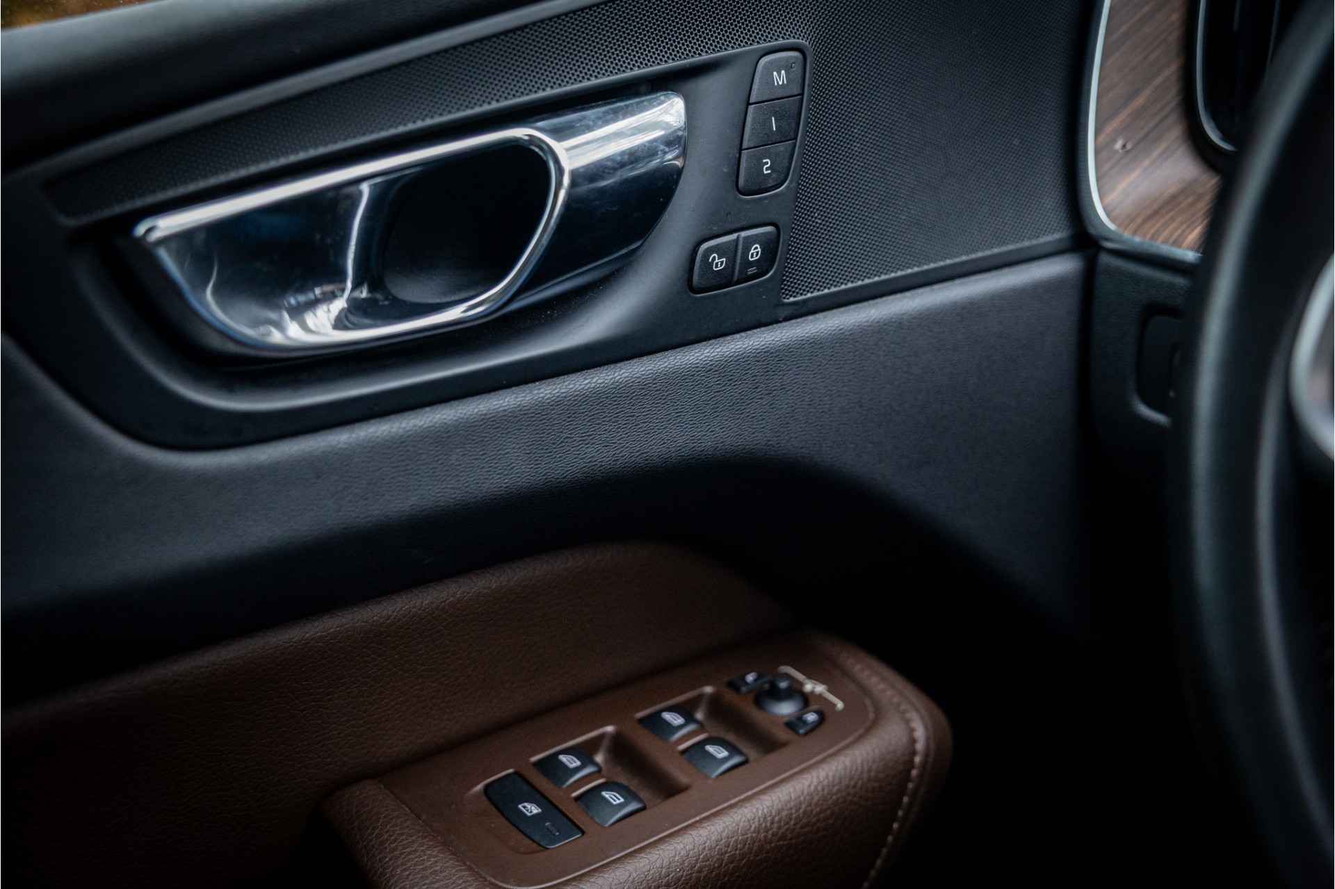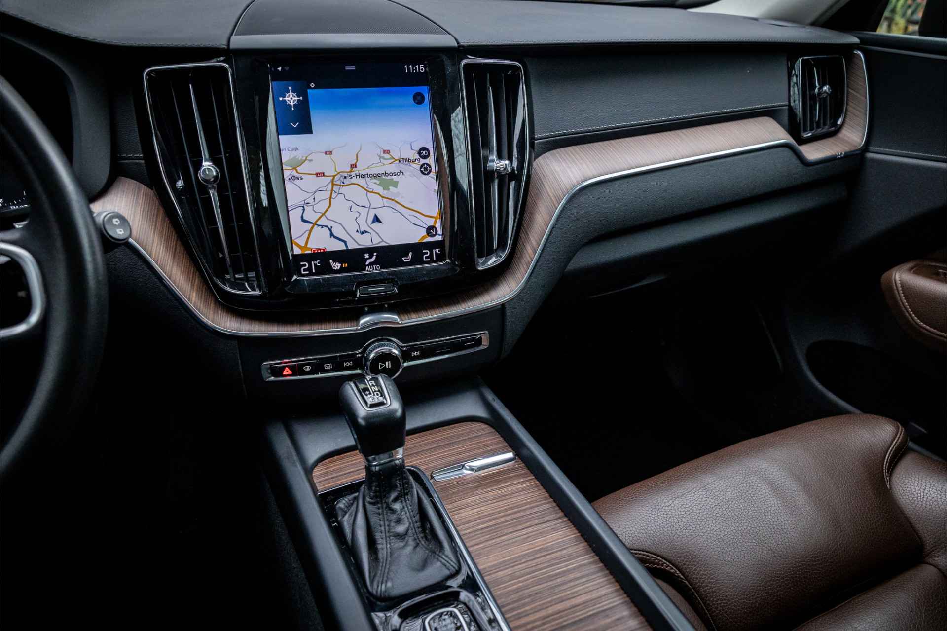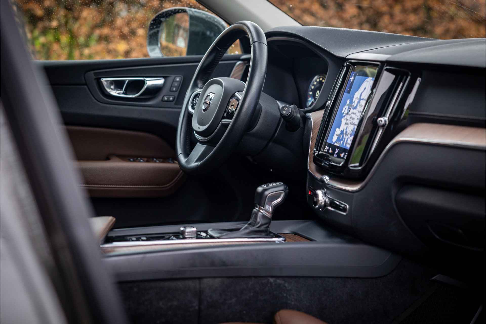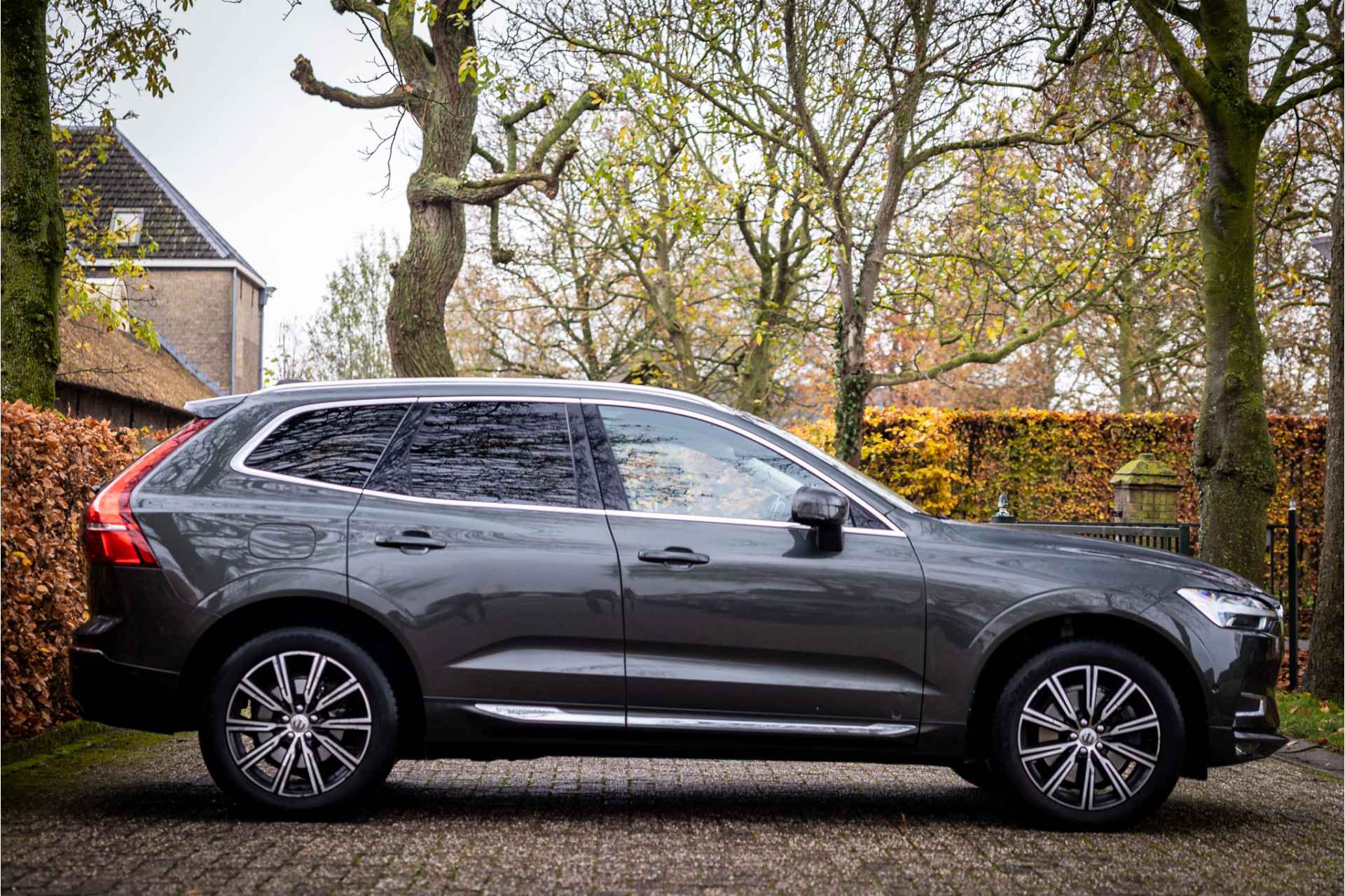 Fraaie Volvo XC60 D4 AWD Inscription met een uitgebreide uitrustingslijst. Lakkleur is Pine Grey metallic en het interieur is voorzien van leder in de kleur Cognac.