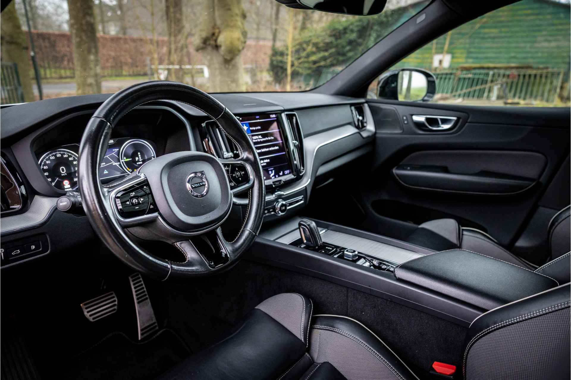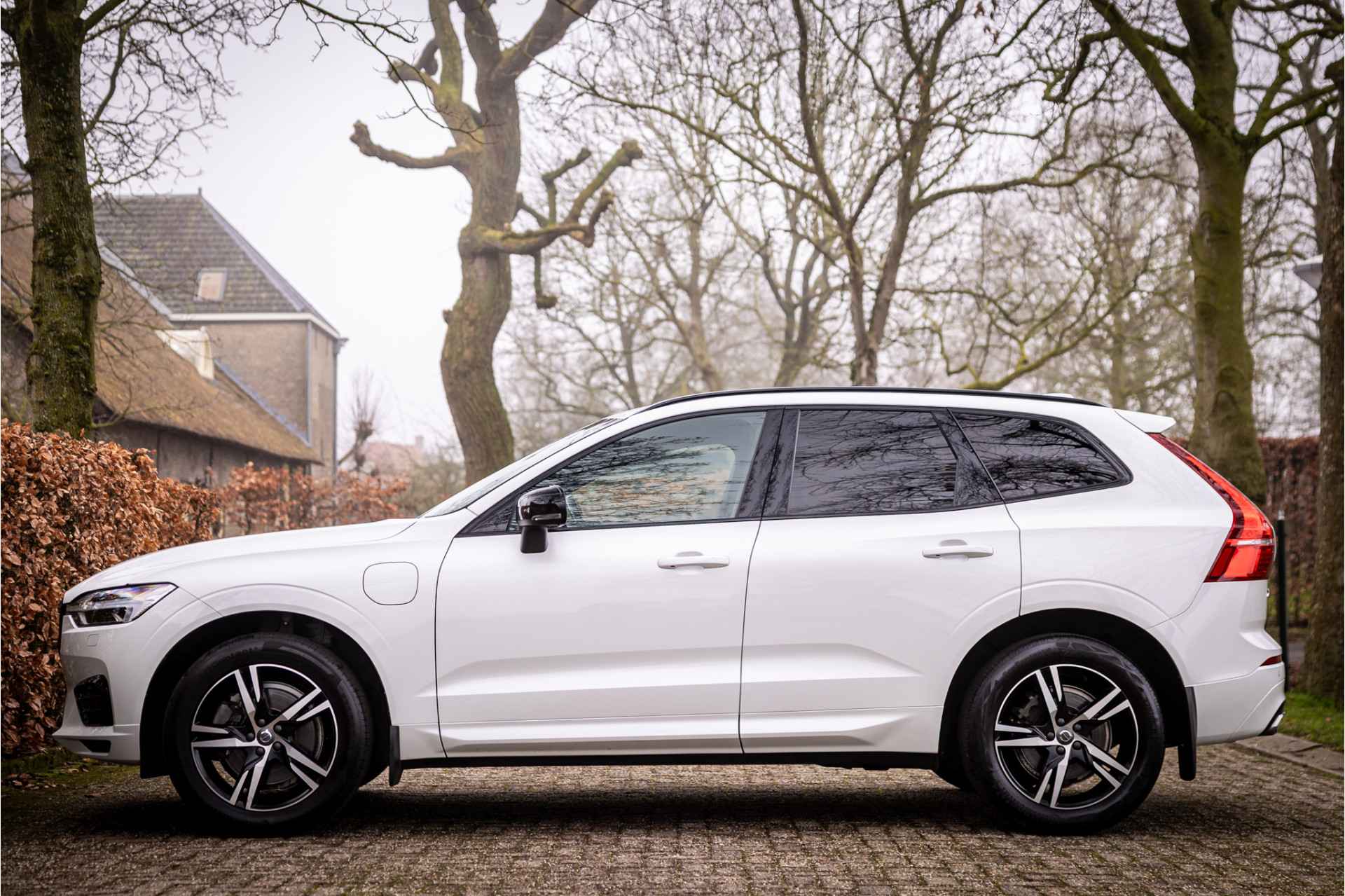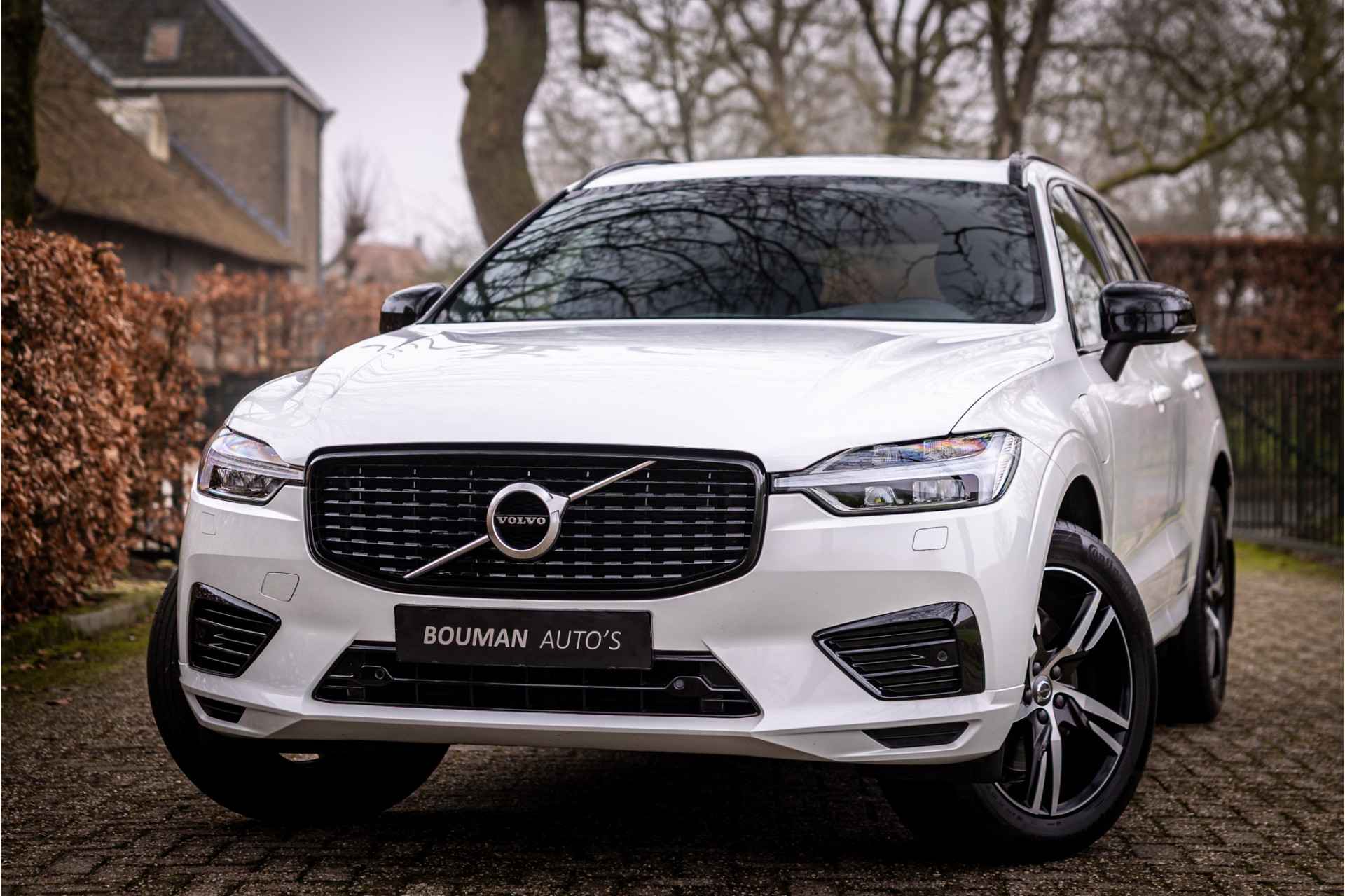 Fraaie Volvo XC60 T8 R-Design met een rijke uitrustingslijst. Lakkleur is Crystal White metallic (Parelmoer wit) en het interieur is voorzien van Charcoal leder / stof in de kleur Black. De hemelbekleding is voorzien van donker antraciet stof.