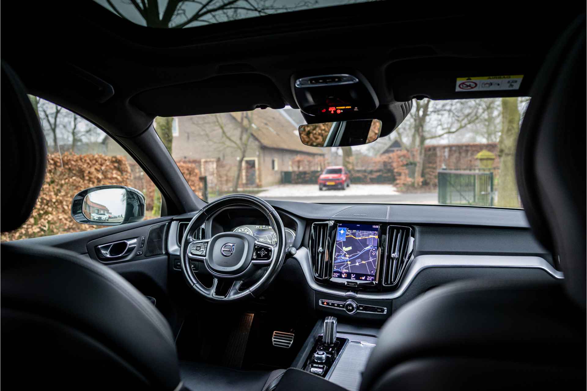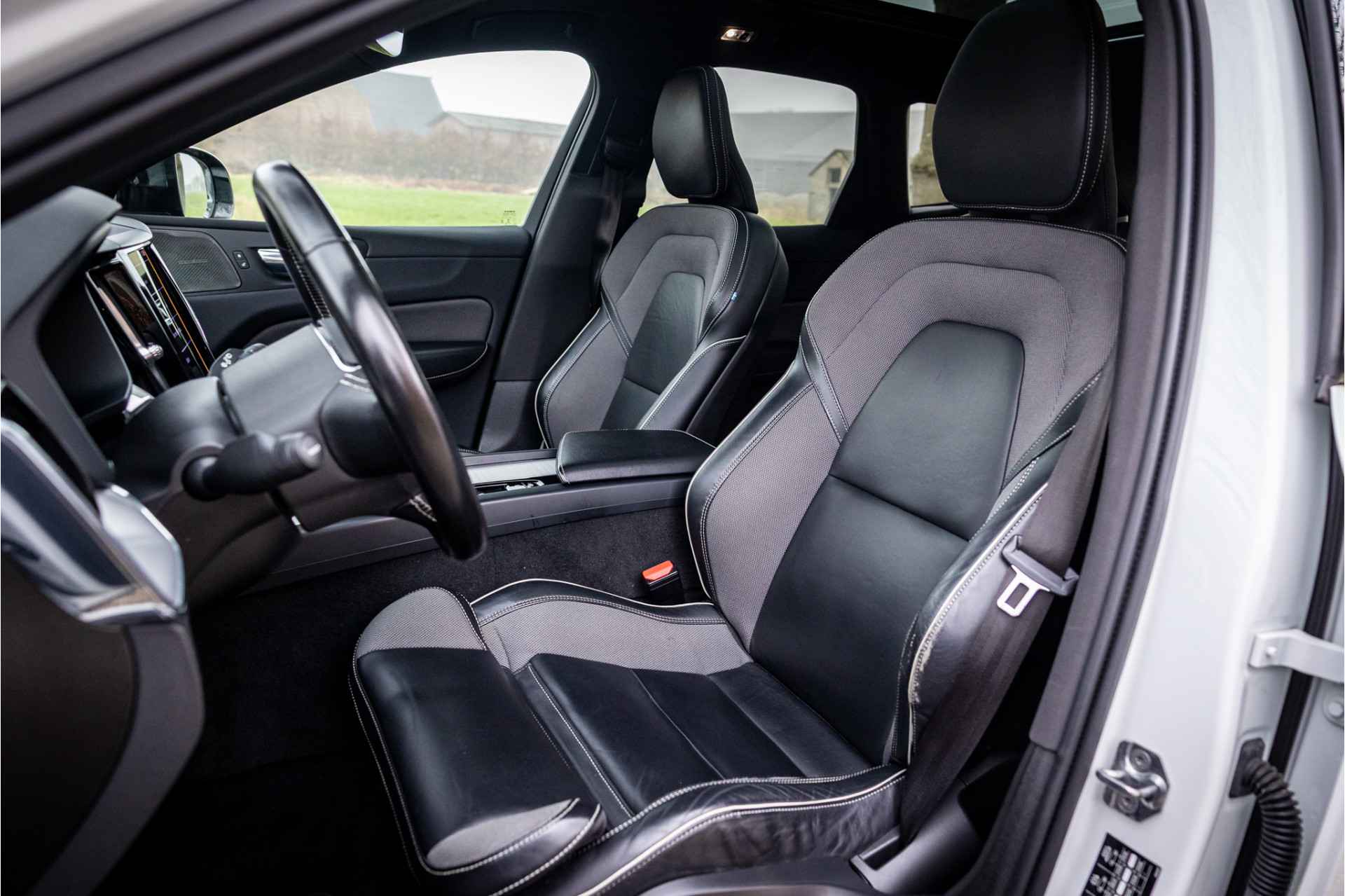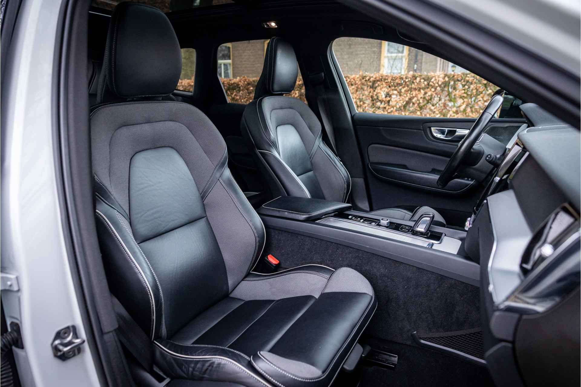 Fraaie Volvo XC60 T8 R-Design met een rijke uitrustingslijst. Lakkleur is Crystal White metallic (Parelmoer wit) en het interieur is voorzien van Charcoal leder / stof in de kleur Black. De hemelbekleding is voorzien van donker antraciet stof.
